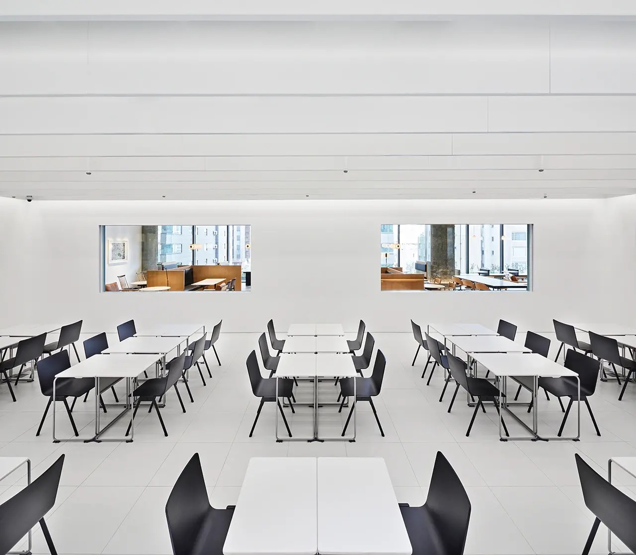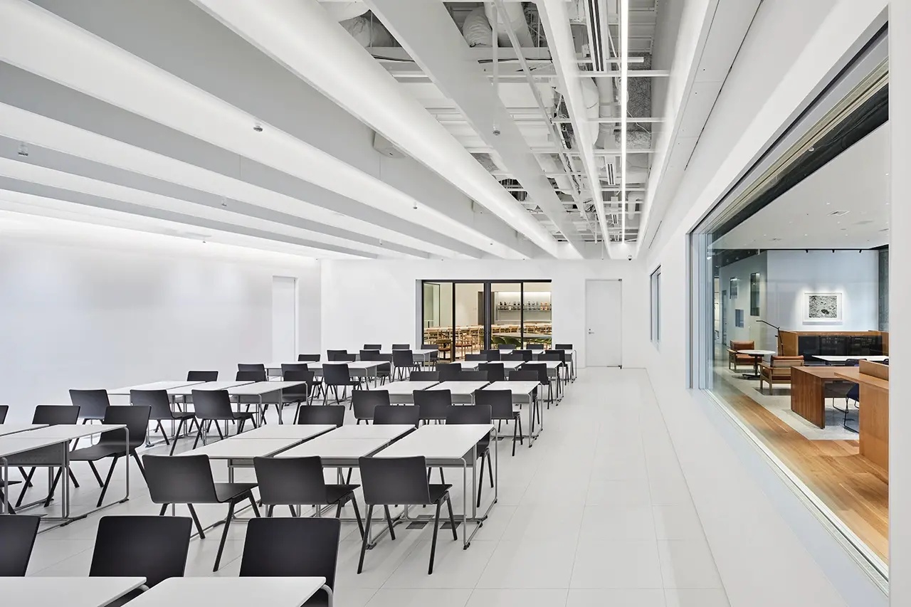 #办公智造# 在提关于功能的设想时,女王考虑得细致入微,除了供她和自己的员工办公的空间,要囤积大量存货的储存室、照顾员工生活起居的茶水间、闲时消遣的娱乐室,面见客户时承担销售和展示功能的展厅、T台秀场和洽谈室,甚至还有属于自己的高端咖啡空间。