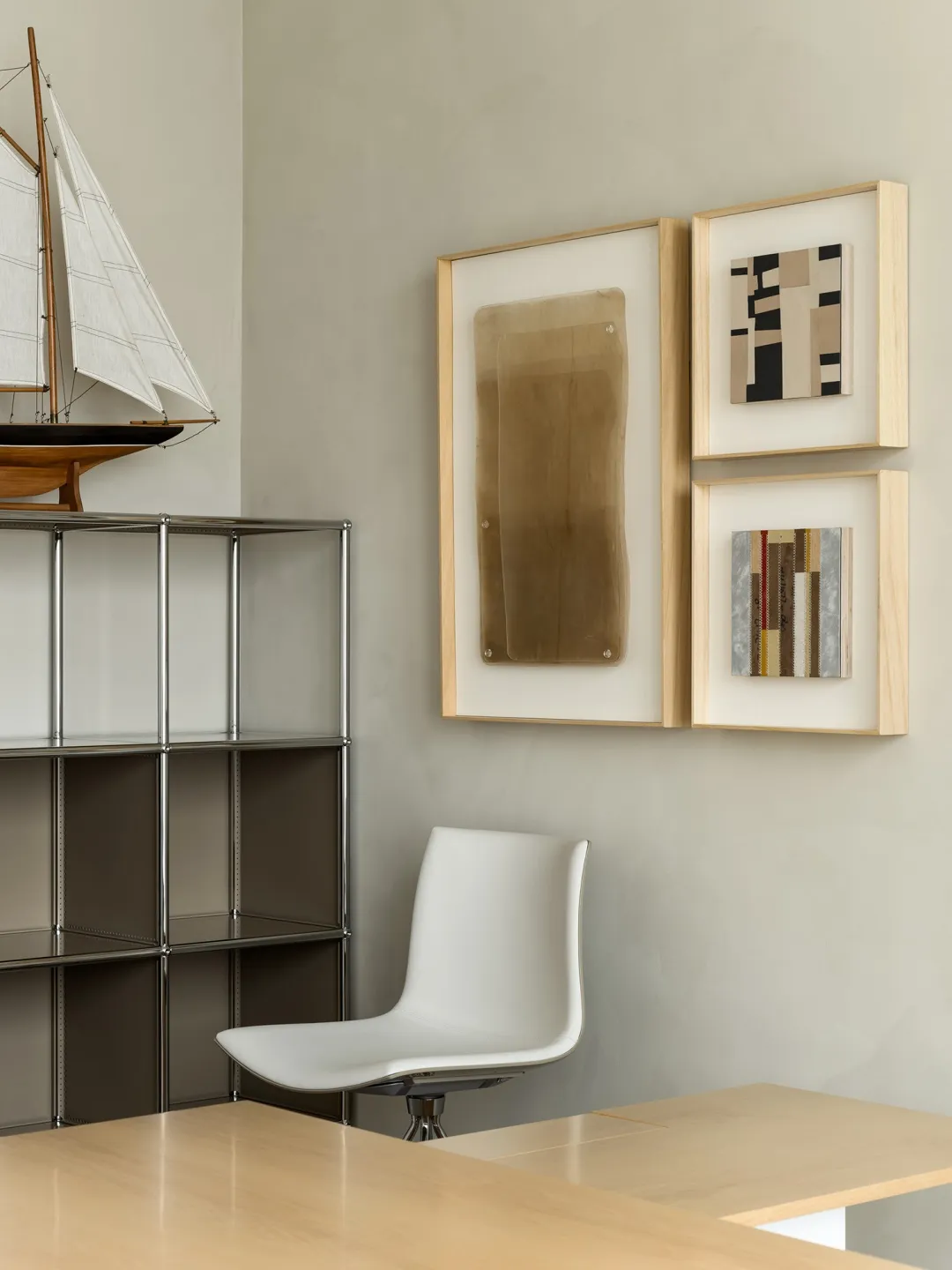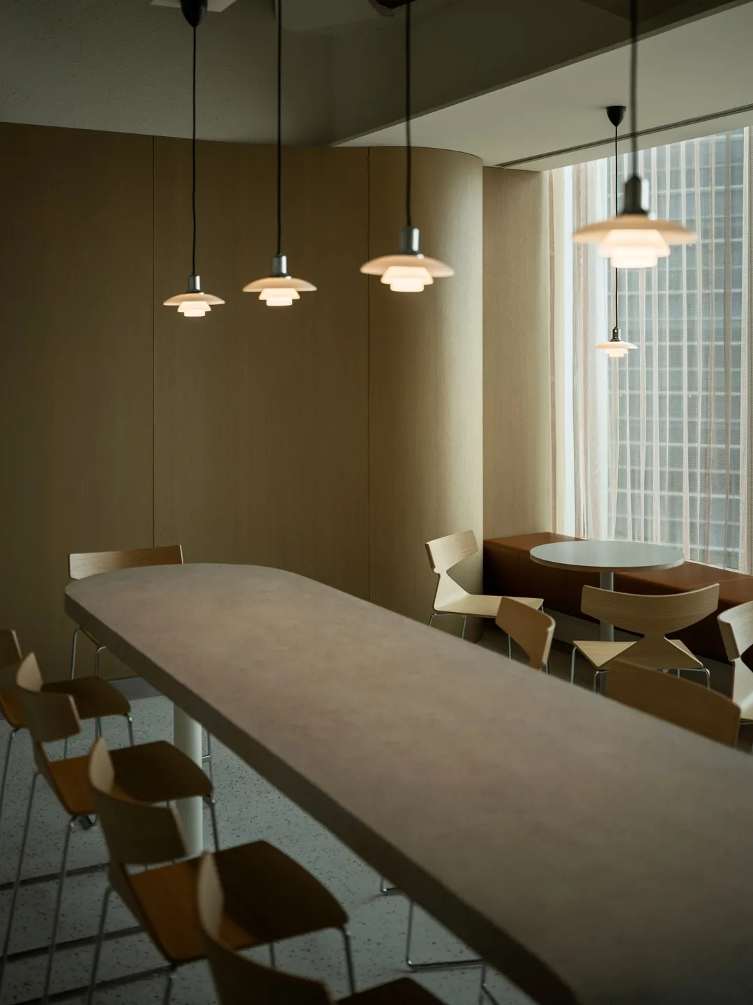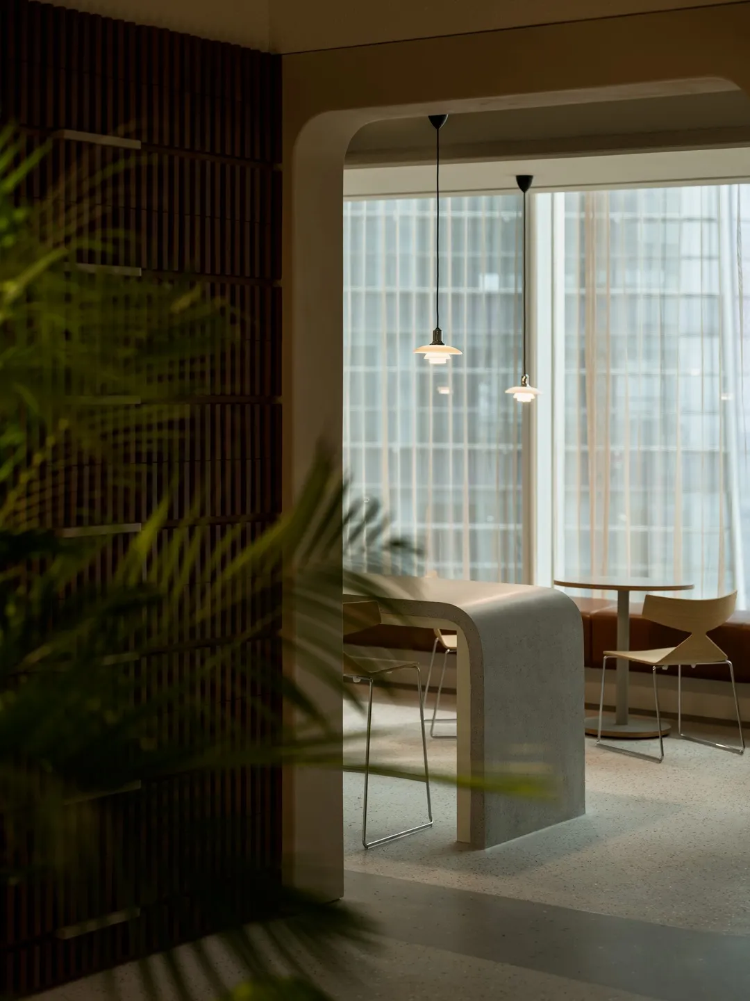 Rest Room采用了金属、木质等材料,通过反射和折射,让空间的光影层次更丰富,专属的艺术作品温润了整个空间,几株绿植的点缀让理性的空间多了一份随和。玻璃能消除室内外的空间隔阂,拉近建筑与户外的距离,中和空间单一色彩的寡淡,进而调节办公时的情绪。