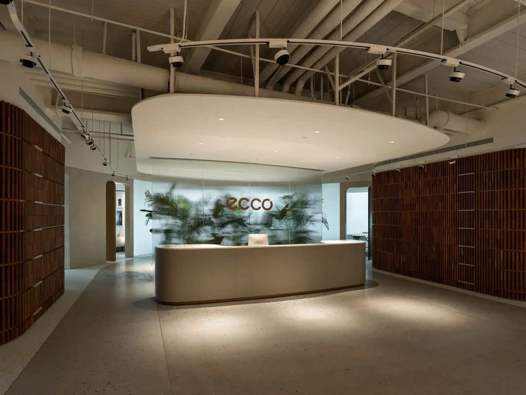 办公空间设计|ecco中国总部办公室前厅空间的轮廓,场景的格调,被光与影反复塑形。