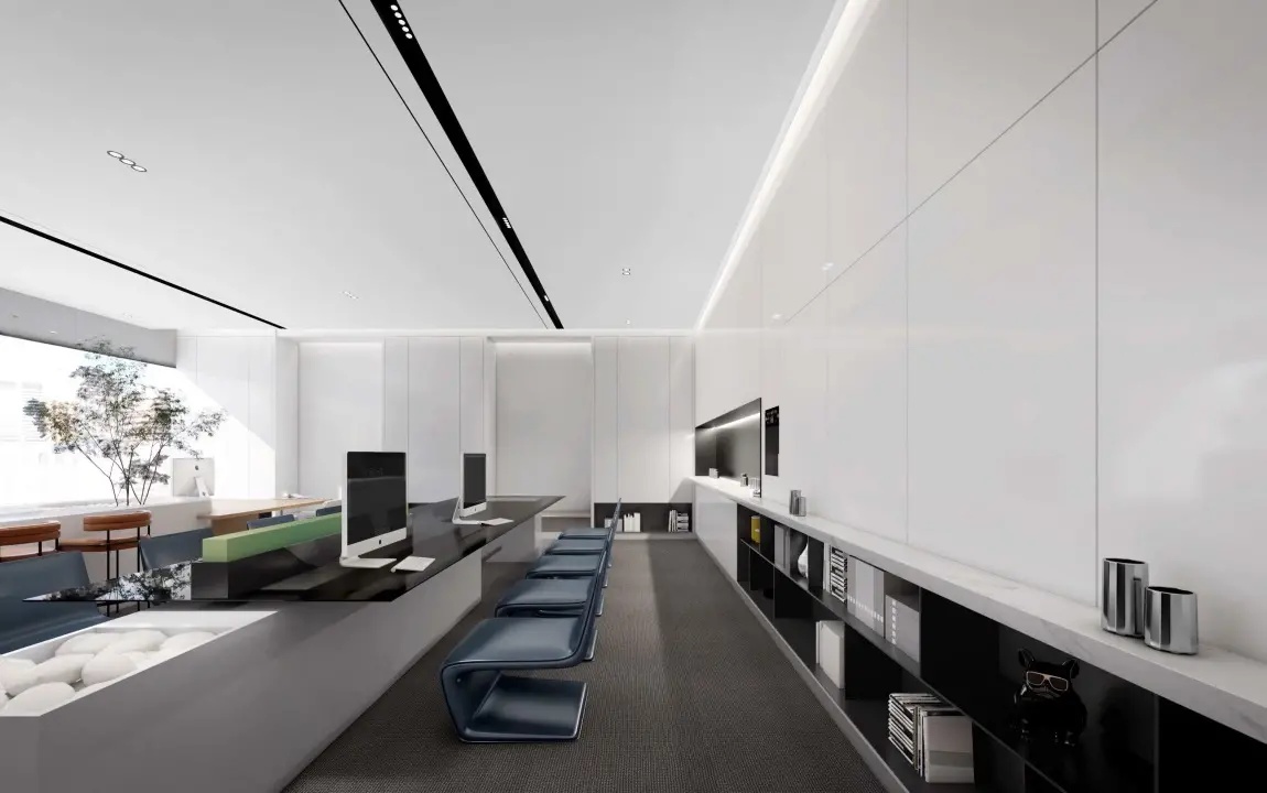 极简,是开放,亦是隐藏、极简。休闲沙发巧妙地融合,使整个空间变得更加自然、柔和、动人,合理的动线把各个功能板块连接在一起,成为开放的空间关系,使得人与人之间的沟通回到了最为原始、有效、有趣味的方式。