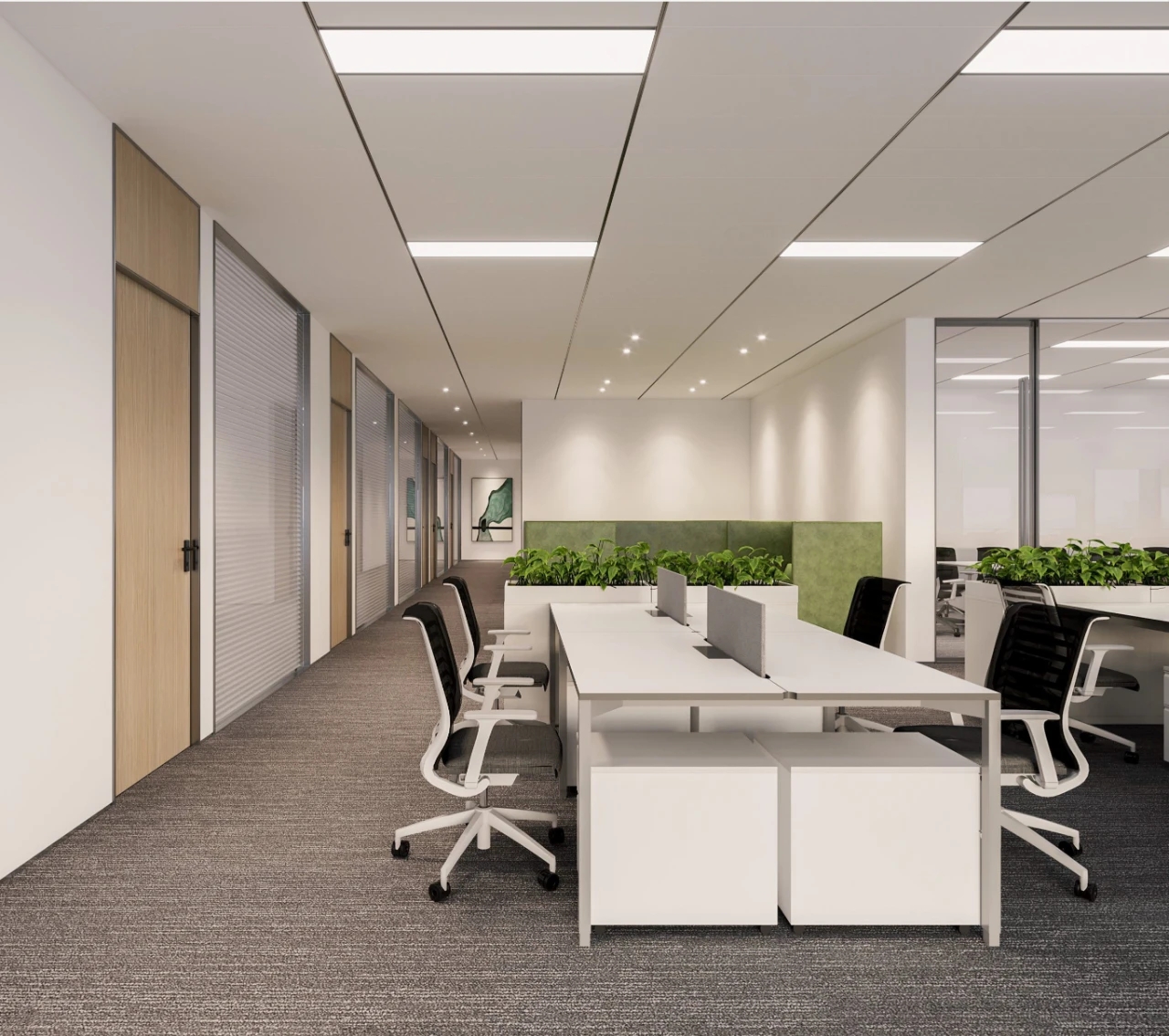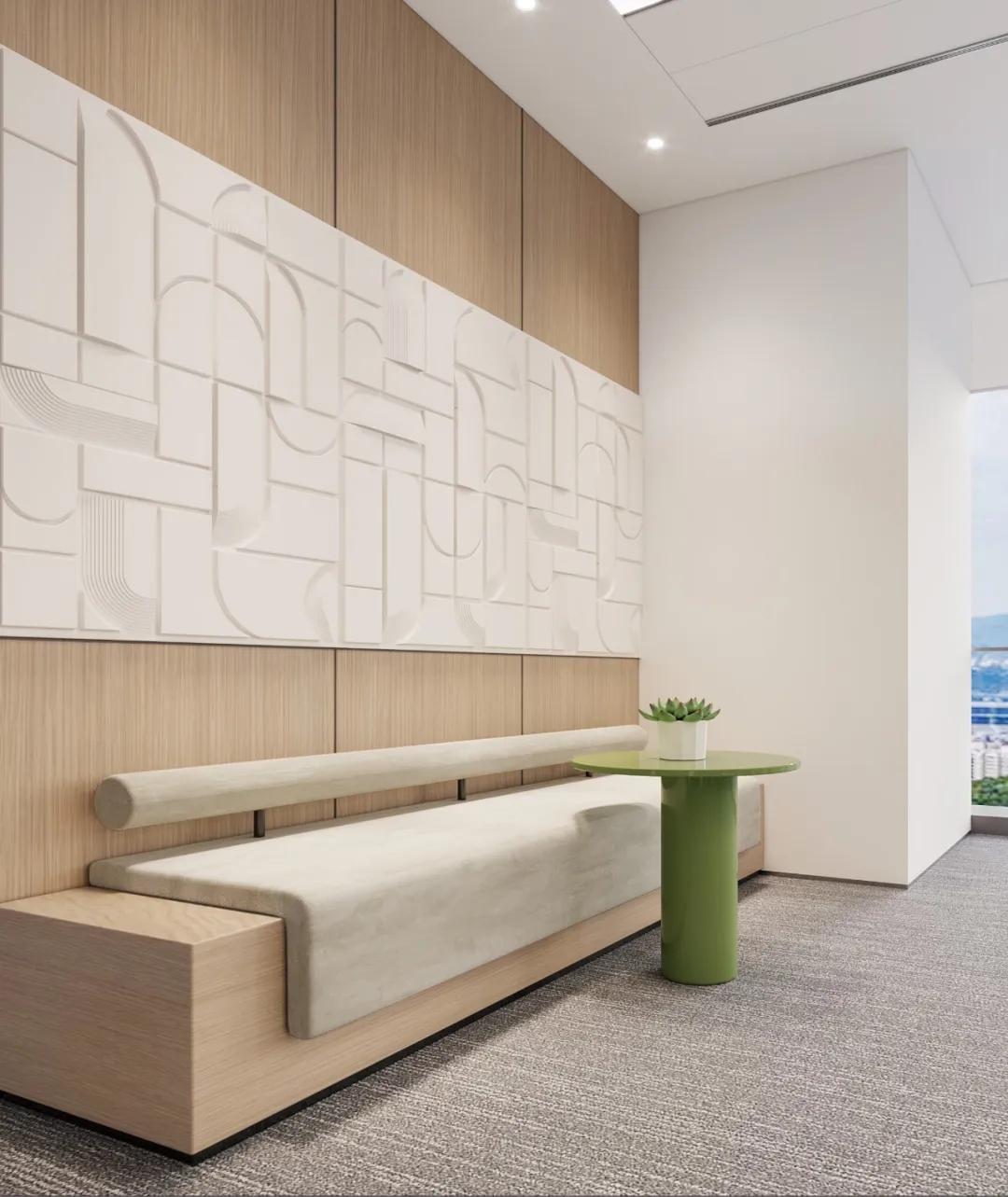 新的办公室设计调色板包括浅色柚木、柔和的白色,以及整个空间中的大量生态。办公桌靠窗设计,这样的办公桌不仅给人一种踏实感,透过窗更是有一道美丽的自然风景,采光良好,通风适宜。