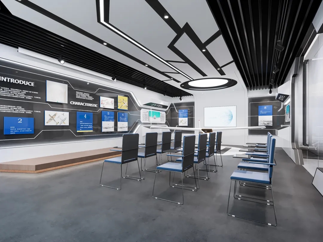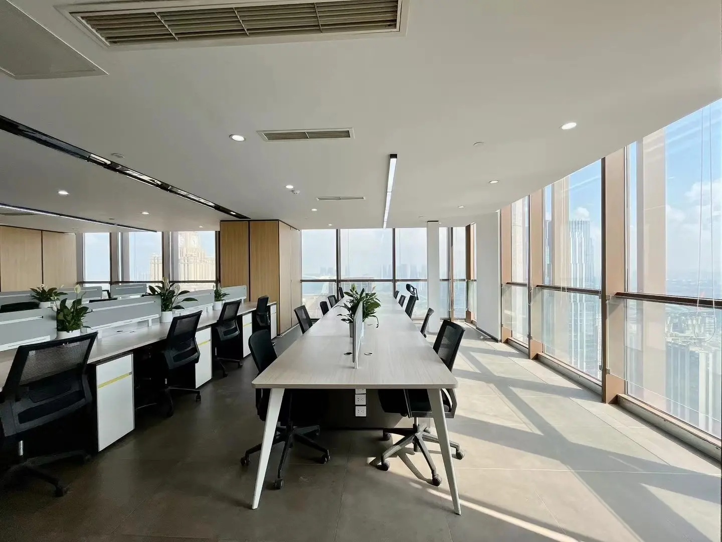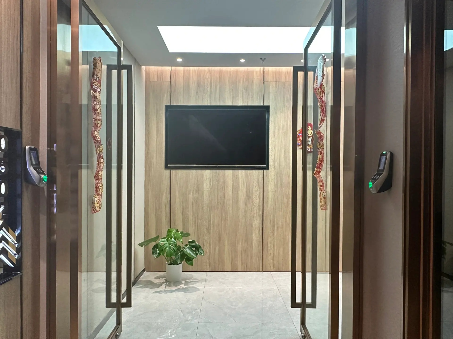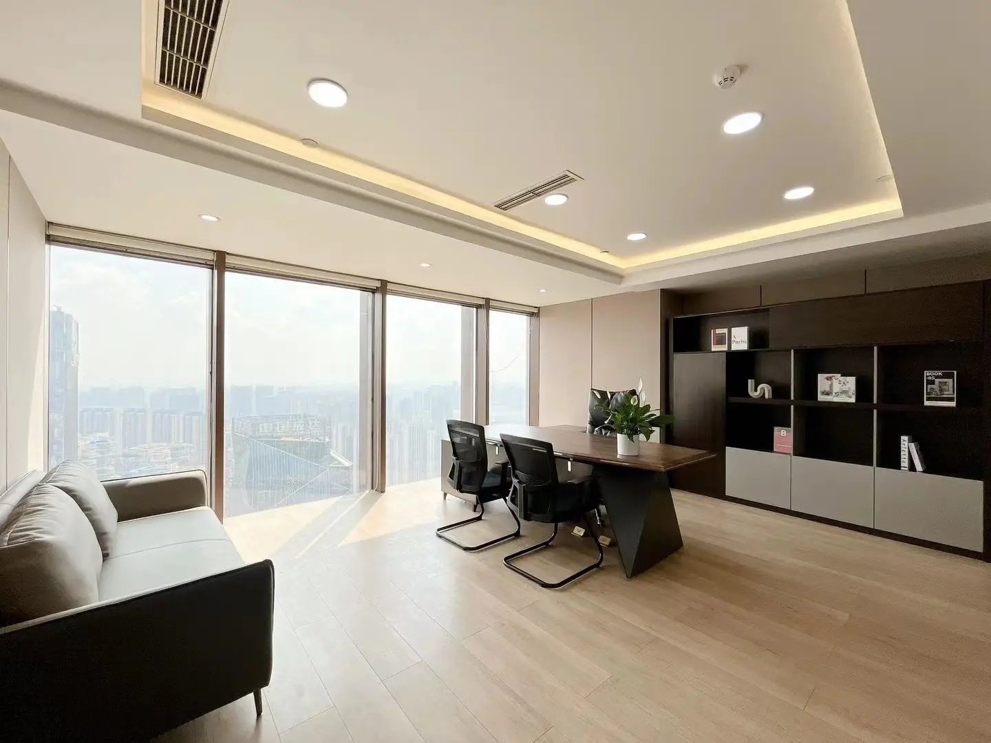 会议室和开放办公区,它们既是独立的,又和空间相互交融。通过长虹玻璃的连通着空间的节奏,顶面与地面的线条相互呼应,传递出空间的层次与未来感。