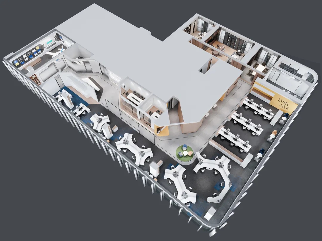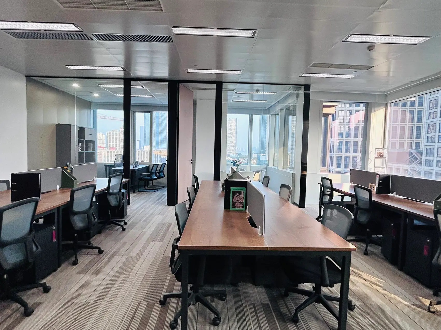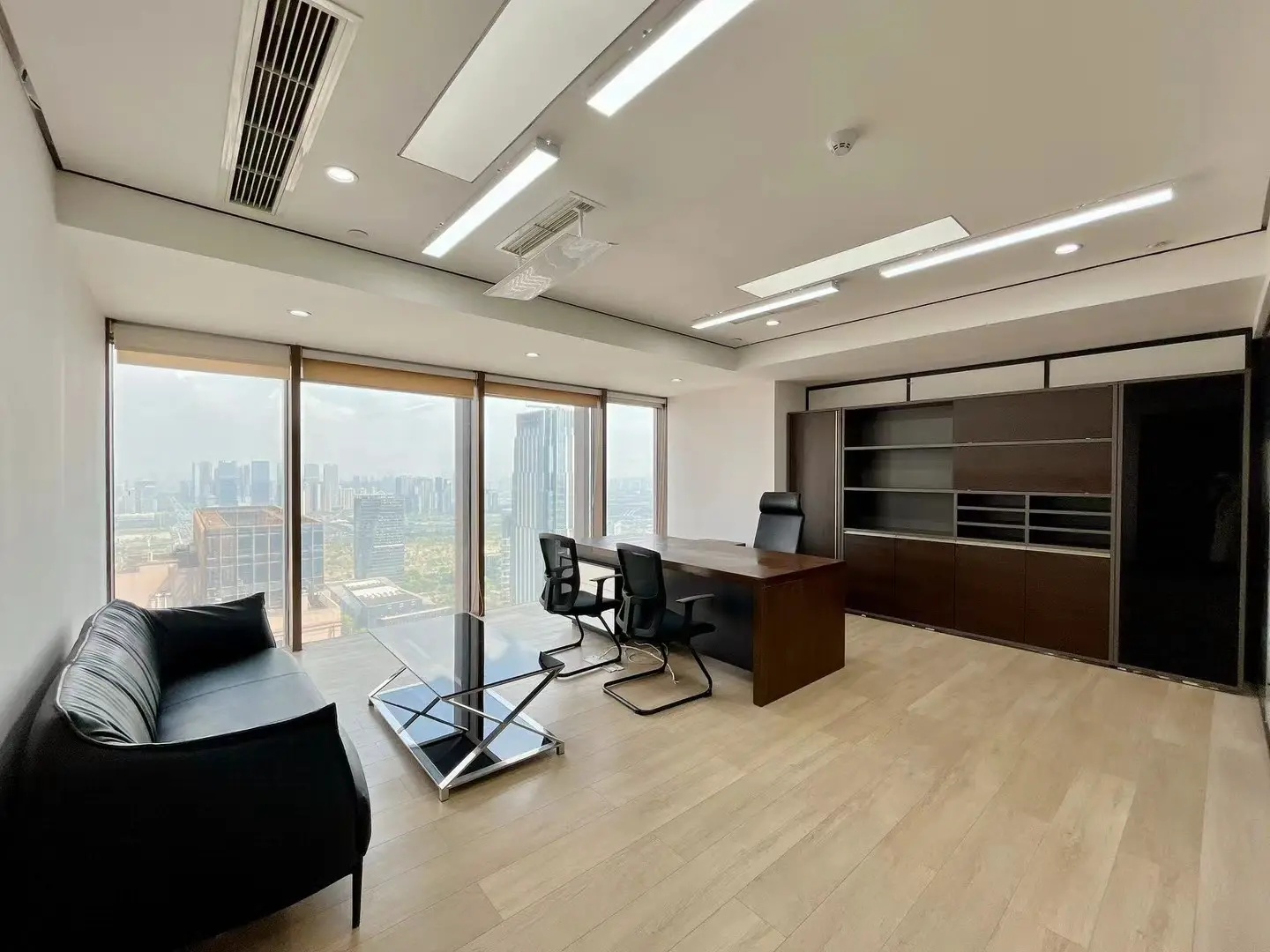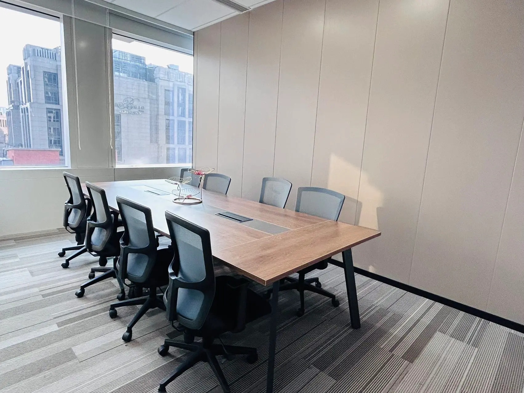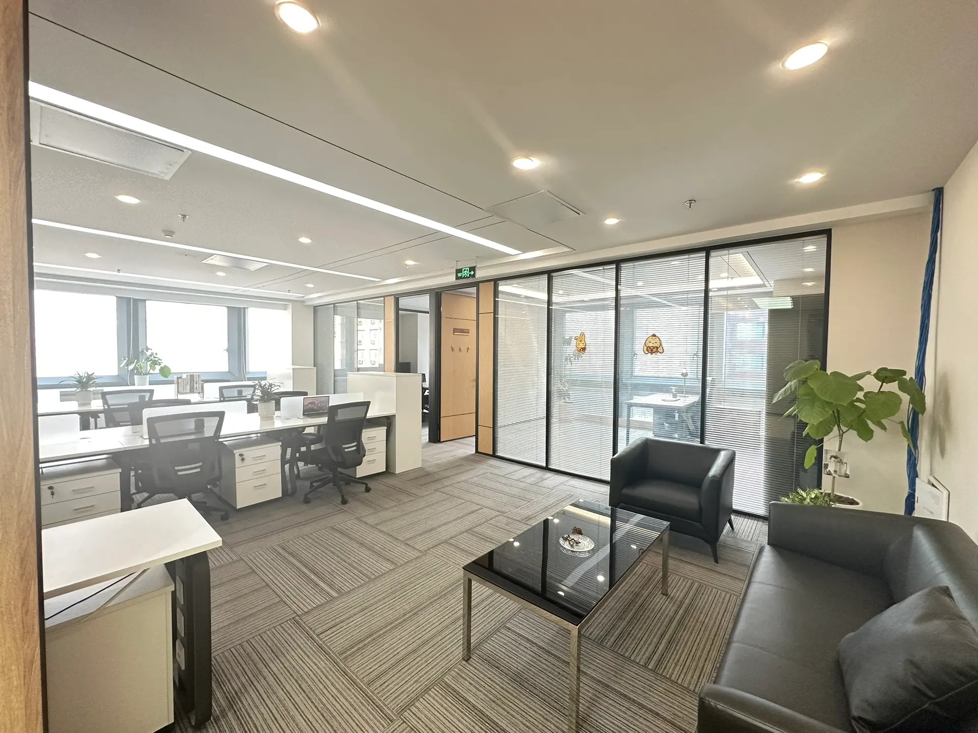 会议室和开放办公区,它们既是独立的,又和空间相互交融。通过长虹玻璃的连通着空间的节奏,顶面与地面的线条相互呼应,传递出空间的层次与未来感。