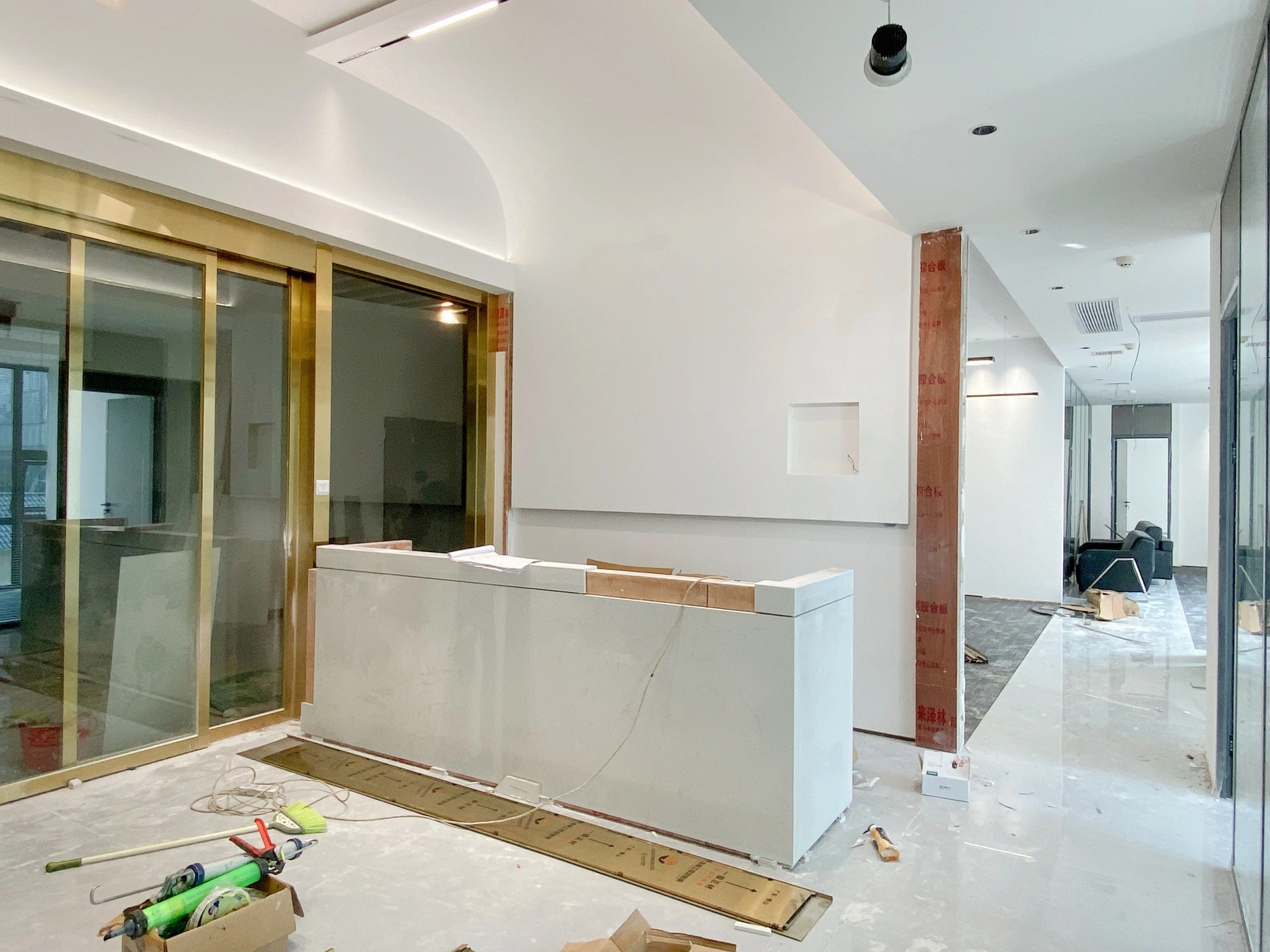 大理石地面一气呵成,大面积玻璃窗采光良好,视野通透,使两个空间有了更好的衔接。