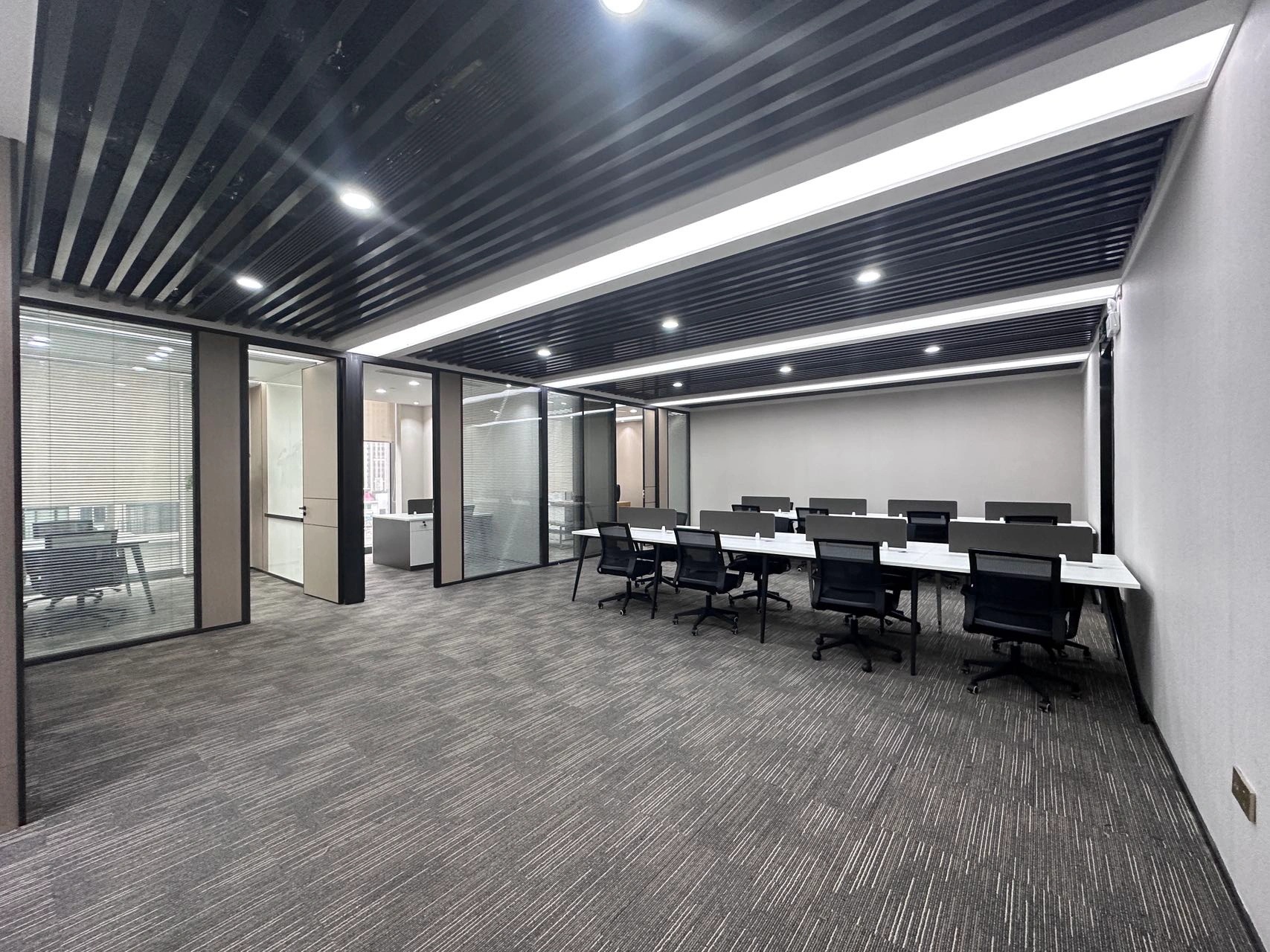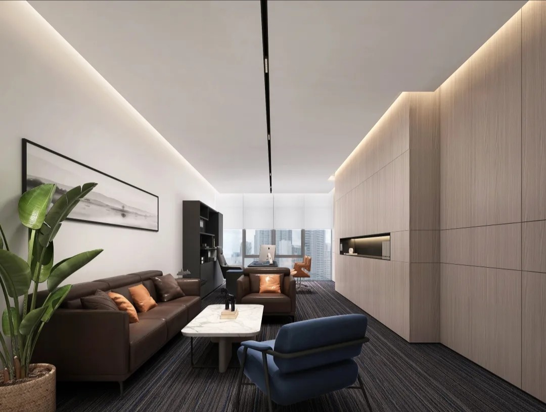 木色是自然的,有温度的。茂盛的绿植带来勃勃生机,顶部水纹不锈钢如海面般梦幻,吊顶像一轮明月从海上升起。金属的质感有着科技的味道,而木色则增添了人人文气息。