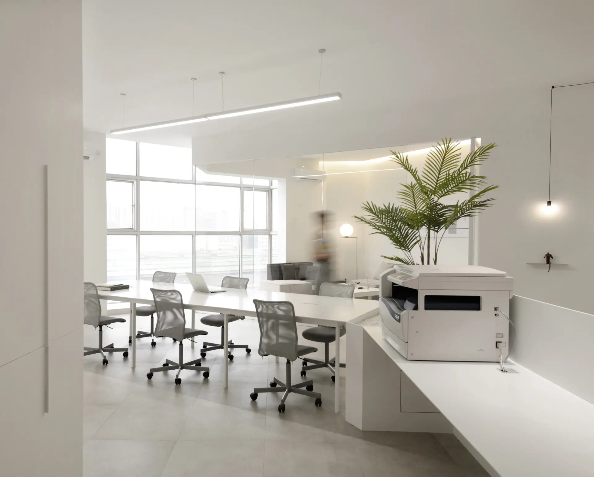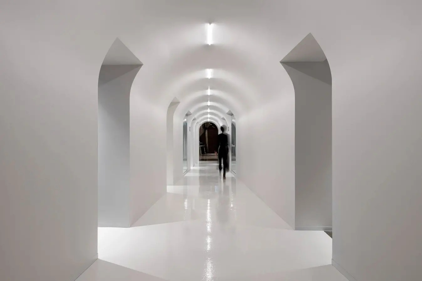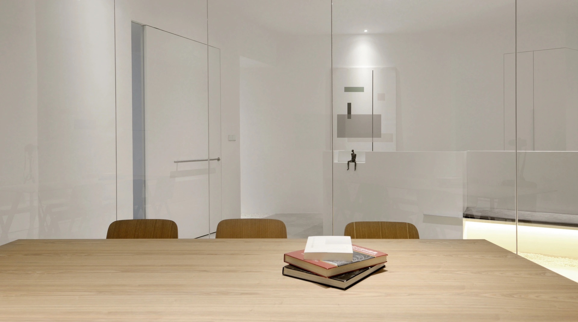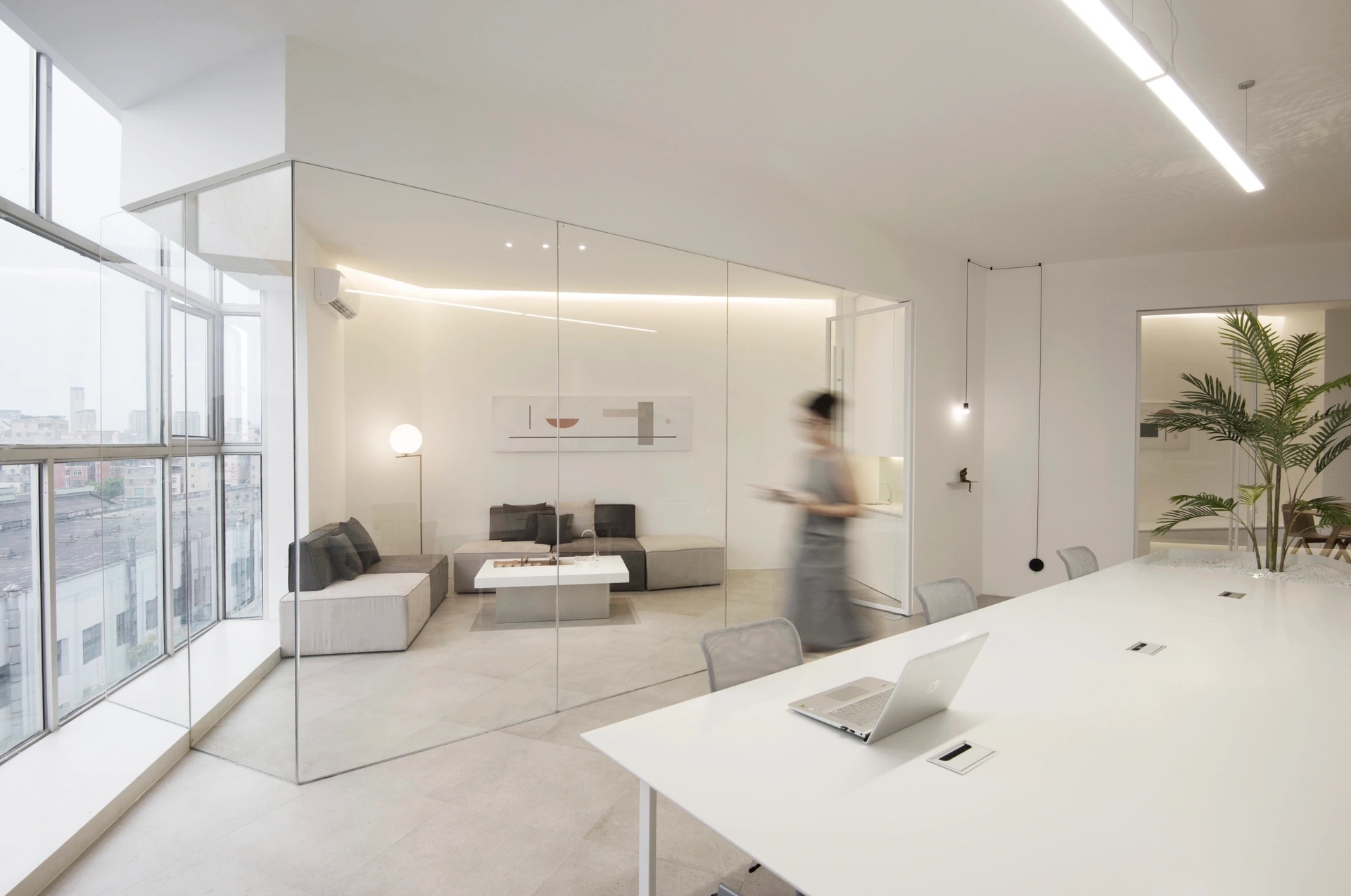空间体验的核心并不是一面墙体带来视觉冲击,也不是单个物件的拆分呈现,而是一个由六个面组合而成的多面体空间带来的多方位感官体验。用物质上的“少”,去寻求精神上的“多” ,即是人对自然的敬畏,也是一种含蓄的精神气质体现,印证禅学“无即是有”,打造永恒的现代主义都市禅意空间。