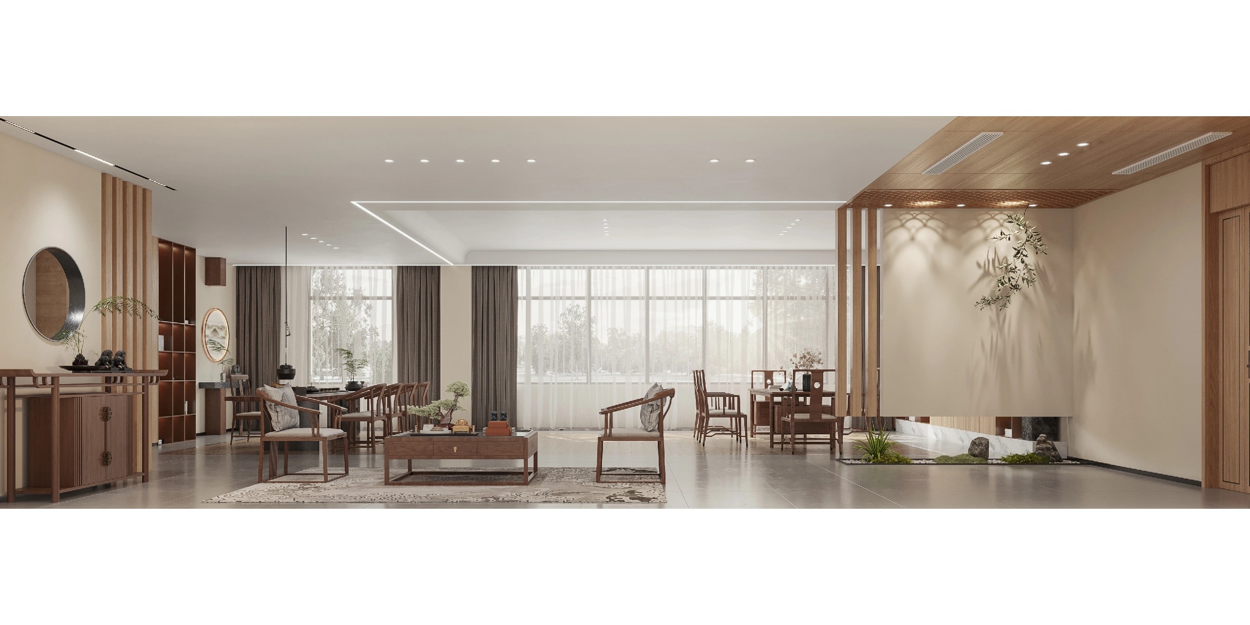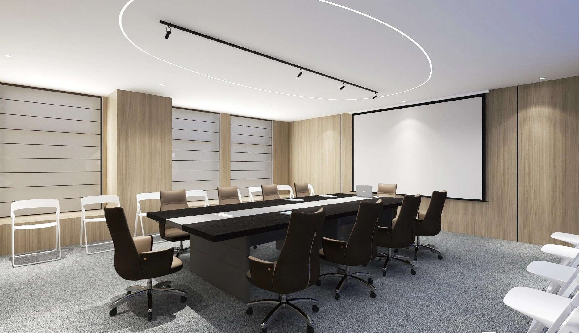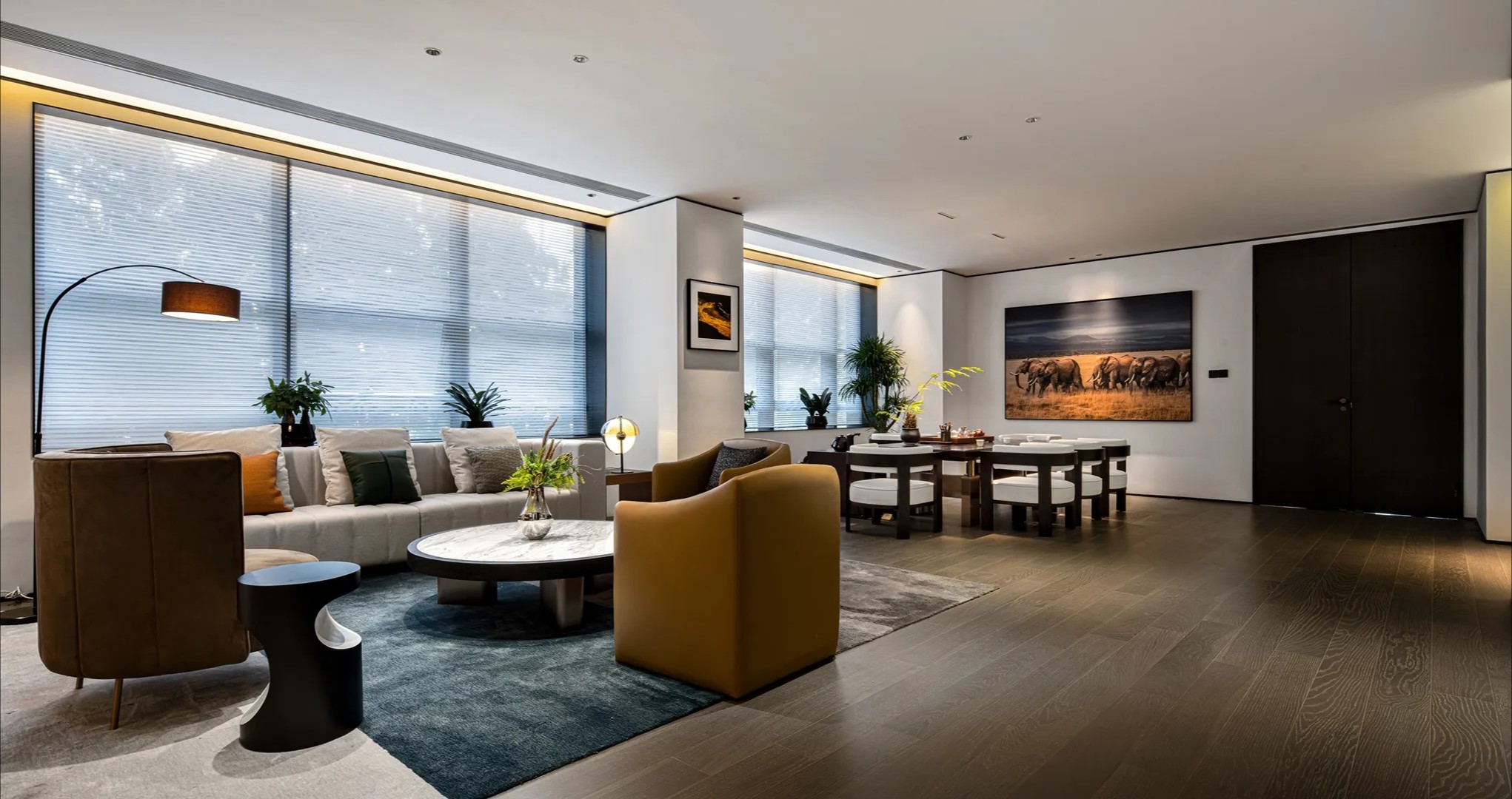 条纹地毯线条利落,充满艺术感的雕塑摆件、挂画灵动而自由,将都市生活融汇进来,使工作成为的另一种可能。