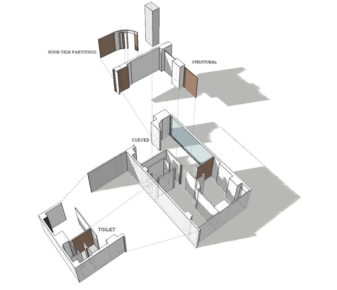 设计中按照人体工程学和办公家具尺寸进行功能区域的大小划分。整个分区即能很好满足个部门的功能要求,对人流进行分流,同时有使个部门有机的结合起来,能合理利用空间,提高工作效率。