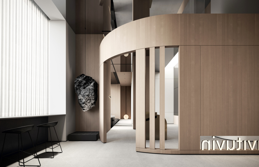 在秩序井然的理性之中注入饱含人文关怀的感性元素,在基本的物理功能满足之外创造接近自然的精神需求,现代办公空间总是在理性与感性、物质与精神等多重相对矛盾中实现平衡。木无疑是材料施予空间的魔法,木色具有包容、中和的完美效果,白与木相互映衬,给人无穷的想象空间。