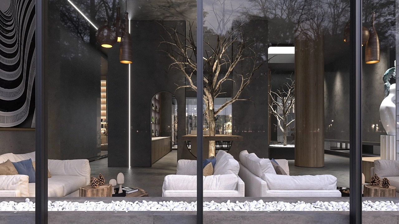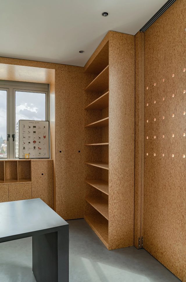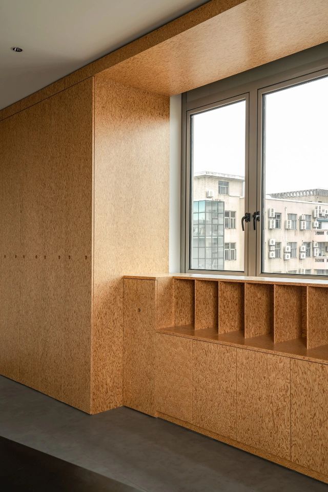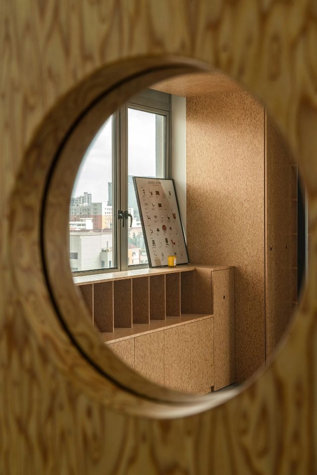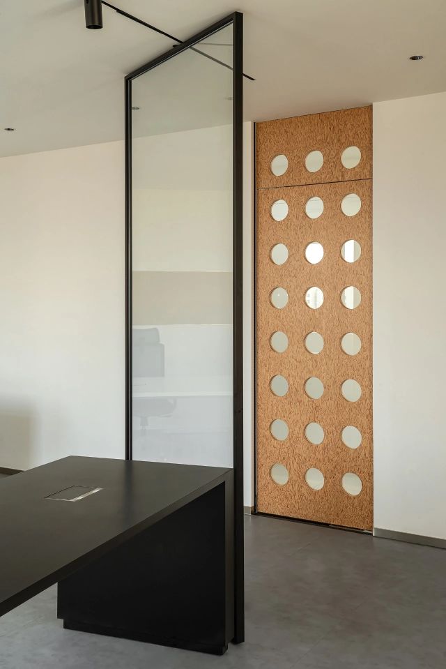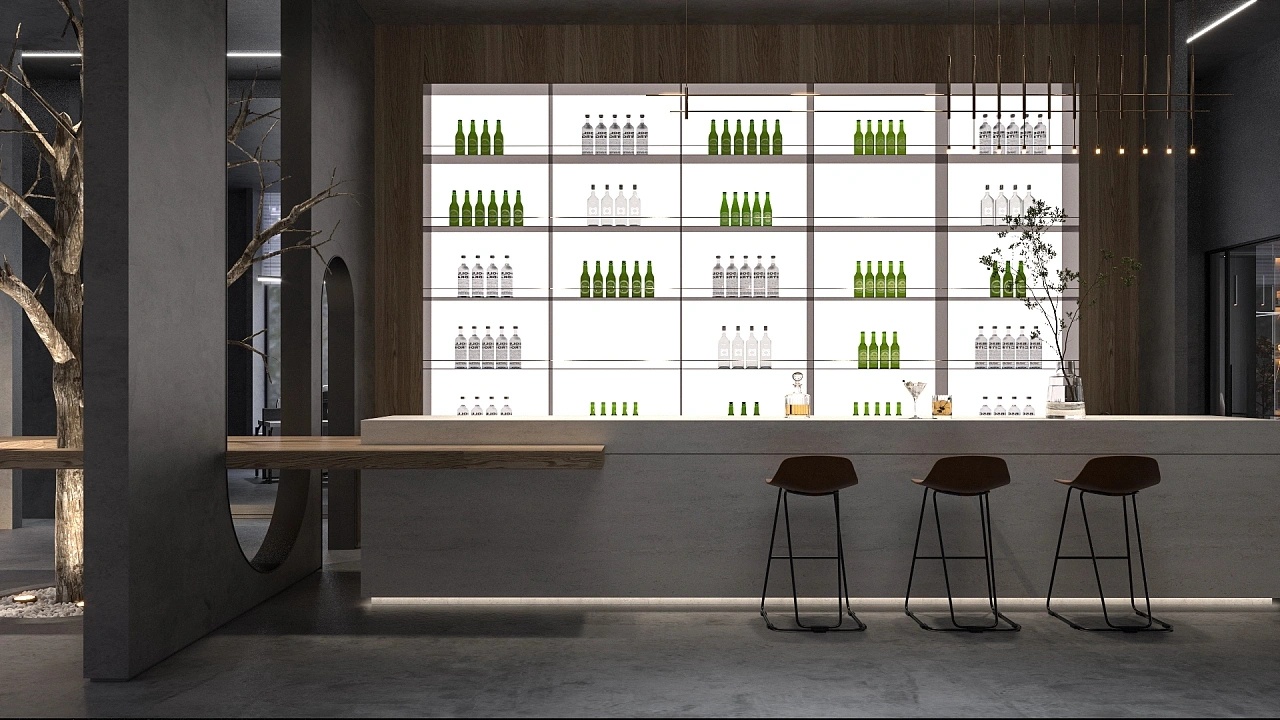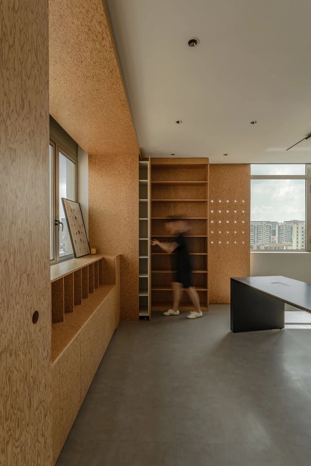 材质上选用了一款特殊的木皮“猫眼木”作为空间主要材料,通过材料的运用来表达个性,体现一个独特的空间。