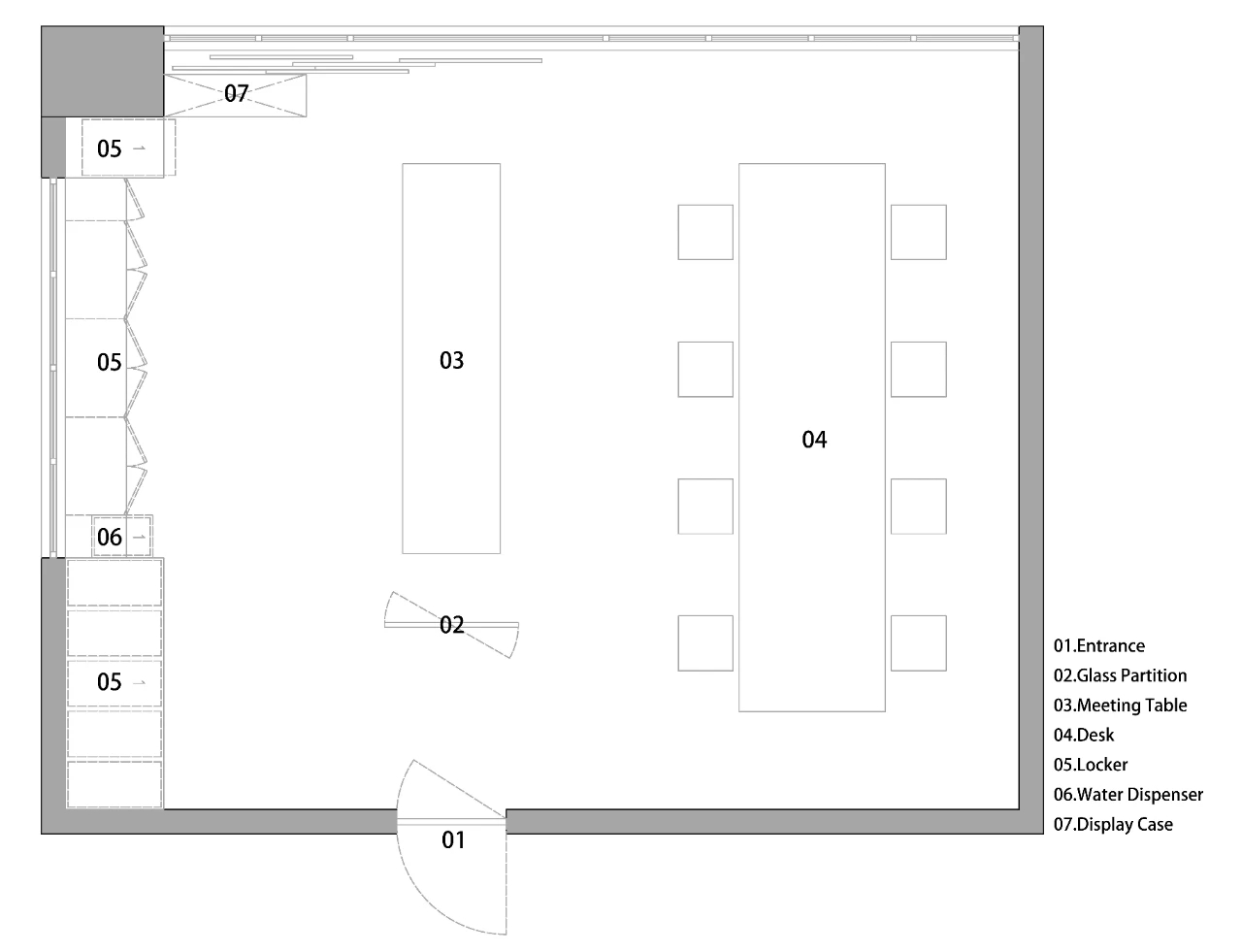 原始空间是个非常规整的矩形空间,对方希望抹去传统办公室一切无意义的装饰,尽可能的用简单的手法来塑造这个空间。由于不需要再给空间添加无意义的功能,没有了复杂的线条勾勒,也没有太多的元素堆砌,空间的功能简单且直白。
