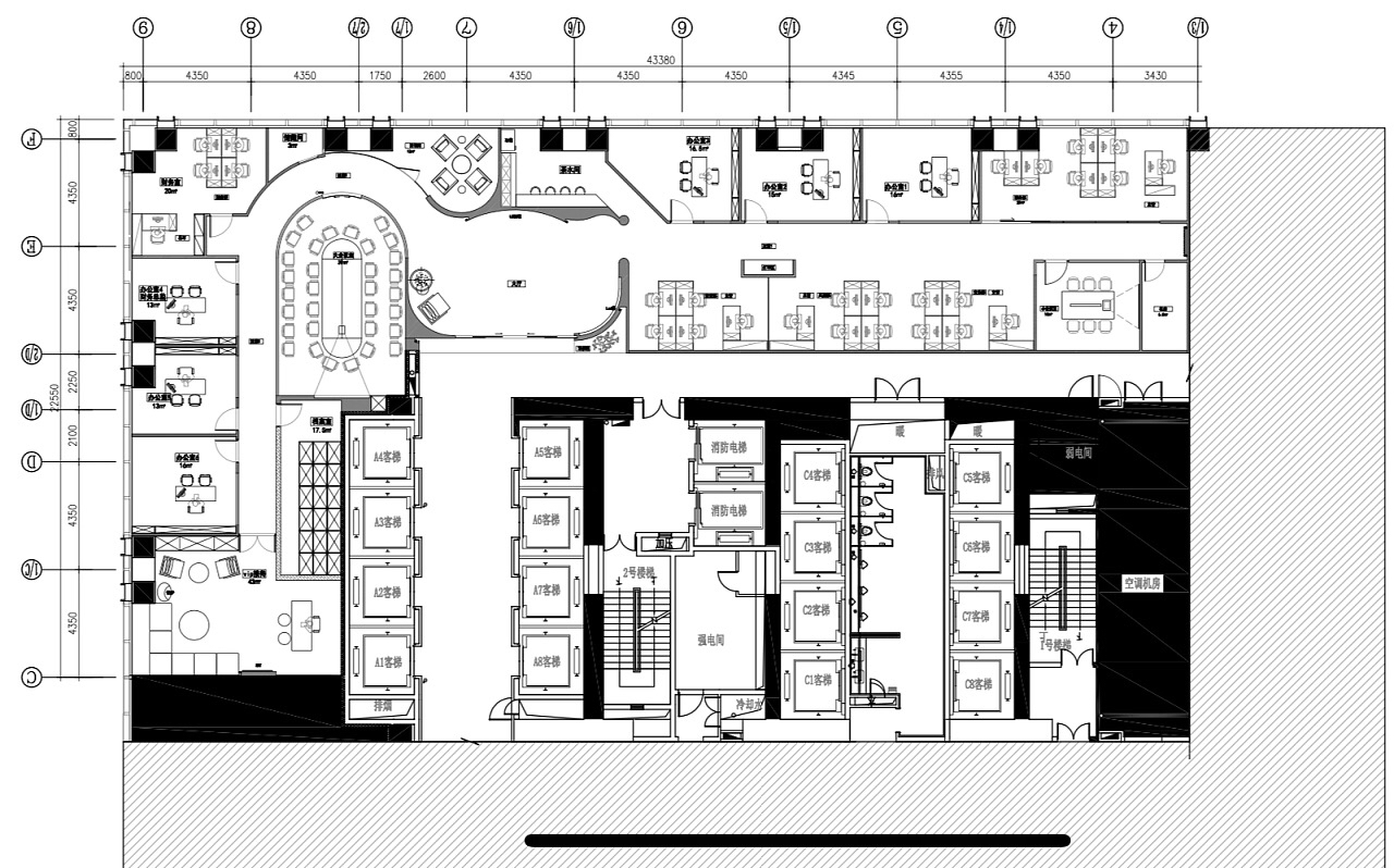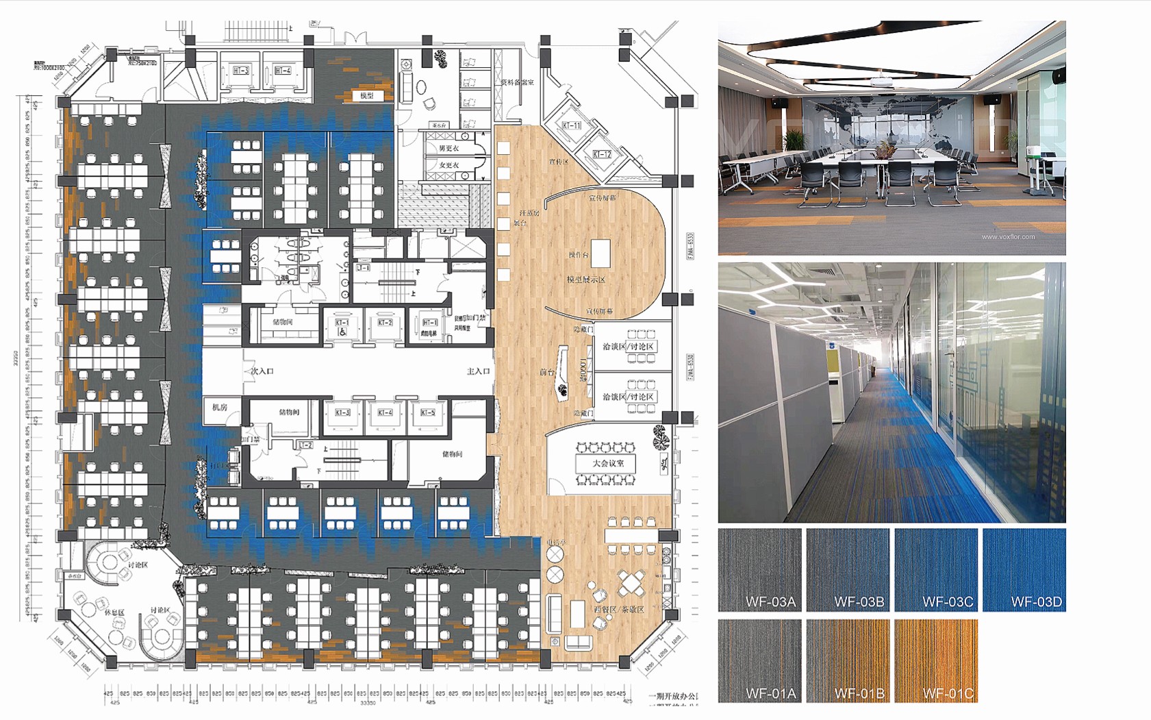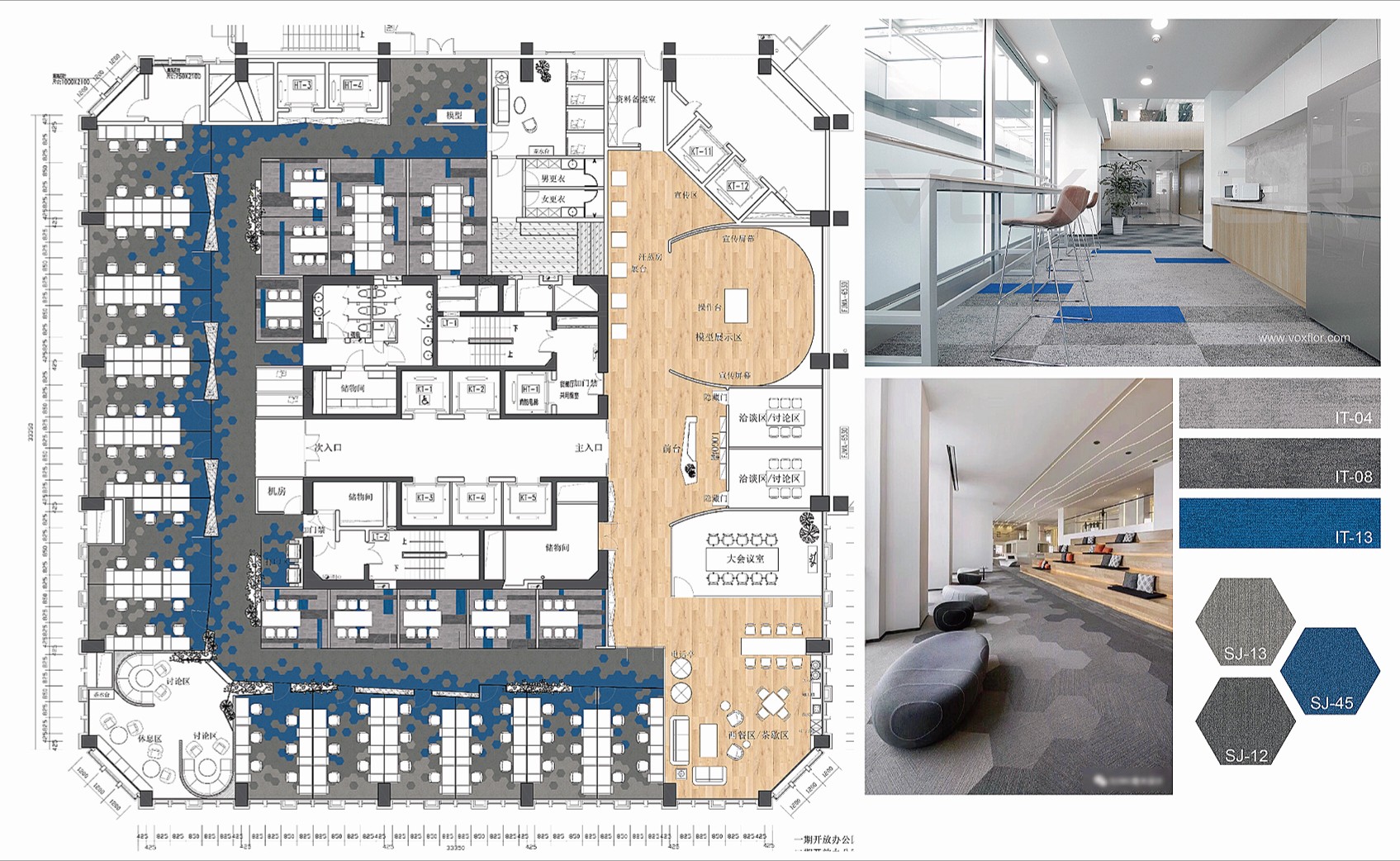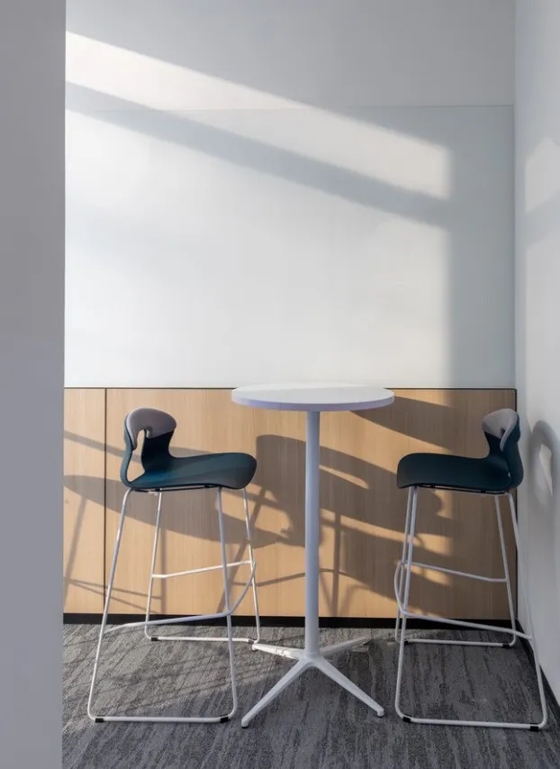 大会议室移动桌椅加上后置坐人阶梯的设计,极大的提高了整个空间的使用效能,可以根据不同的使用情景进行不同的布置:会议、培训、沙龙活动、小组团建等等都没有问题。