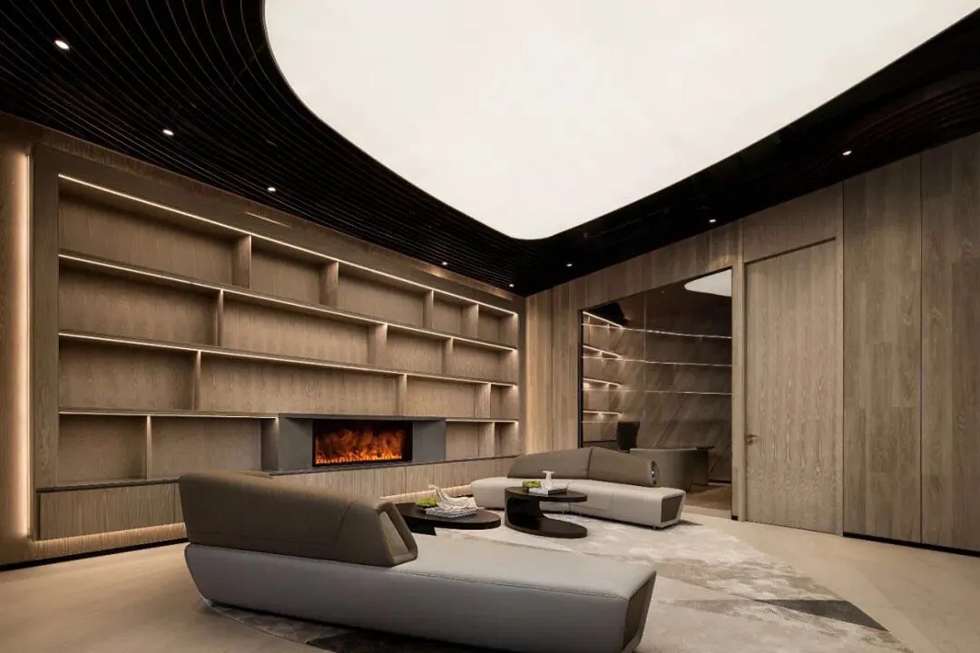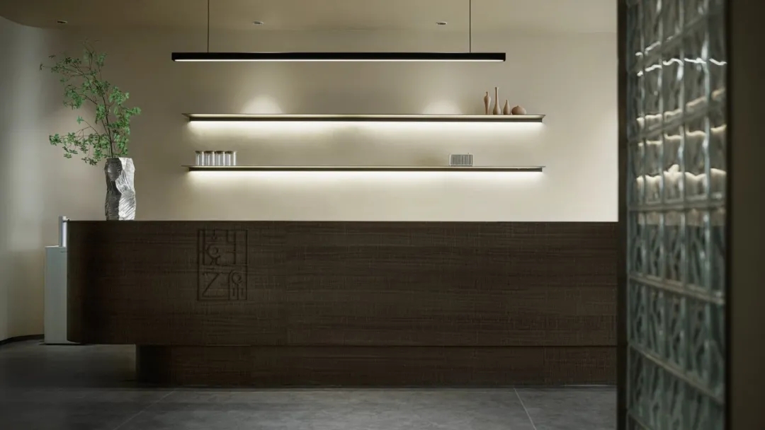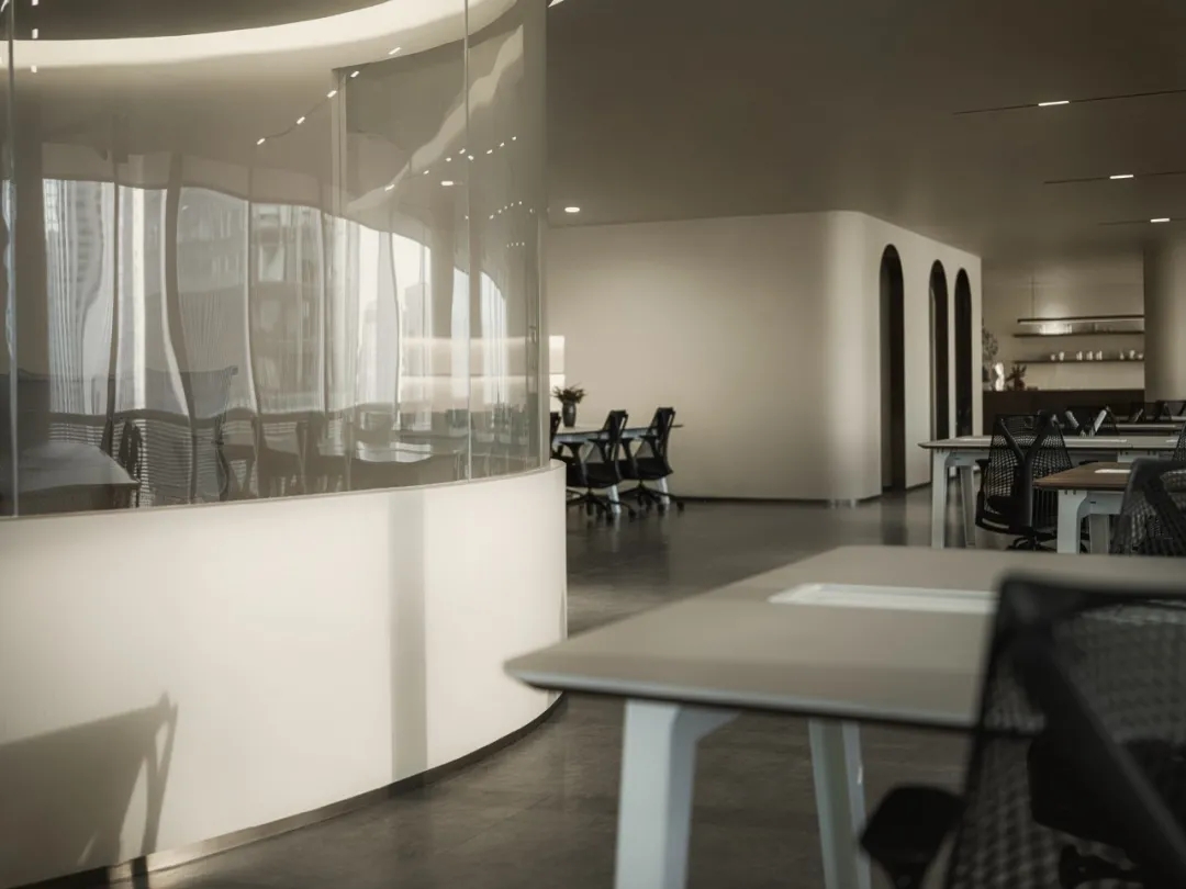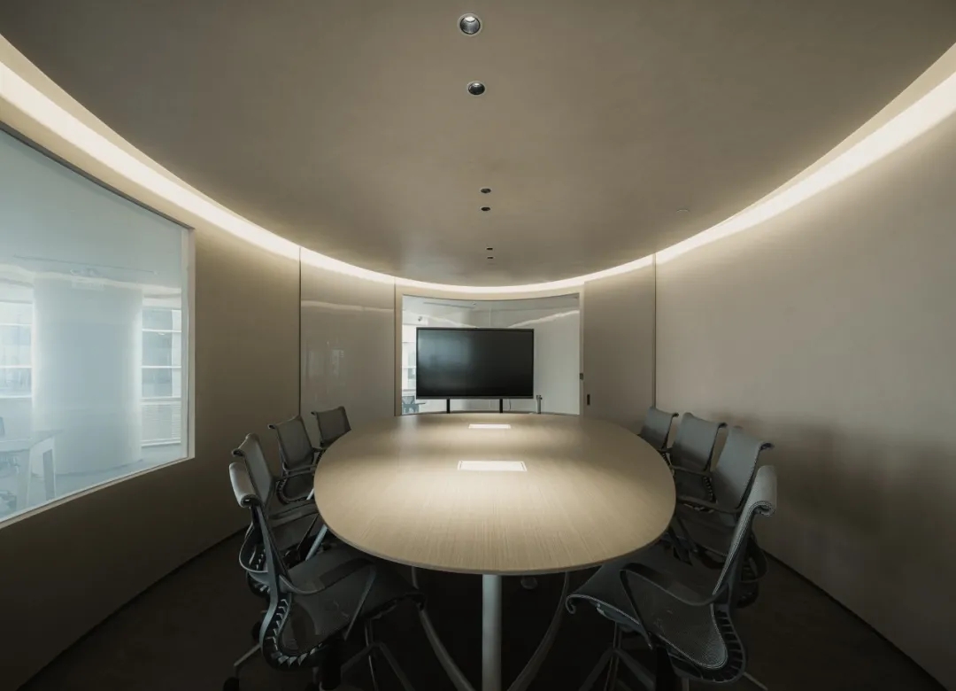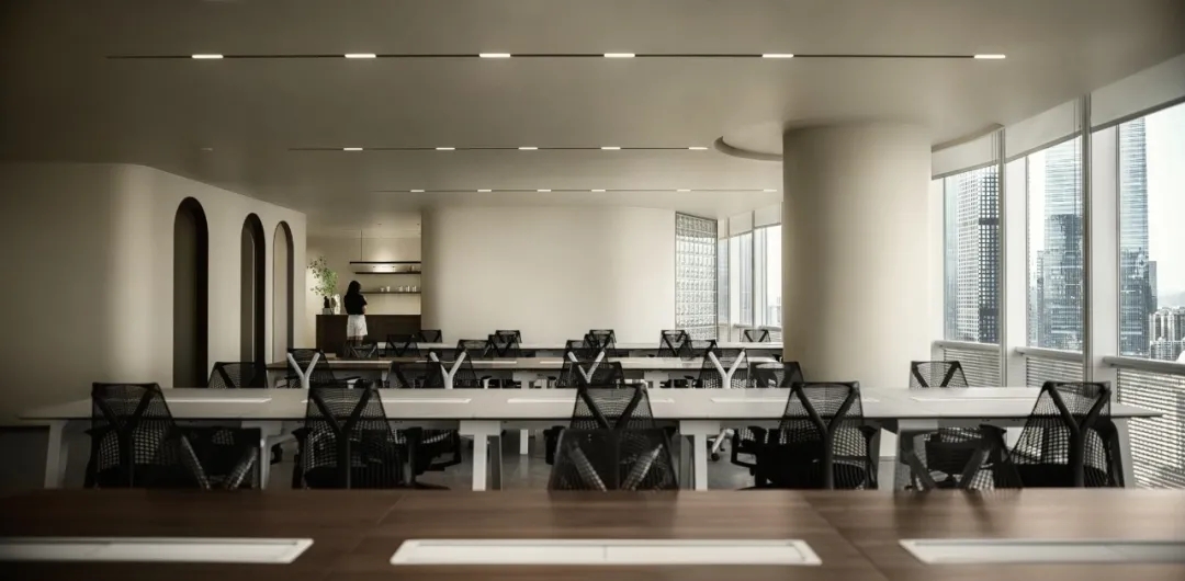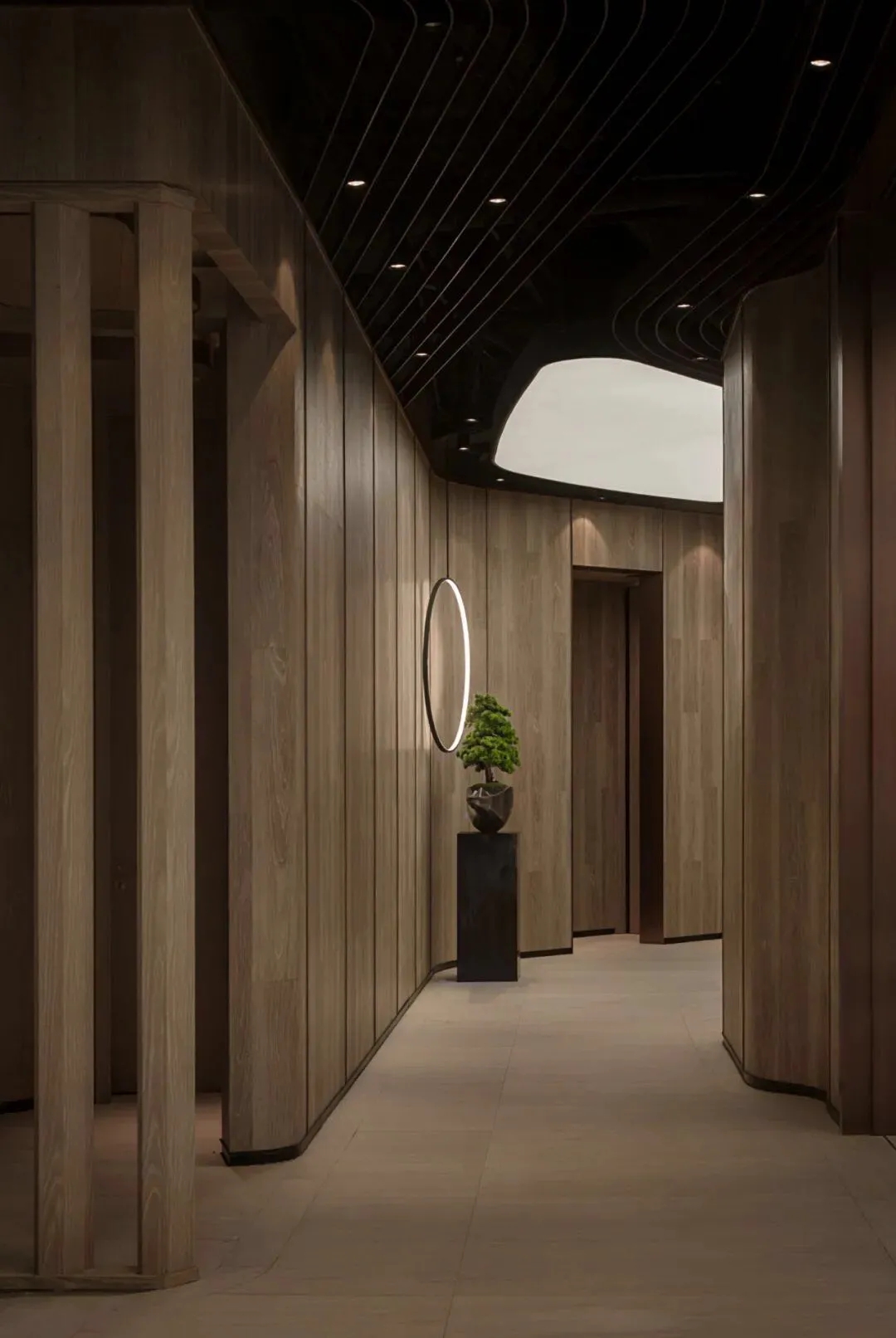 设计师根据“高品质金融科技感的商务空间作为对外窗口”的空间定位,将企业化和文价值观渗透进空间中,通过硬朗的材质与水的至善至柔,进行硬与柔的中和、碰撞,力图打造出一个高品质的商务空间的标杆产品。