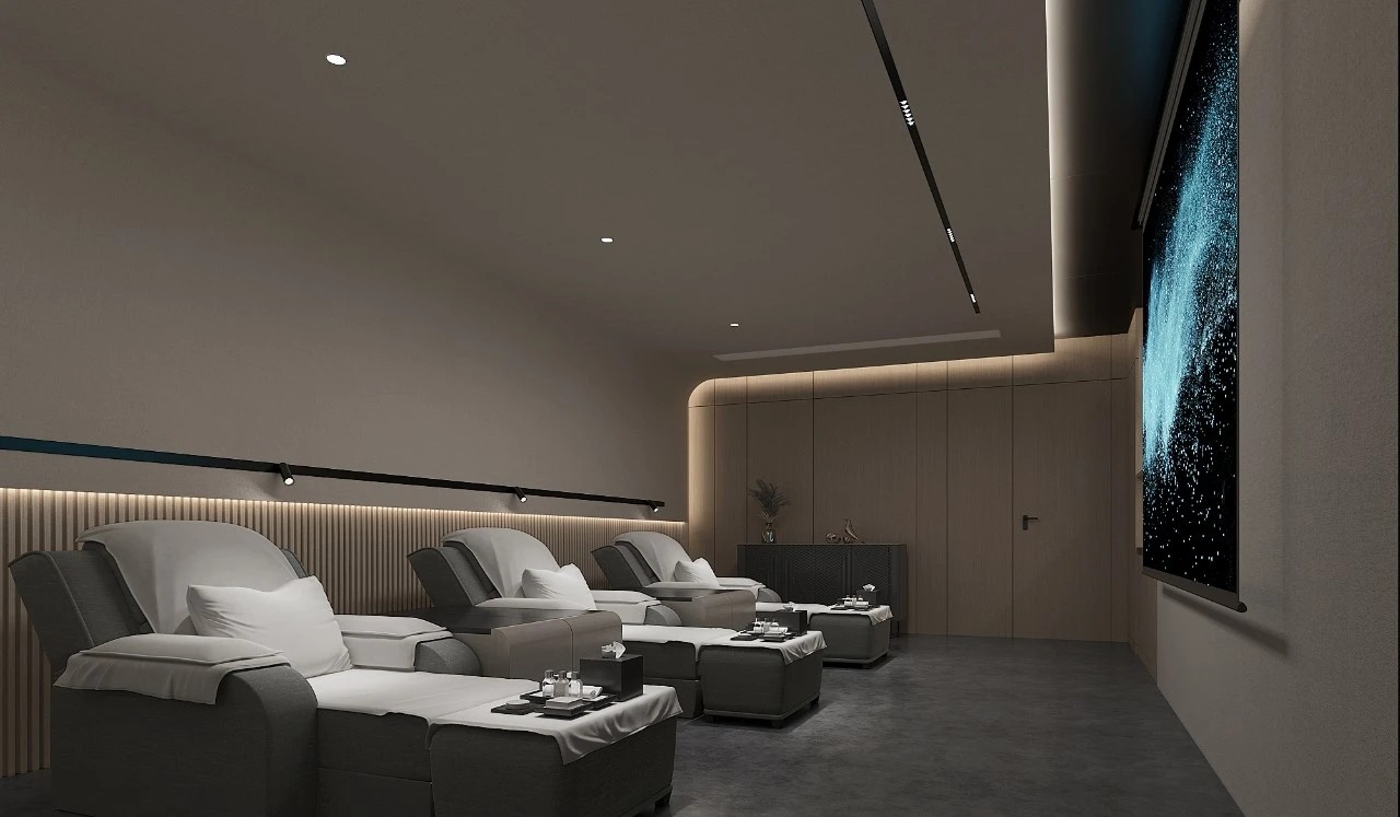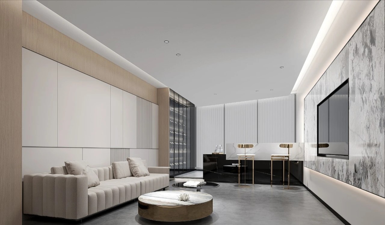 空间的清浅透过合宜的设色,让场域得以呈现现代时尚又极致简约的格调。时间在无声中消逝,生活的美好却在畅意中留存。氤氲的灯光与一脉相承的空间质感,让设计师期望带来的安宁之意,在与实景时空亲密接触的瞬间被捕捉。