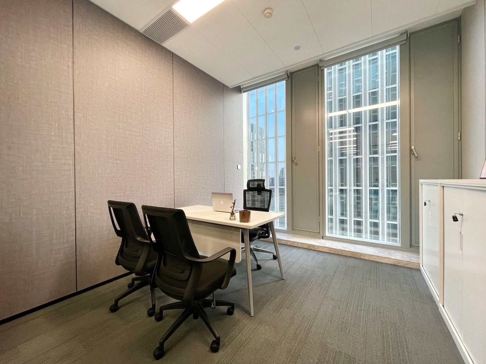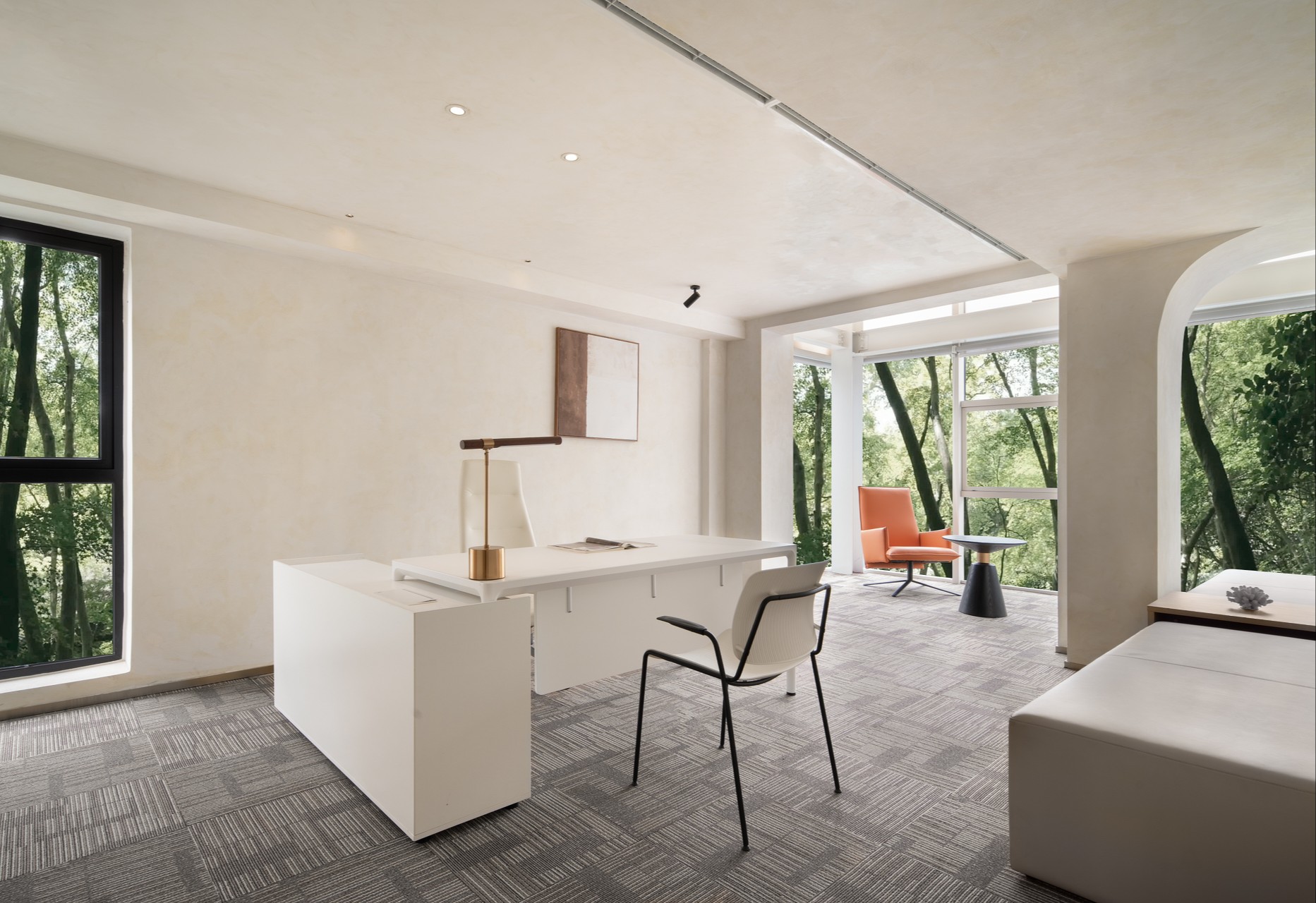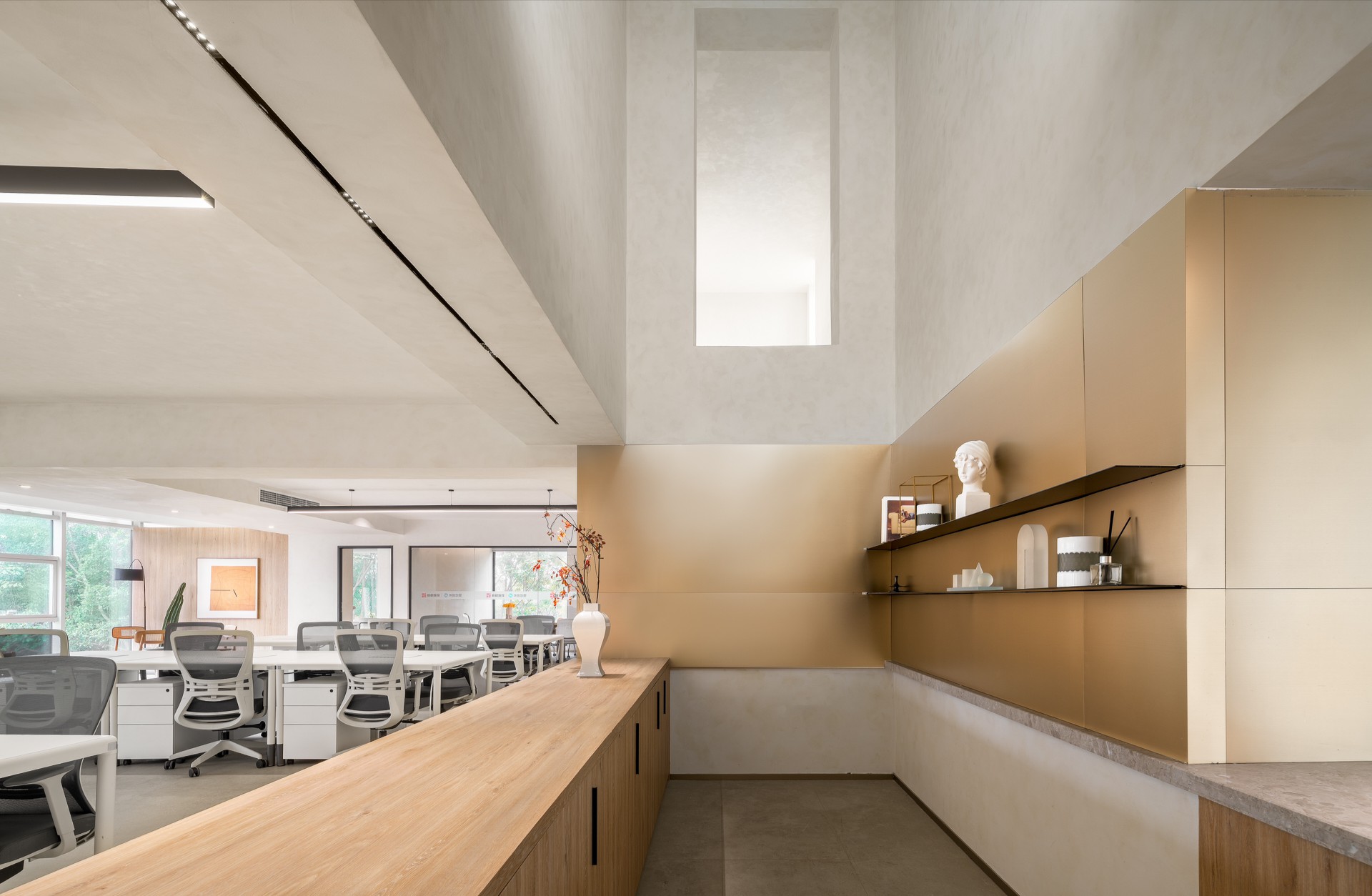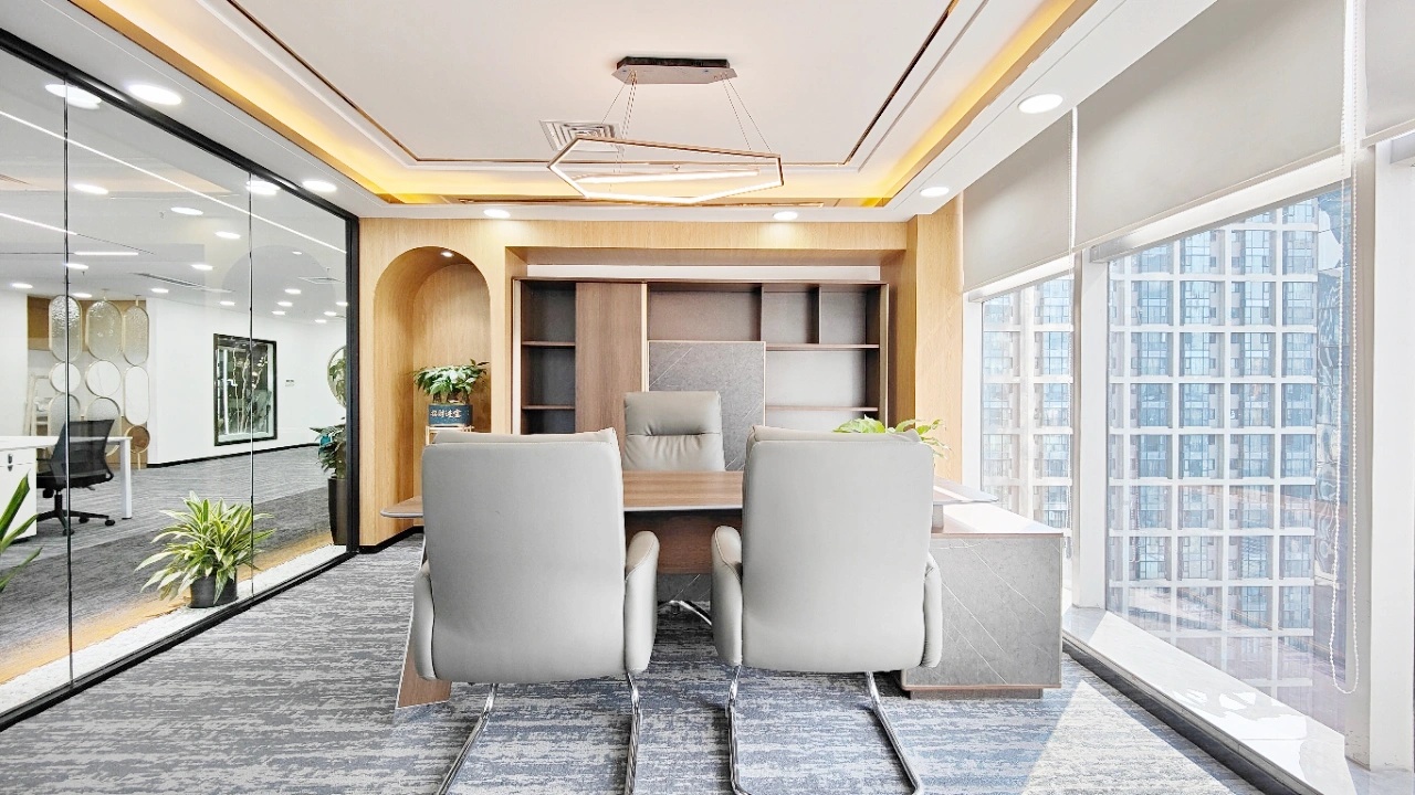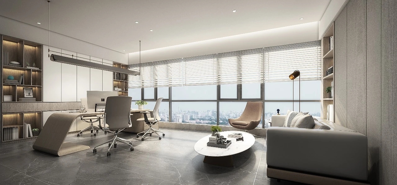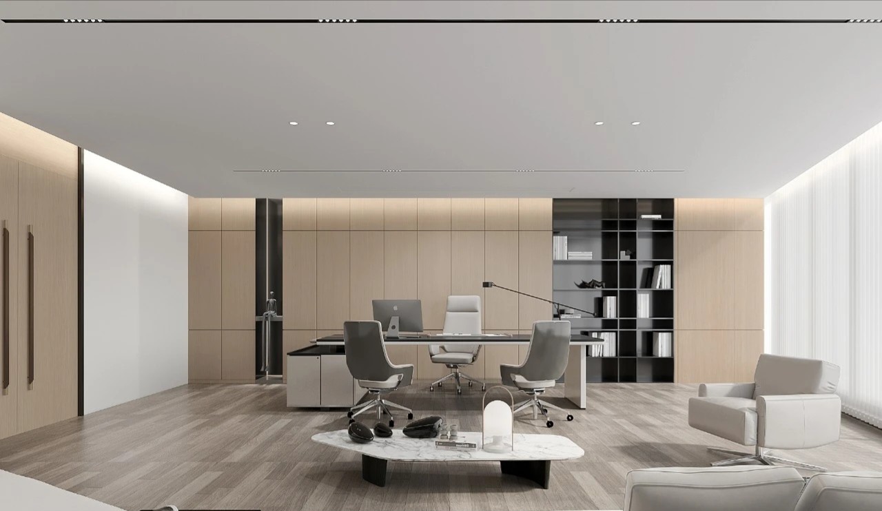 总经理办公室重视空间内在品质的呈现,融入有温度和质感的材质,营造出安静、内敛、舒适的氛围,具有极强的秩序感。