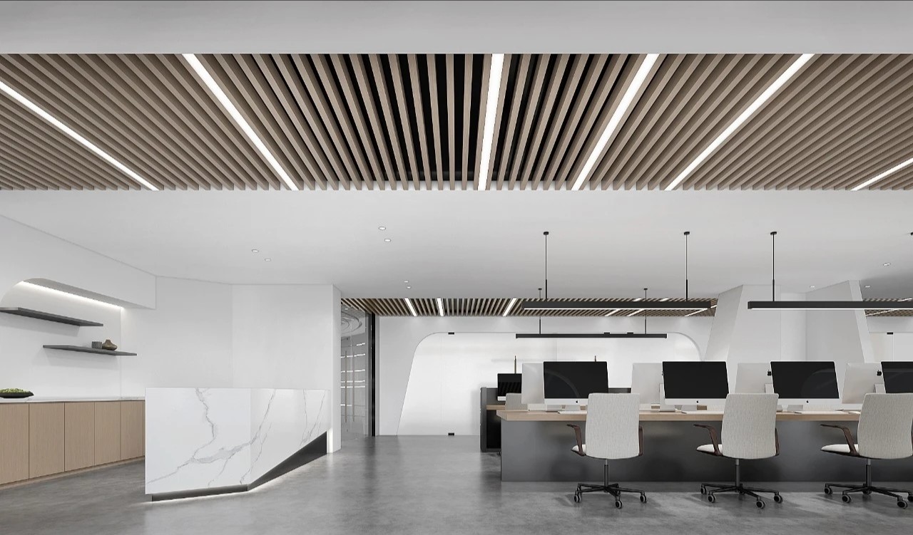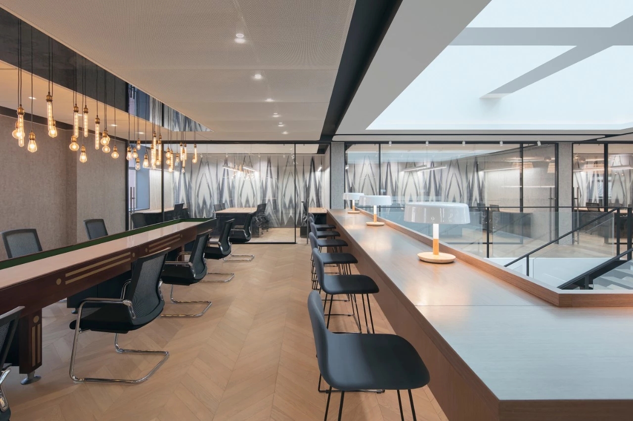 长的棱形前台可以轻松驾驭正式的客户接待、业务洽谈,或是非正式的同事闲谈。适度休闲,静待灵感来袭,浓郁的人情关系也再次焕发。