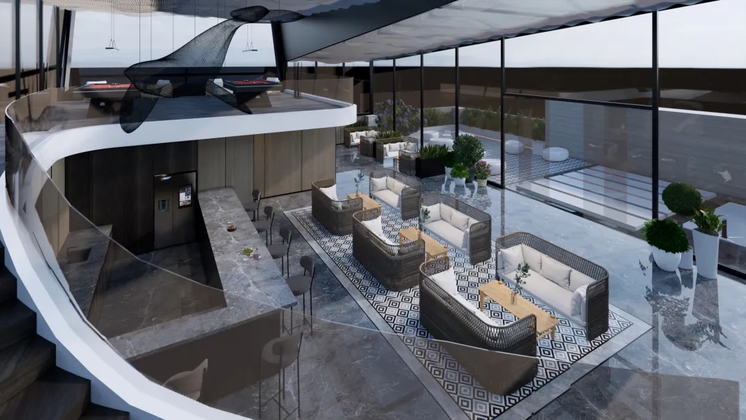 建筑内的挑高设计手法为空间带来了更强的呼吸感。错层的空间设计,不仅带来的视觉上的通透,更是将公共的功能区域进行更大限度的分享。