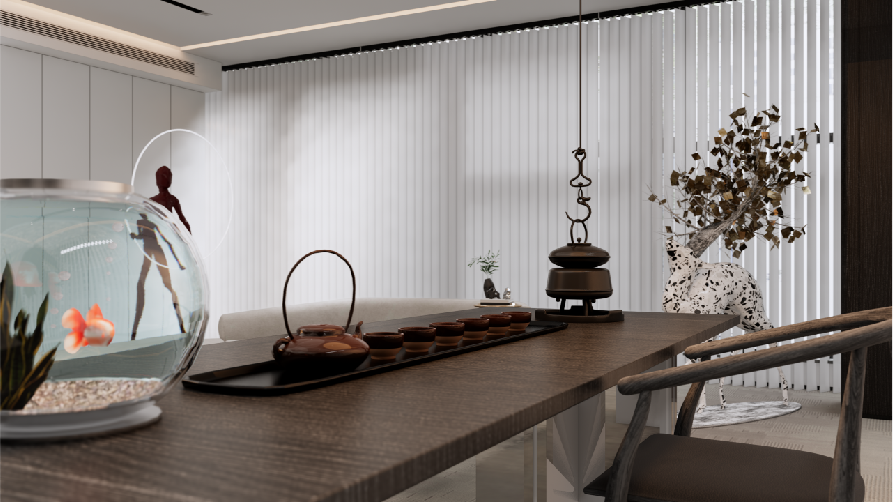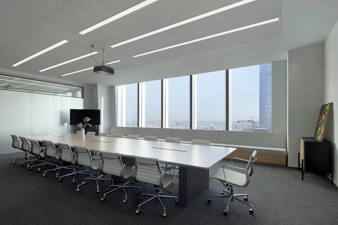 前台连贯着吧台,等候区就是休闲区,水泥饰面、原木家具和细边框的玻璃隔断,大面积的中性灰色调,速度与激情的斜线切割,靠窗的按需预定的联合办公工位,隐藏式的储物设计,甚至引入全新的电动升降办公桌,传递坐站交替的主动健康办公模式…….所有的这一切,让金融只是业态,不再是形态。会当凌绝顶,一览众山小!当天生丽质已然成立,设计的意义就在于让设计在这里变得......似有还无。
