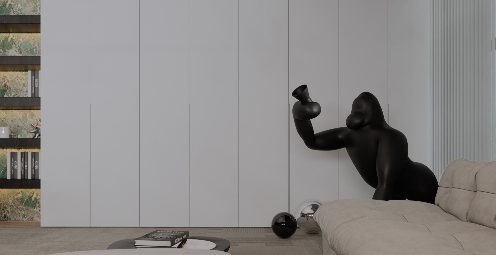 通过横纵向穿插、贯穿的方式,使内部极具建筑的视觉空间感。以光为引,透过素色介质包覆整个空间,底色的统一与光感相映相融,呈现极致纯粹而又静谧的氛围,仿若在时间胶囊中穿行。以简驭繁,使整体更趋于和谐融洽。