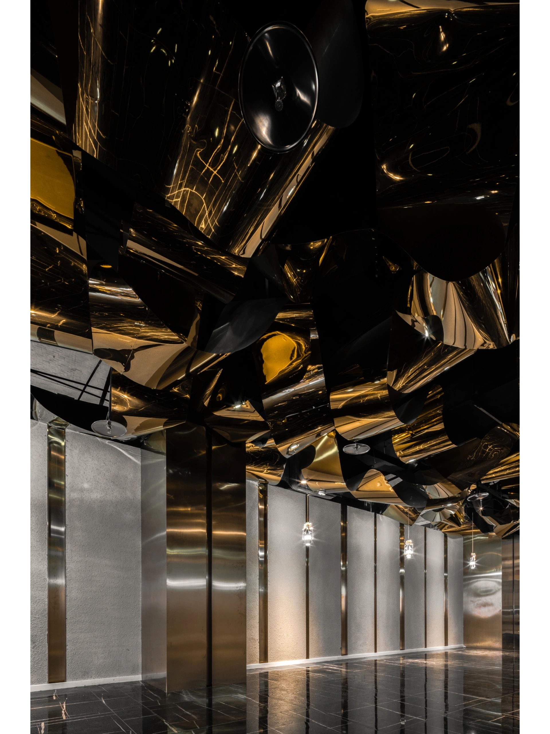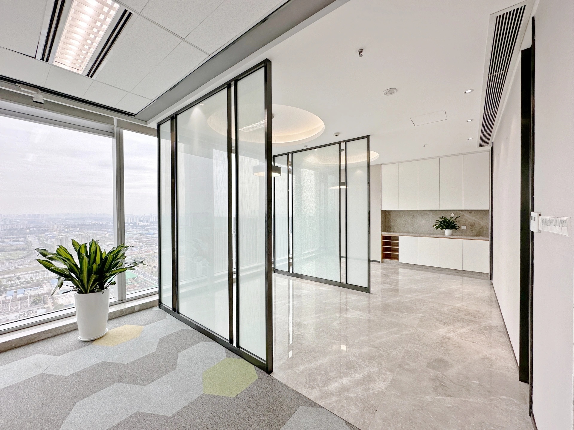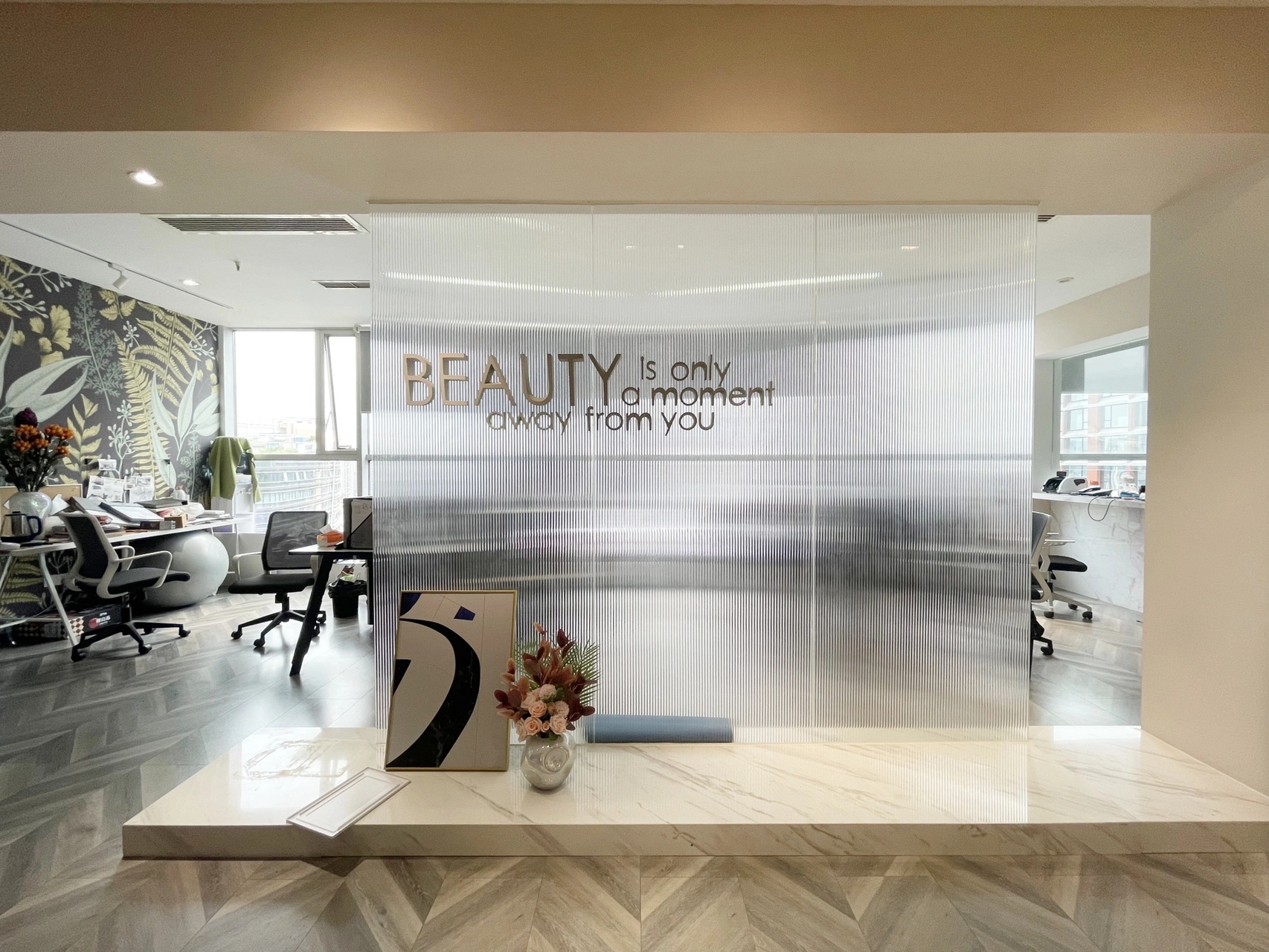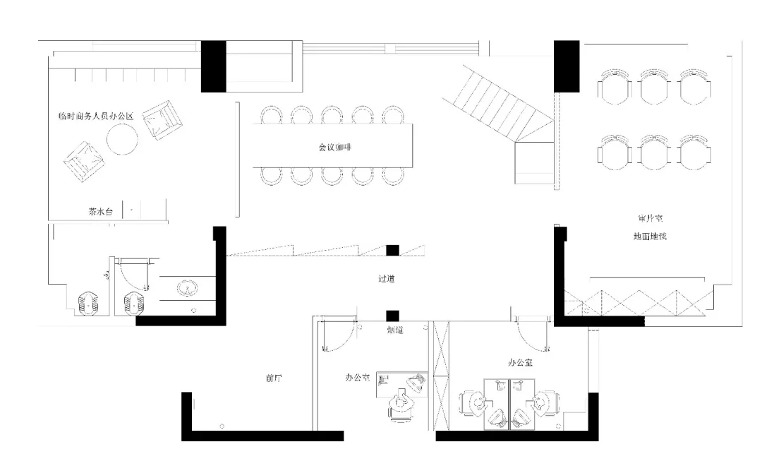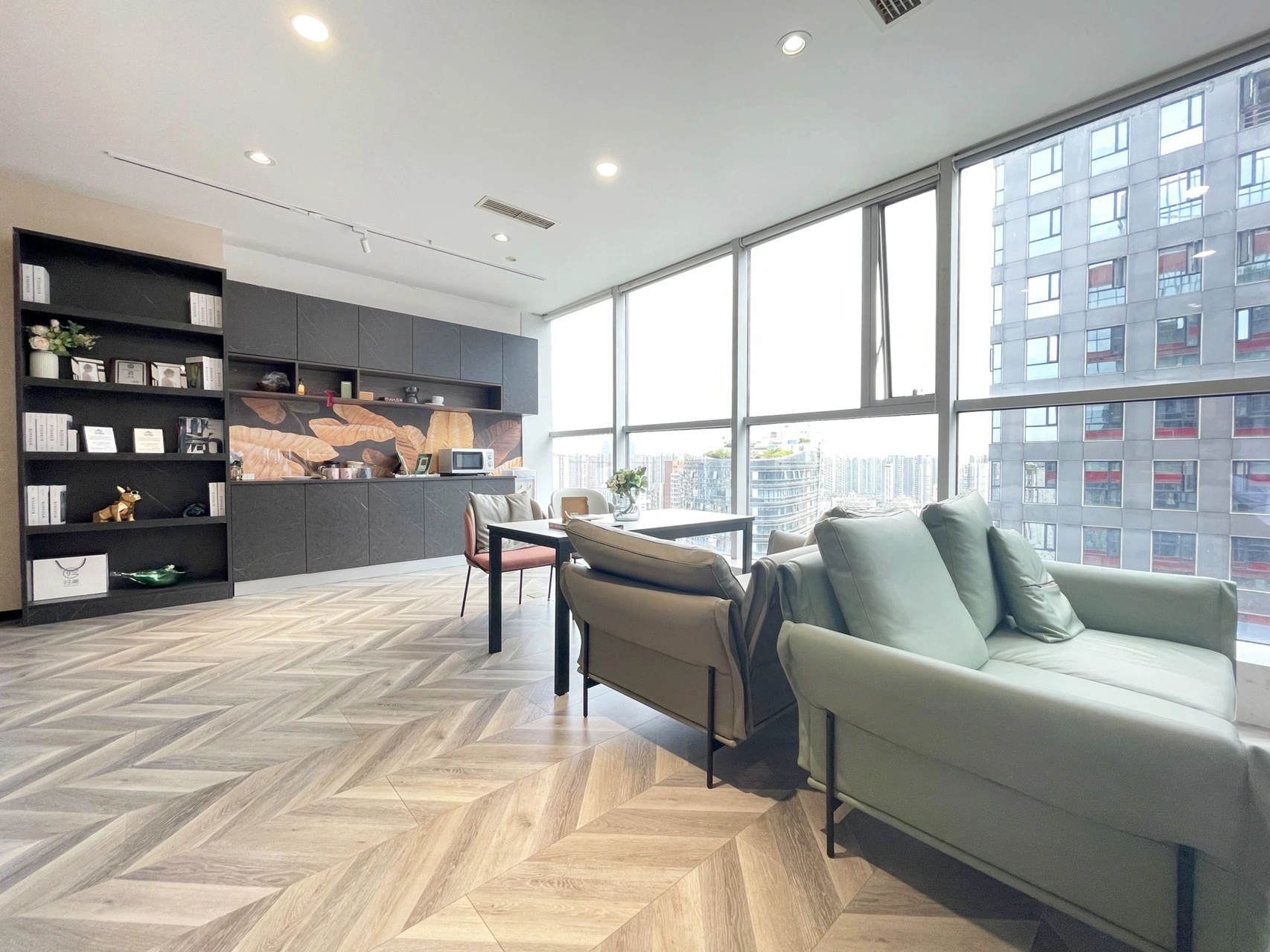 我们将弧形空间的造型作为办公的核心区域进行打造空间的成型不仅将办公区作为一个单独的小空间又框选在了我们的弧形空间内我认为每个空间形态的分割线它都应该自然而然没有违和感你不需要去设定特有的一些东西来划分空间很多事情应该是淡淡如水的慢慢形成