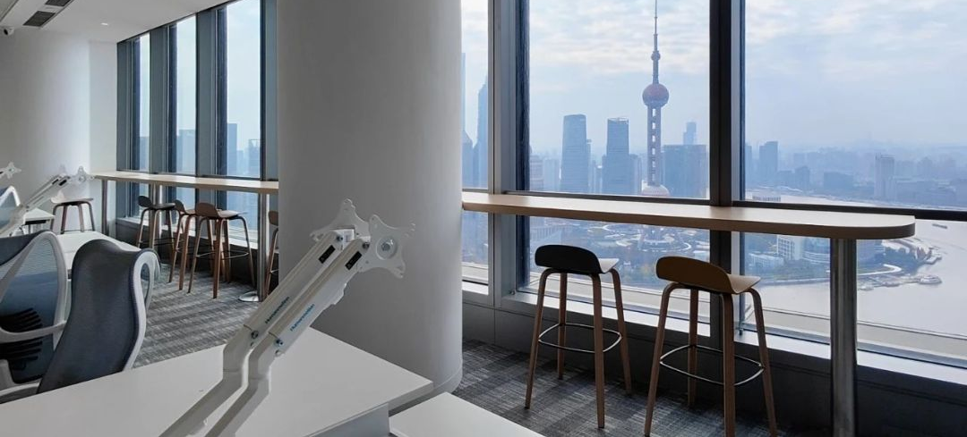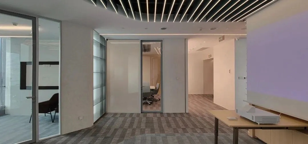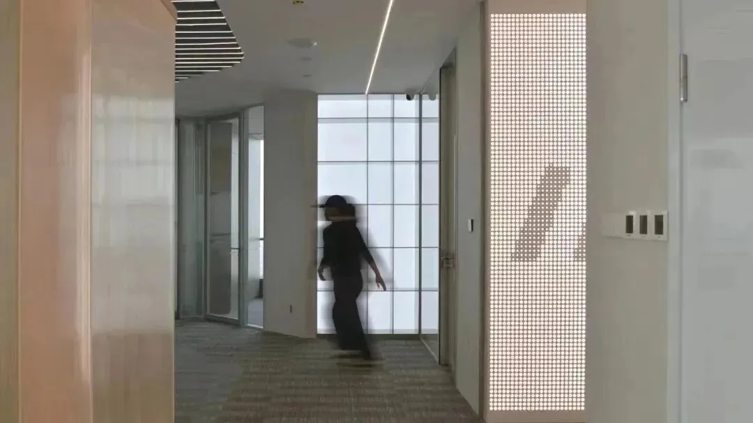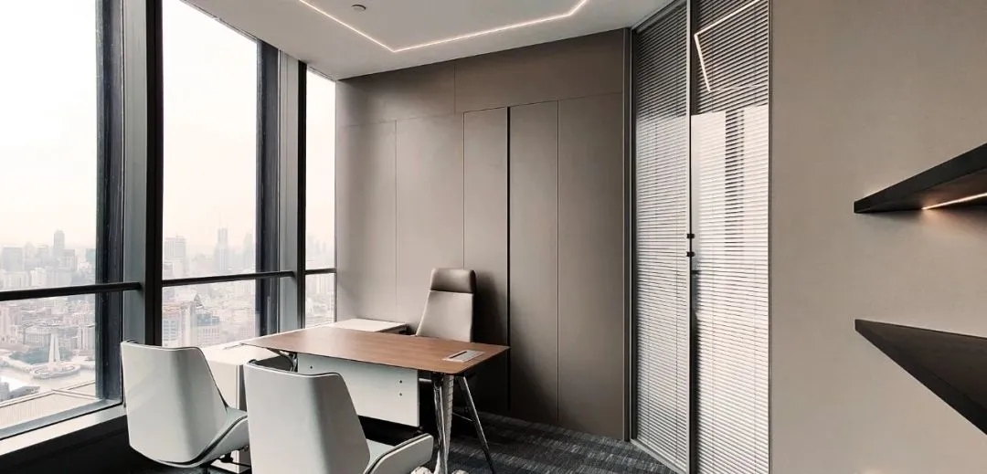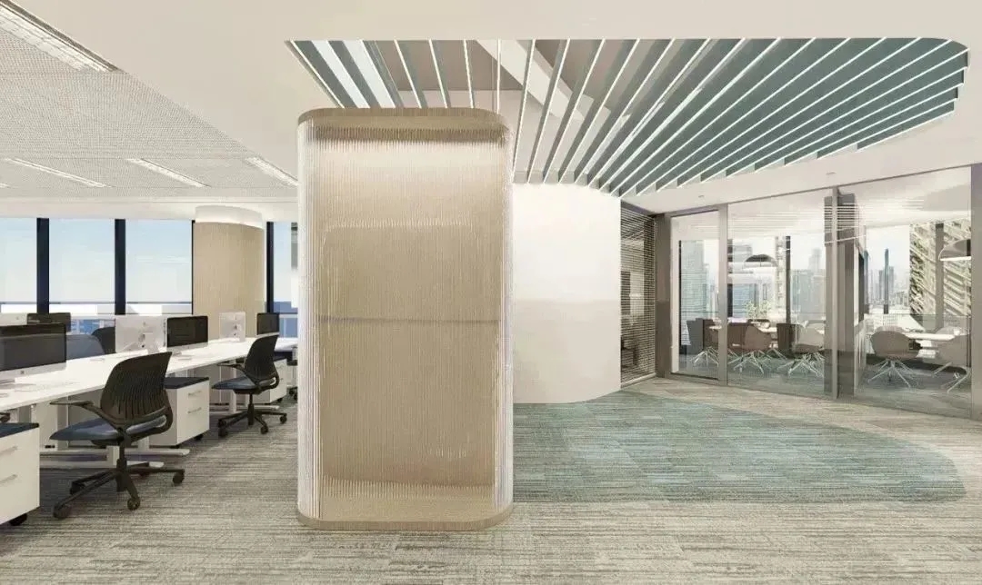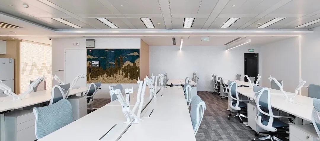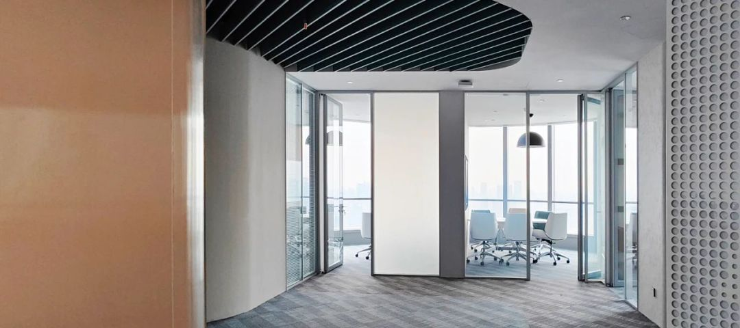 经过跟业主的多轮方案探讨沟通,最终决定项目改造以通透为导向,强调出科技金融的属性,并带有蓝色的业主个性色。整个办公区宽敞明亮、色彩统一,透过落地窗就可以看到风景,阳光和美景从外向内映射进来,融入空间中,在工作的繁忙之隙,也能舒缓一下心情。