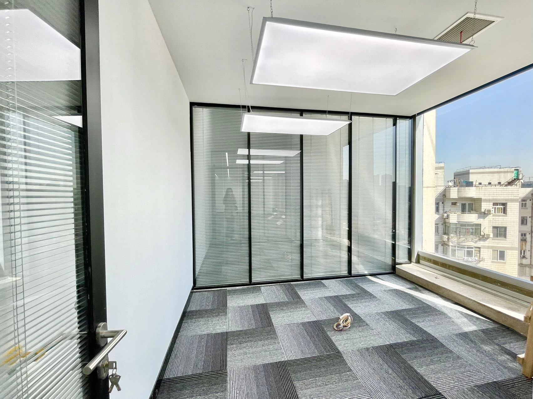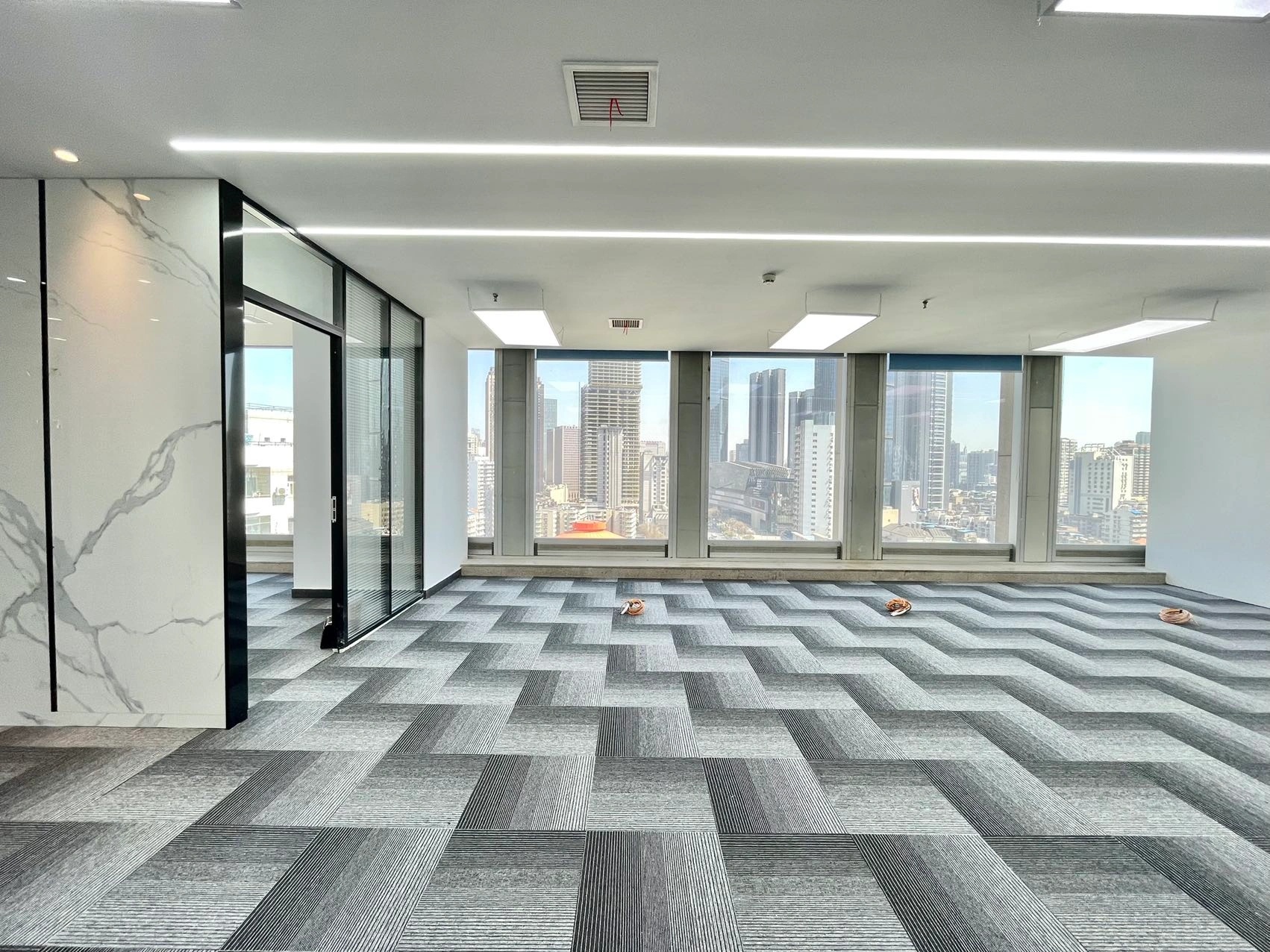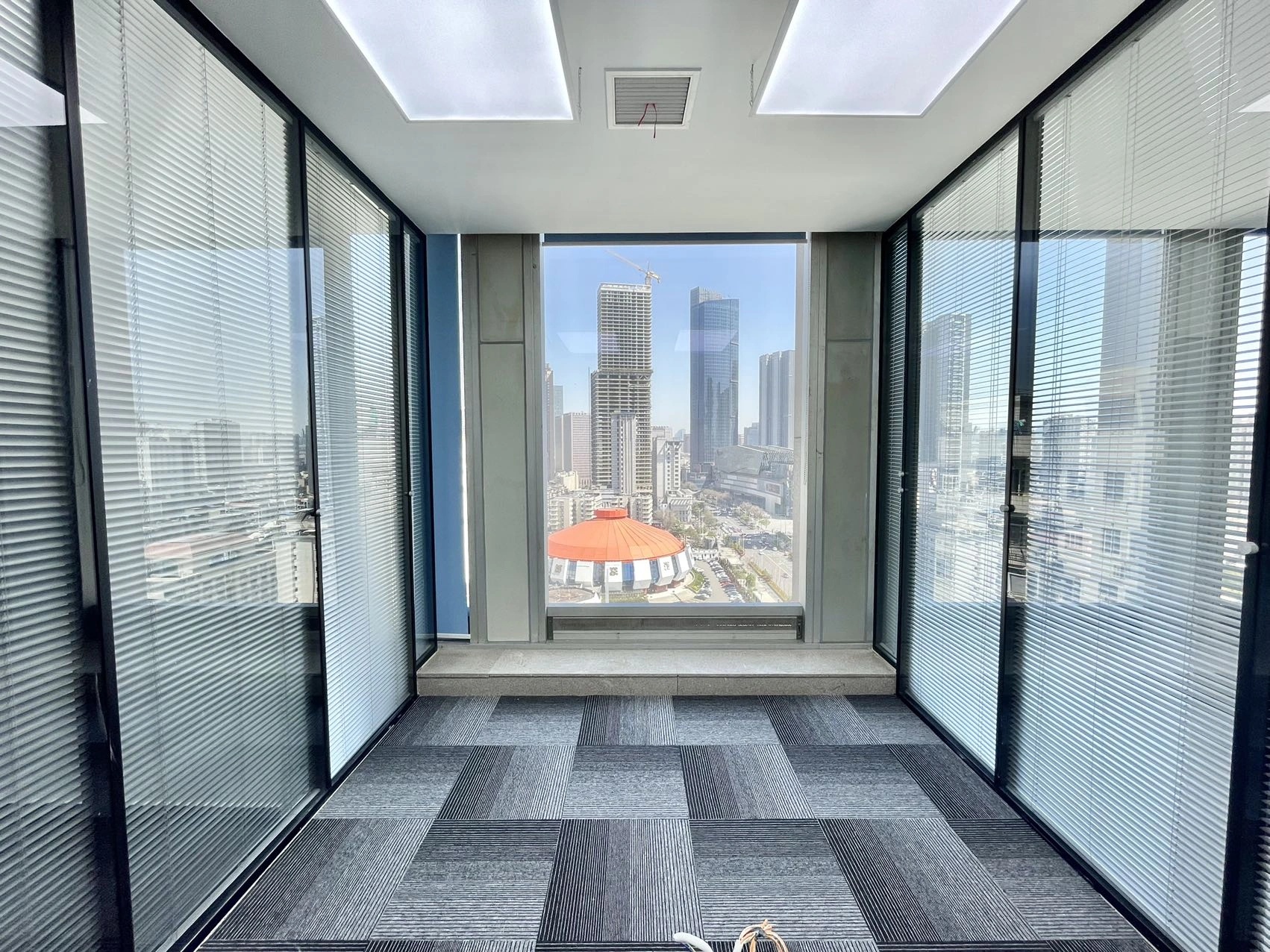 经过跟业主的多轮方案探讨沟通,最终决定项目改造以通透为导向,强调出科技金融的属性,并带有蓝色的业主个性色。整个办公区宽敞明亮、色彩统一,透过落地窗就可以看到风景,阳光和美景从外向内映射进来,融入空间中,在工作的繁忙之隙,也能舒缓一下心情。