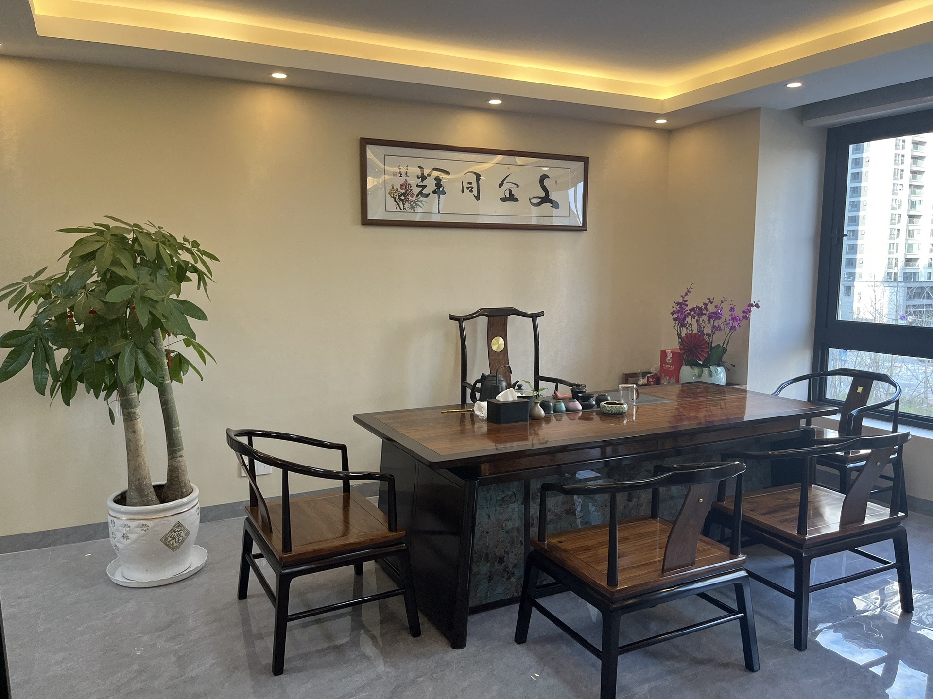 线型灯安装完成后开灯与不开灯效果
