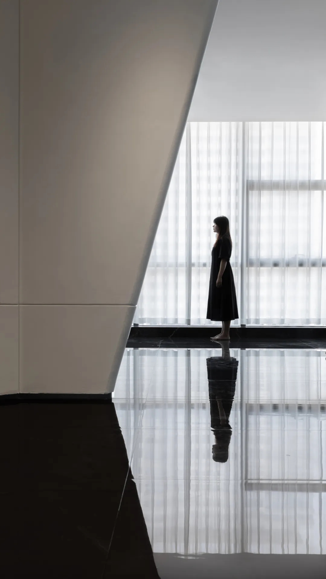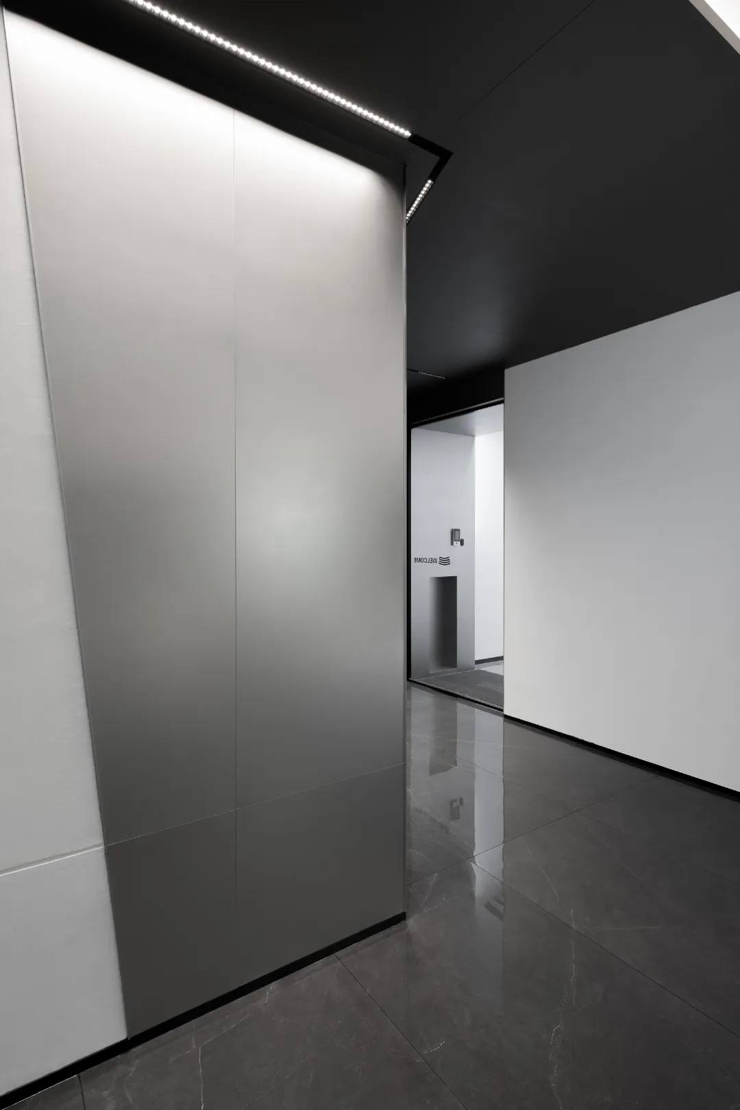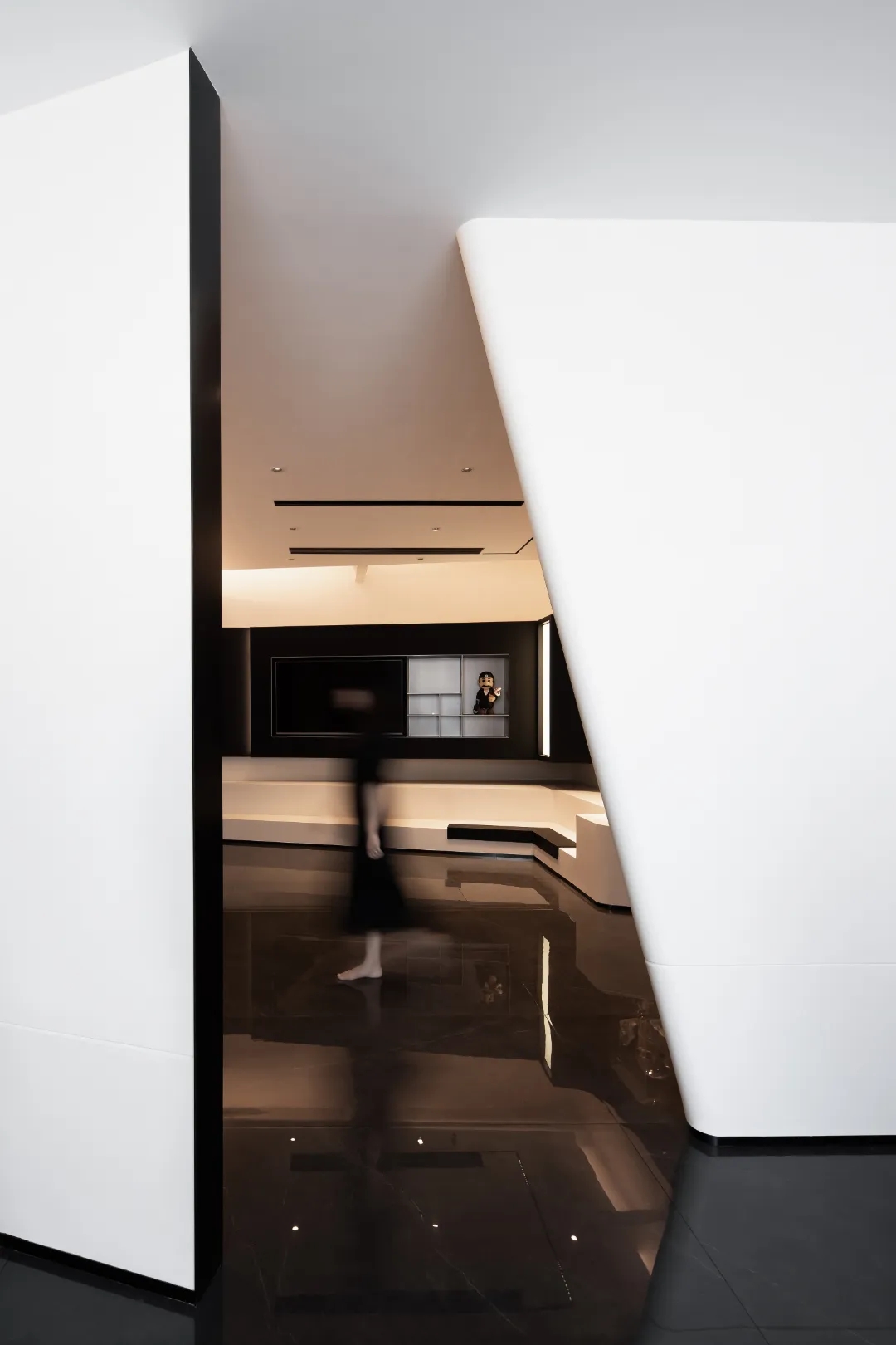整个空间划分成三个主体区域----沙龙区,工作区和城市会客厅 。每个区域在保有自己特定功能属性的同时 ,与其他区域产生功能场域的交互。通过立面的入口通道斜扩处理,将视线引导至沙龙区域——我们希望此处的salon,不仅方案讨论时设计师们可以在这里头脑风暴,闲暇休憩时也可以错落而坐来一局游戏;并且它还承载了产品推介会,社交沙龙的功能属性。沙龙区的一侧便是开放式的办公区,办公区非传统的入口轮廓也因循了我们对设计的态度----不被定义