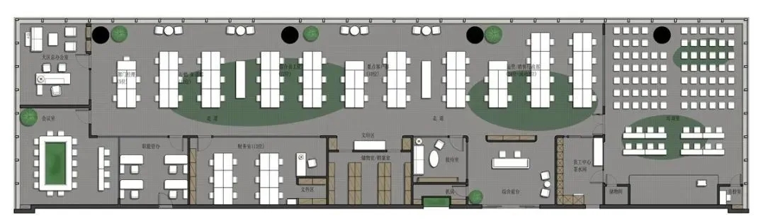 植物墙屏风隔断淡化室内空间的界线,并将延续到各功能区域之间的划分,从而营造轻松自在、生机盎然的体验。