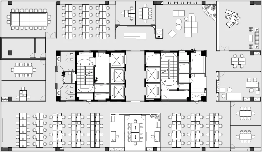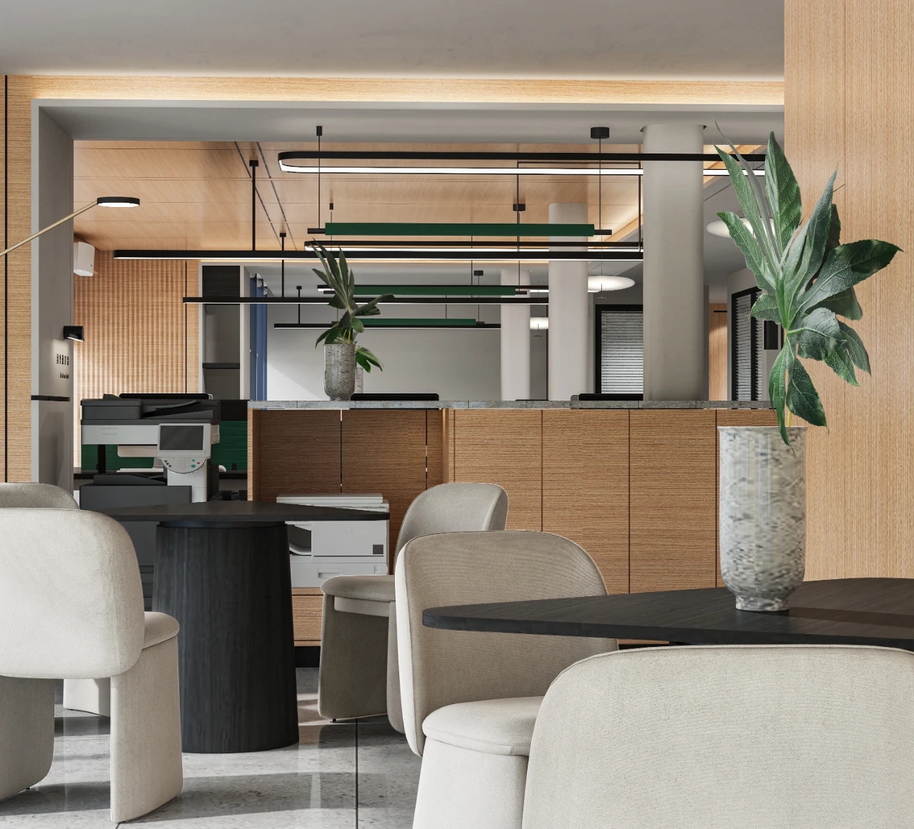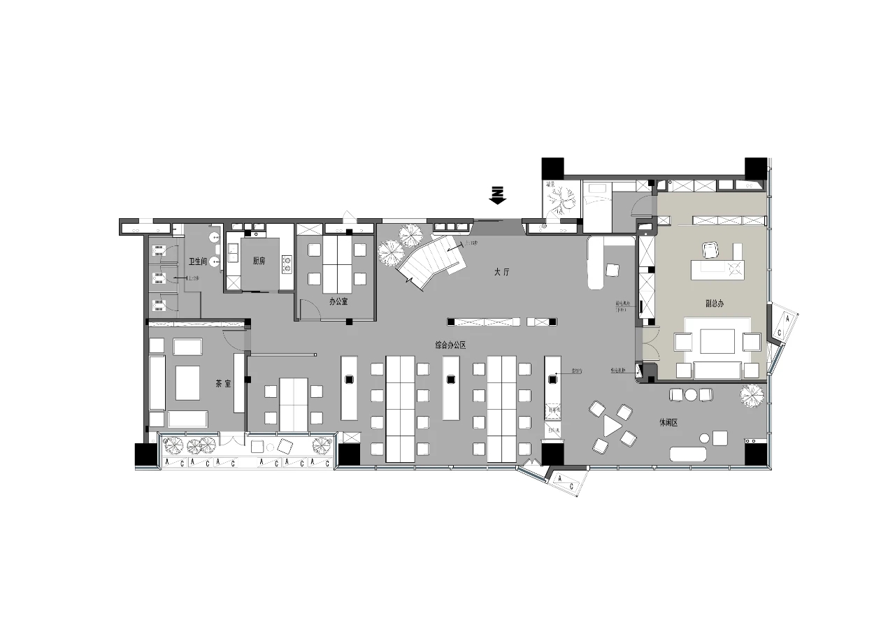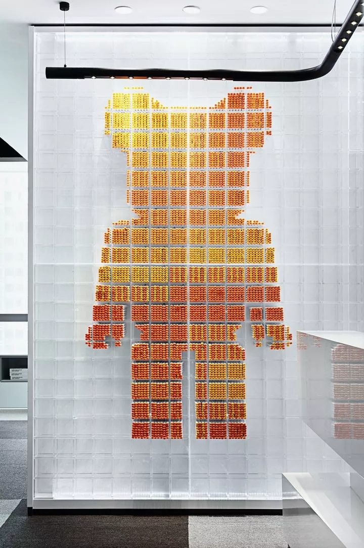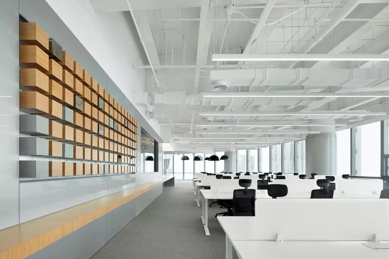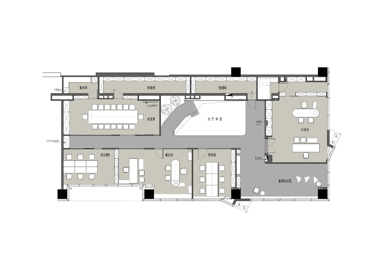 设计师将这个空间设想、定义为一个小型的,资本不厚,务求节约但又好用,人数控制在二十人以内的常规的小型文创类工作室。利用“某某熊”造型和变化的橙色为设计中调节空间氛围的元素,以大面积的白通过形态的不同在灯光下形成多元层次,辅以细微变化的深灰,建立空间秩序。