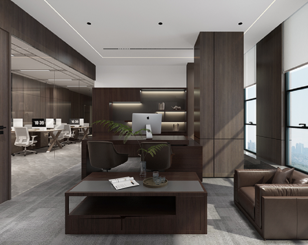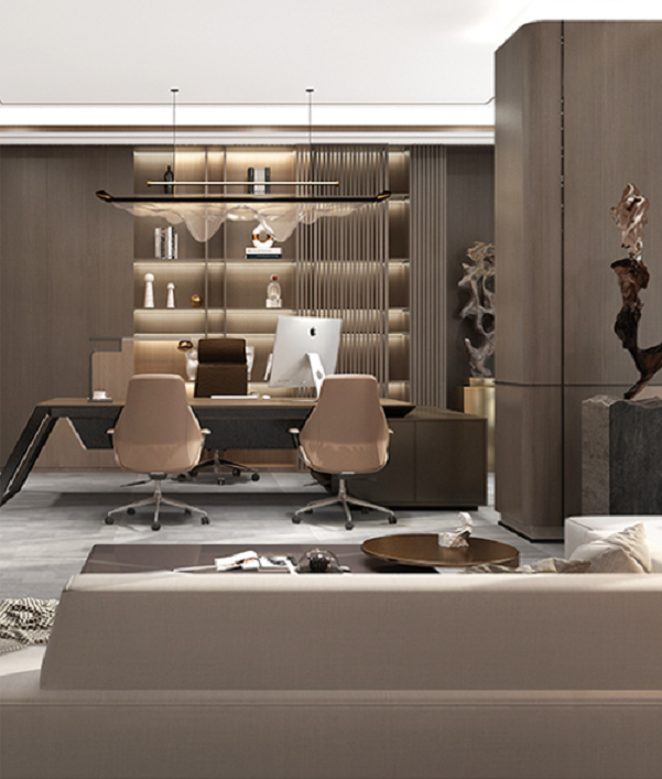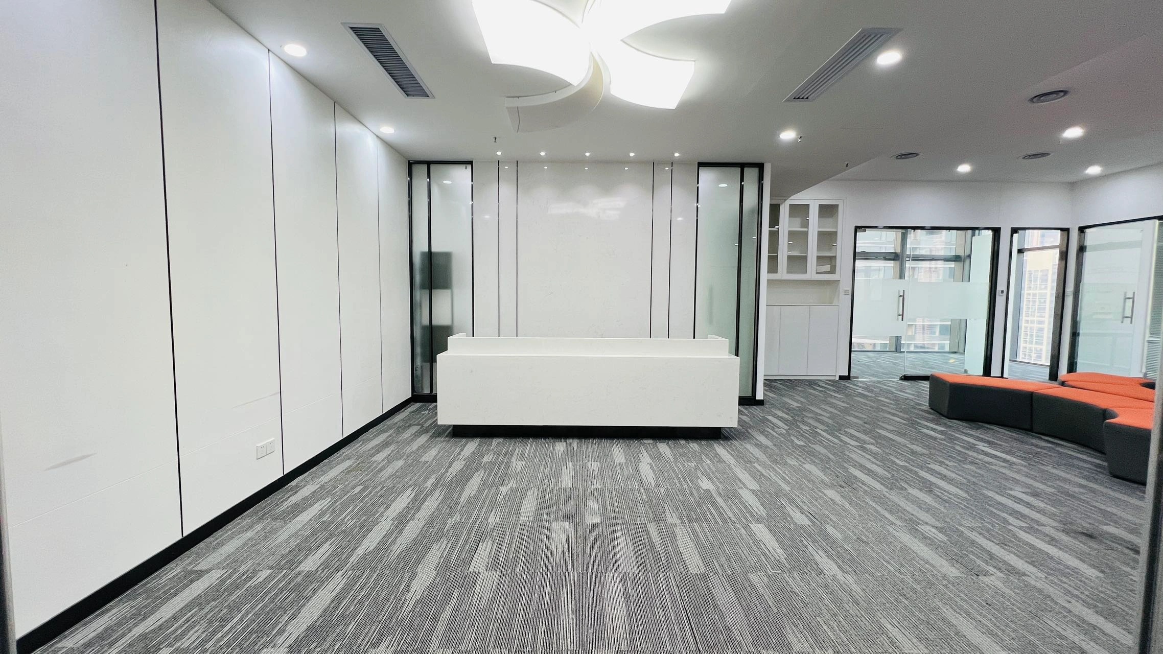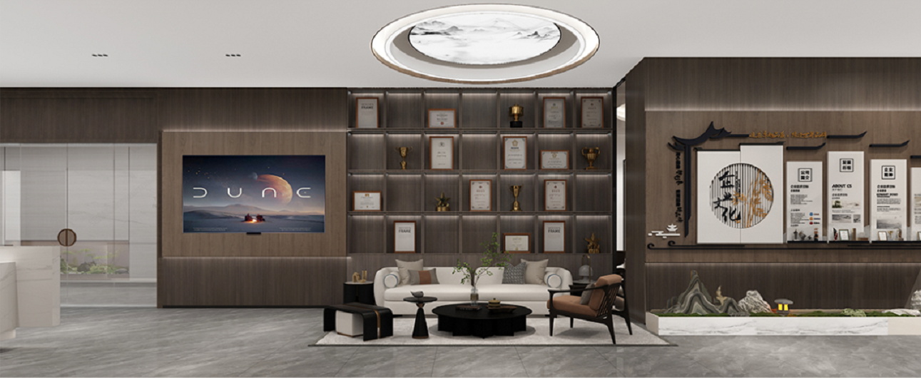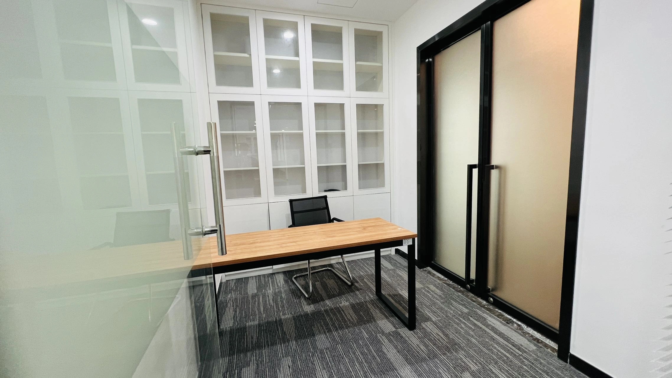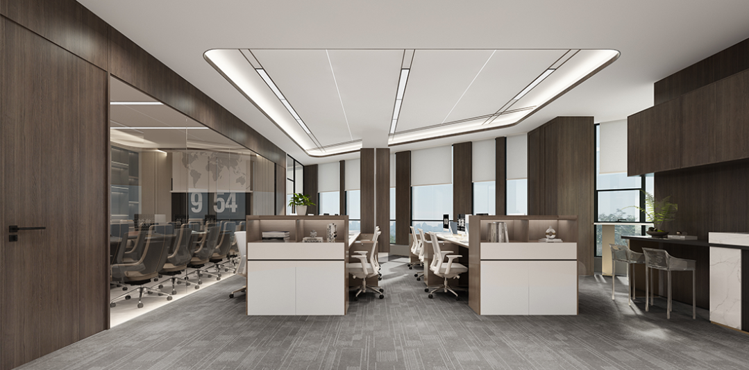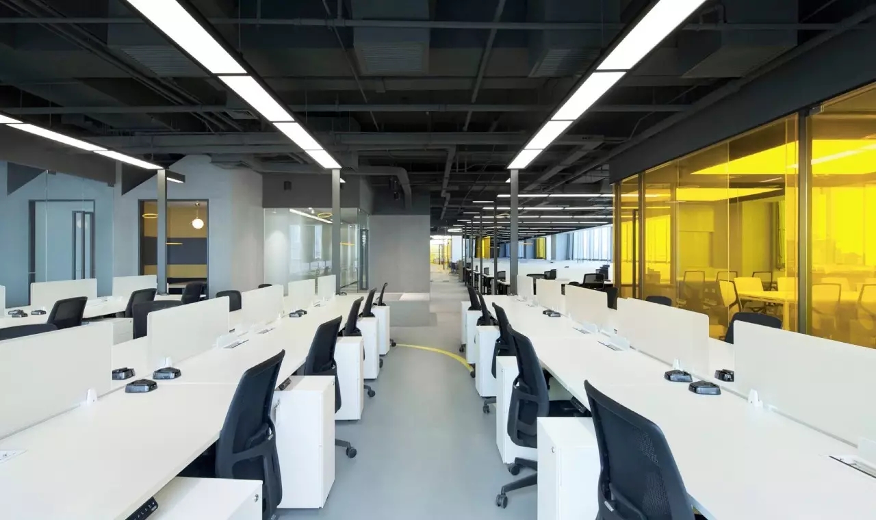 混凝土自流平地面的极简主义风格被强烈并带有冲突感的黄色图案及线条所打破,仿佛马路上一道道的交通警示线般栩栩如生。以黑白灰作为设计的主题色外,作为公司品牌色的黄色亦被广泛的运用在整个办公空间的不同区域,黄色储物架、边框及夹胶玻璃等;不仅为办公环境增添了一抹活力与生机,亦将企业本身乐观活泼、充满激情的文化精神潜移默化的渗入至其办公环境中,浑然天成,不言而喻。