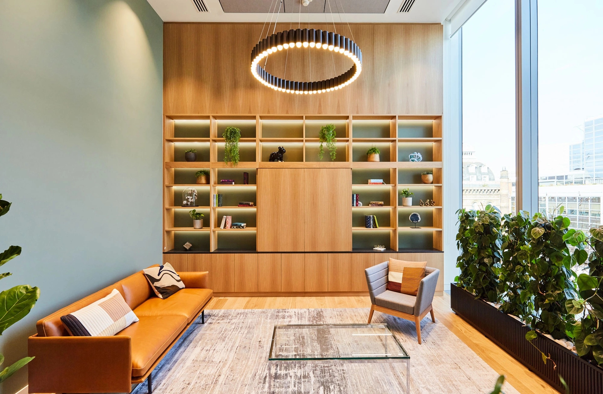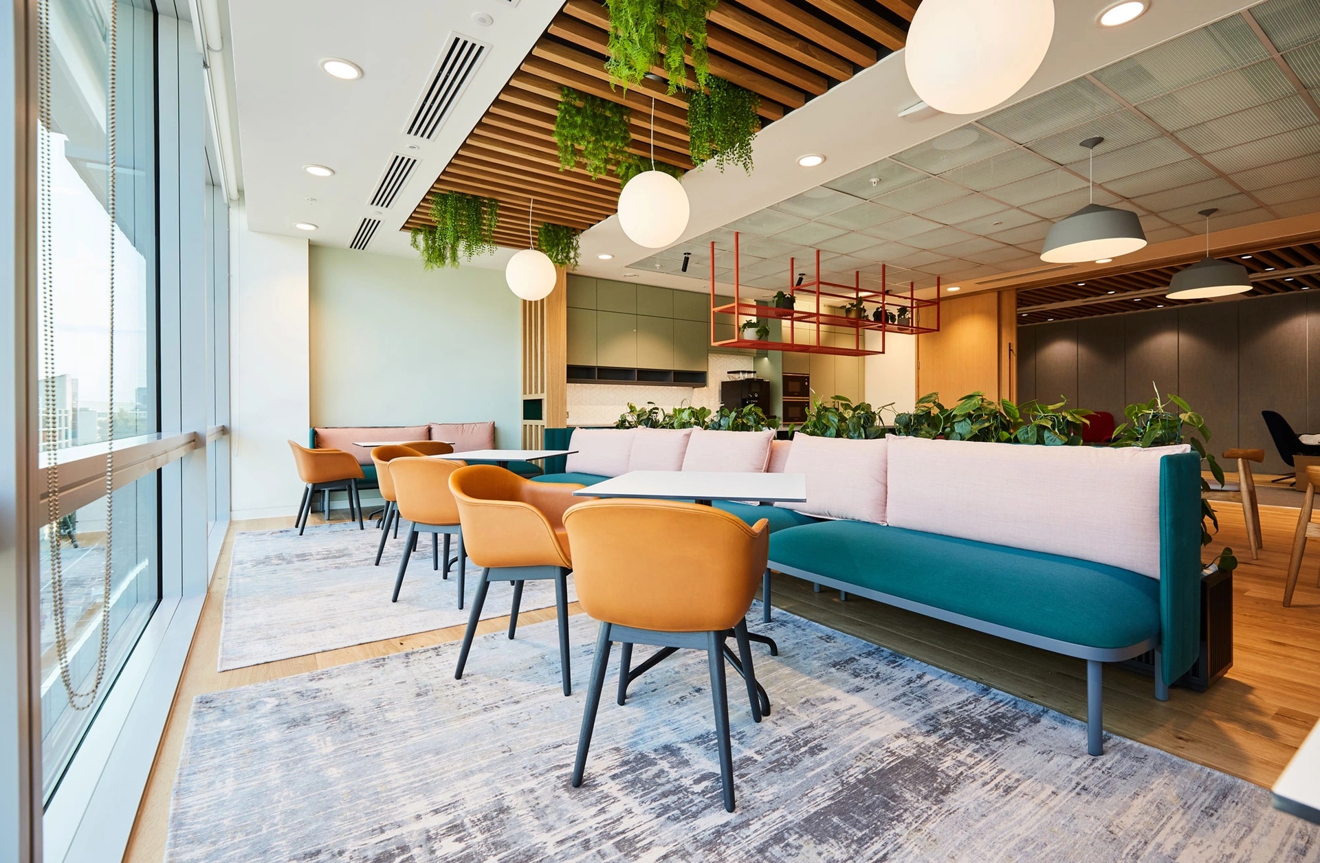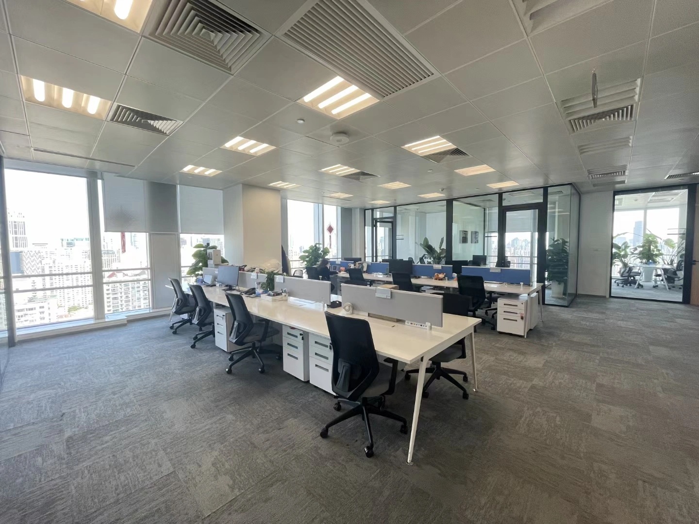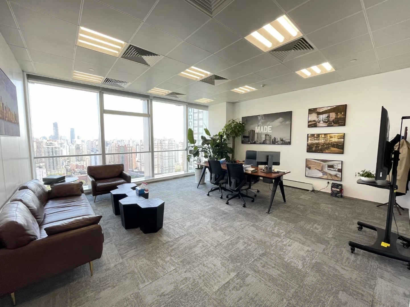 大厅以对称布置,具有强烈的仪式感和尊贵感。6米高的红酒柜和围合的玻璃屏风贯通一层和夹层,屏风图案为张大千表现重庆的泼墨青绿山水,笔墨间将当地的自然、文化特色融入极简的设计手法,进而生成大隐于市、隐于画境的现代空间。似静若动的落花吊灯在半开放空间内云影光驳,波光潋滟的流水地毯如时间在当下空间流动渗透。“宠辱不惊,看庭前花开花落;去留无意,望天空云卷云舒”设计师在装饰色彩上呼应张大千的青绿之美,光影流动间映照出山岚云雾、云水飞动的山城气韵。