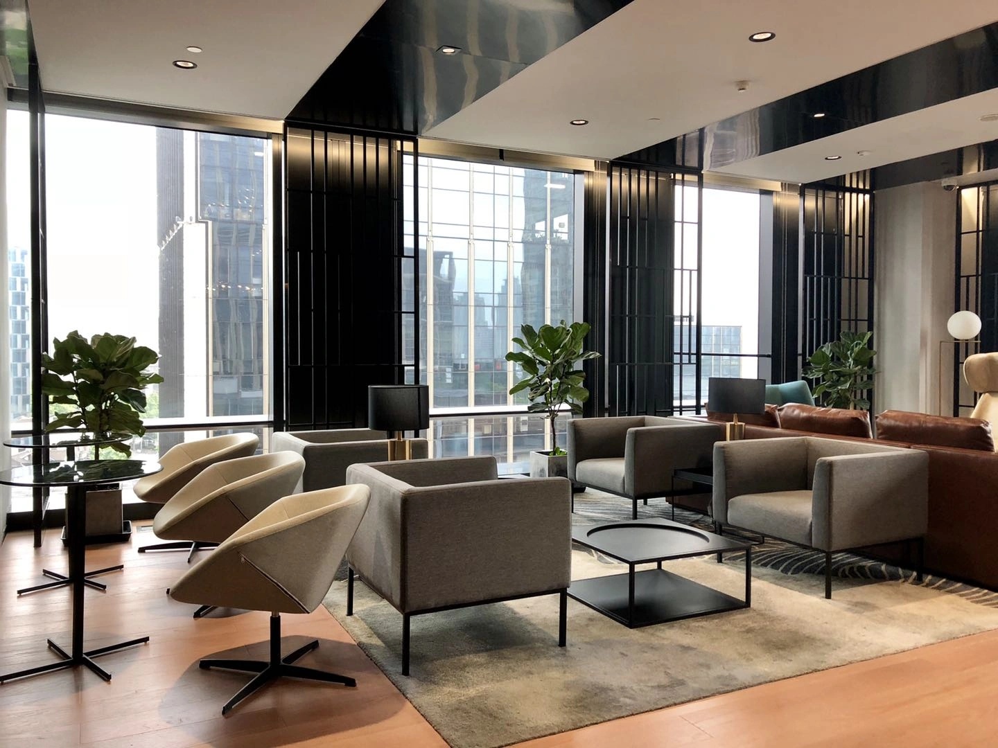 相较于传统的前厅,设计营造了一个更为灵活开放的交流场所,弱化迎宾及接待的功能,提供了一个可以啜饮咖啡的放松的环境,使其成为让员工汇聚在一起,具有氛围感的协作空间。