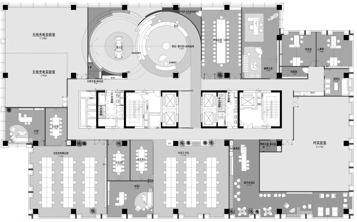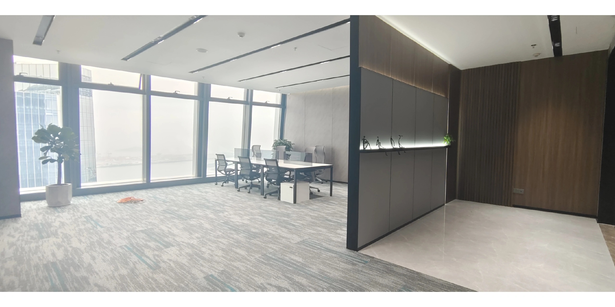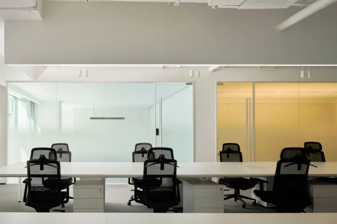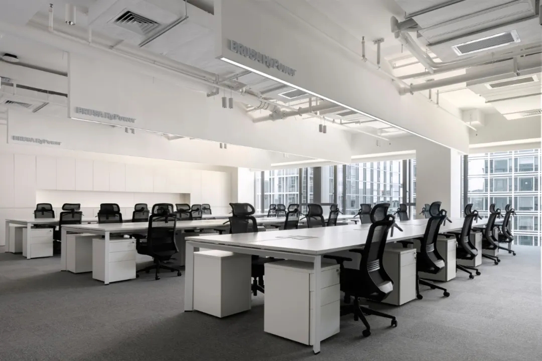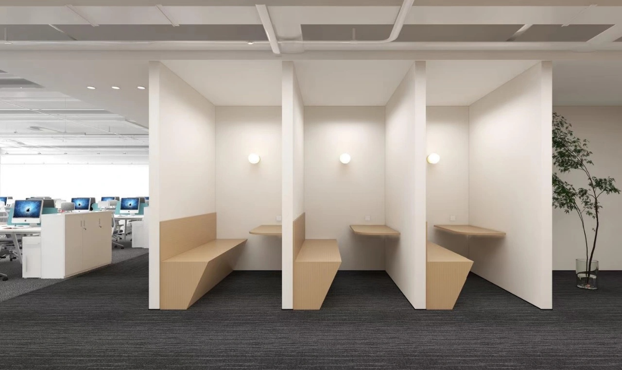 围绕企业核心理念,秉承节能减排,绿色环保理念并遵循轻装修轻装饰的原则,整体空间以黑白灰为基调,使用环保乳胶漆铺装整体空间,地面使用地胶及地毯材料,极力争取减少材料品类的使用,同时又能响应国家号召的“双碳”目标。