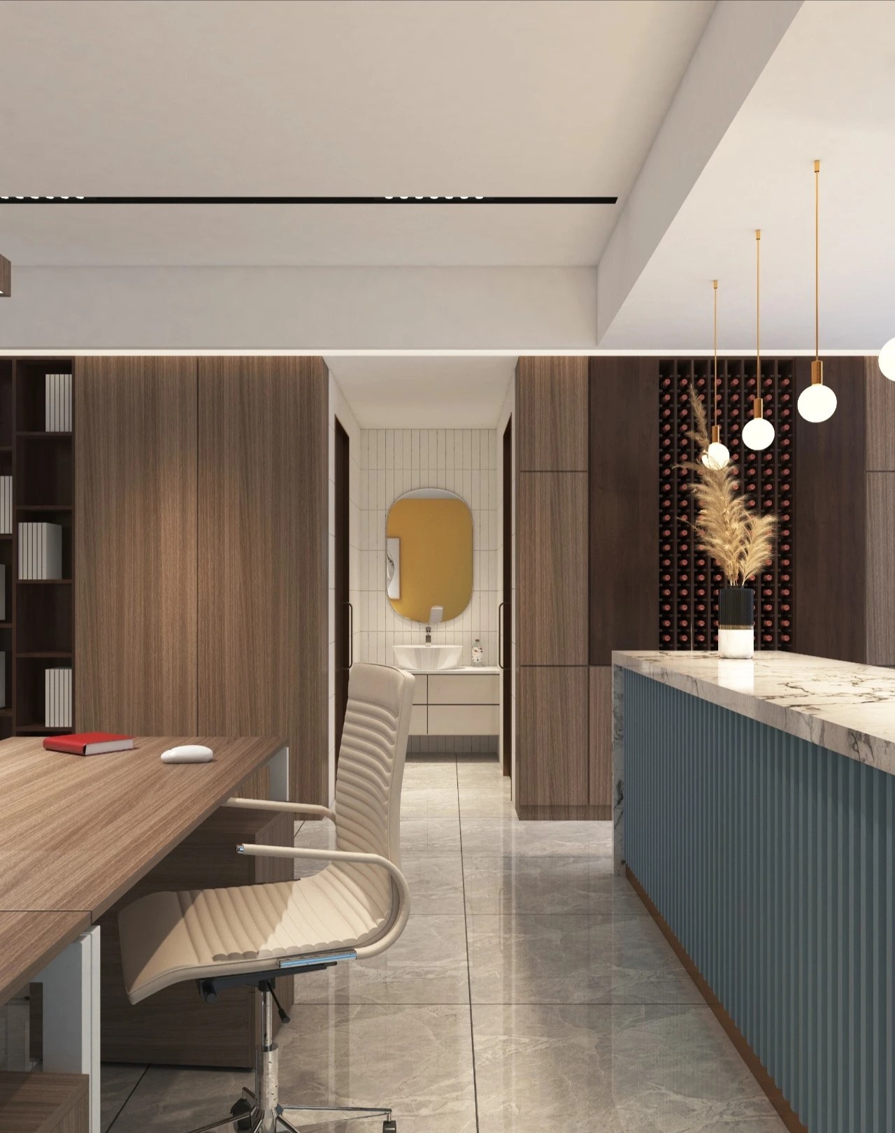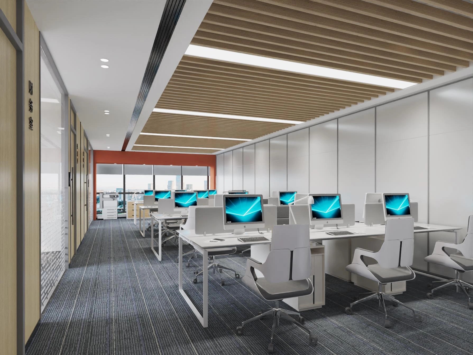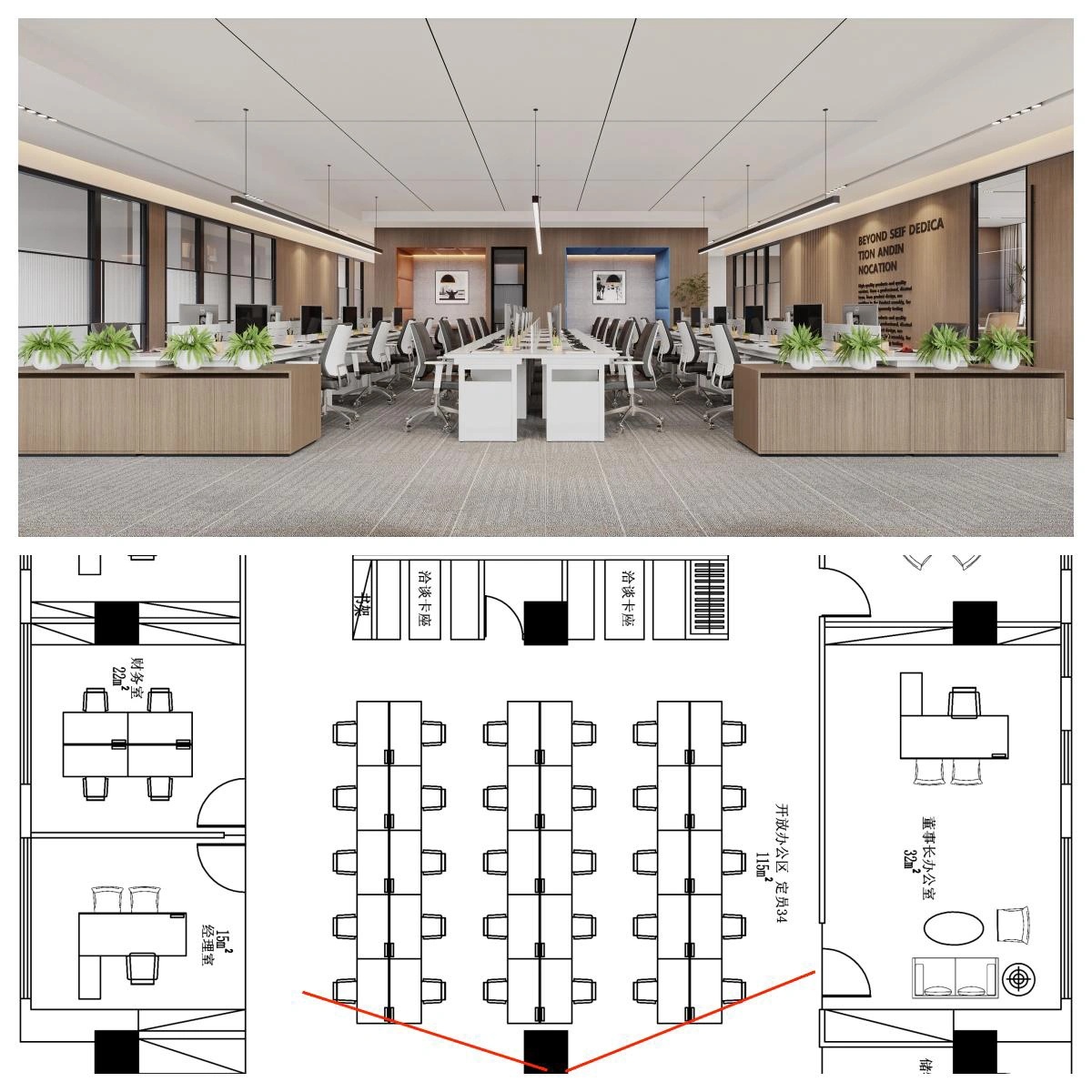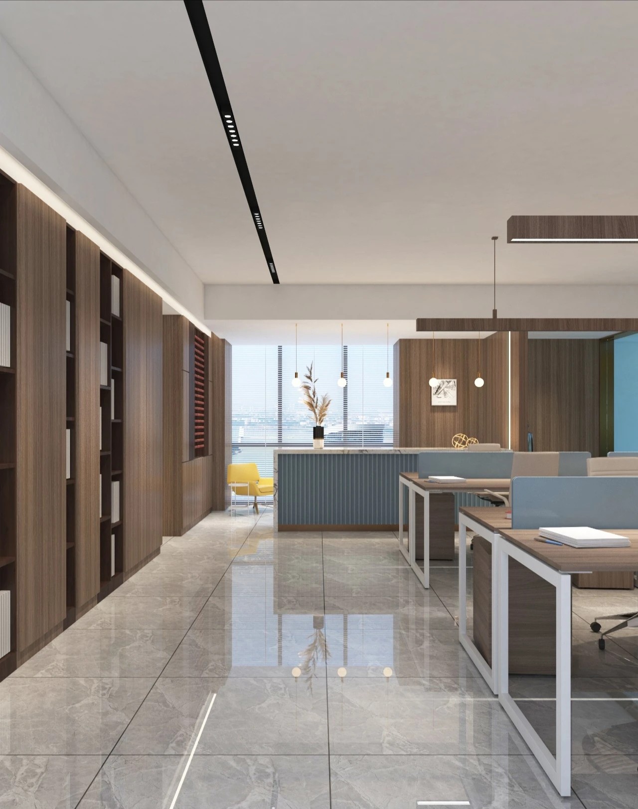 开放式的办公空间重塑传统的工作日常:开阔区域进行集中讨论,围合的空间创造偶遇与快速协作,格子会议空间以便集中精力、促发深度思考,更精准地把握高效办公的刚需与日常心理感官的平衡。墙布墙体产生的隔断感温和有力、收放自如,自然的空间形态遵循理性有序的设计法则,从而让整个空间有了延长性、艺术性,工整有序,流畅而舒适。大面积玻璃代替厚重墙体,轻薄的线条边框隐匿其中,空间与工作发生紧密而富有无尽创造力的未来。区别于一味的全开放式办公,设计师针对不同办公区的功能属性和人员特点,赋予不同场的办公环境。公共区、会议区、半开放式办公区等多元用途布局自由灵活、松紧错落,梳理多元有序的办公状态。