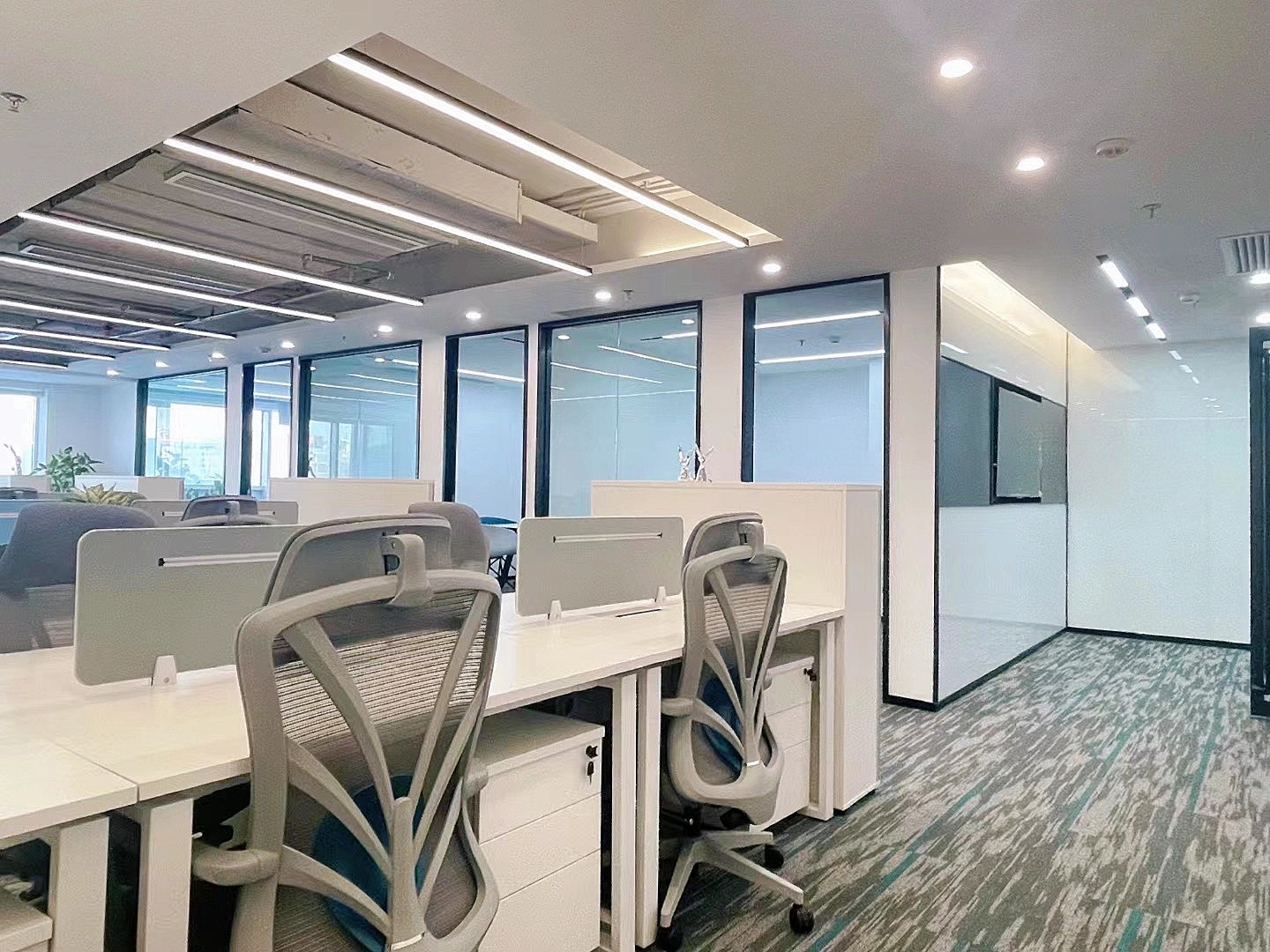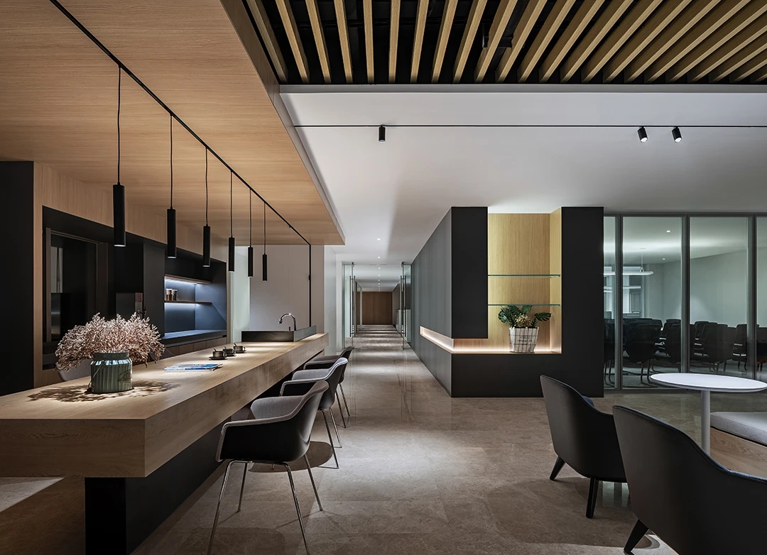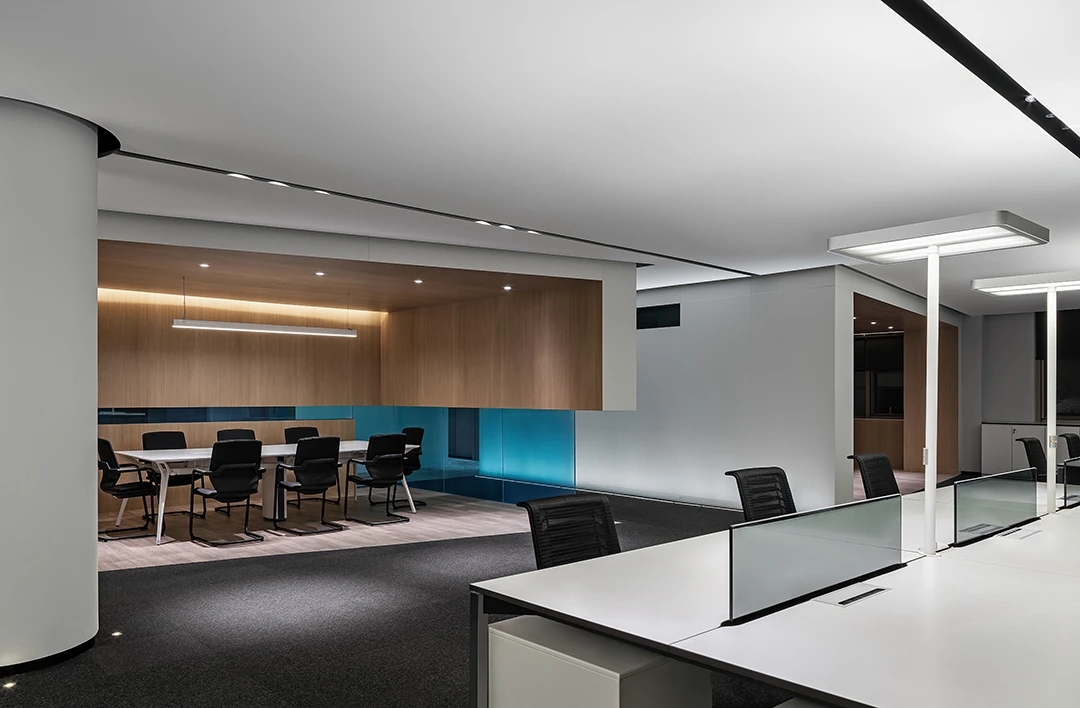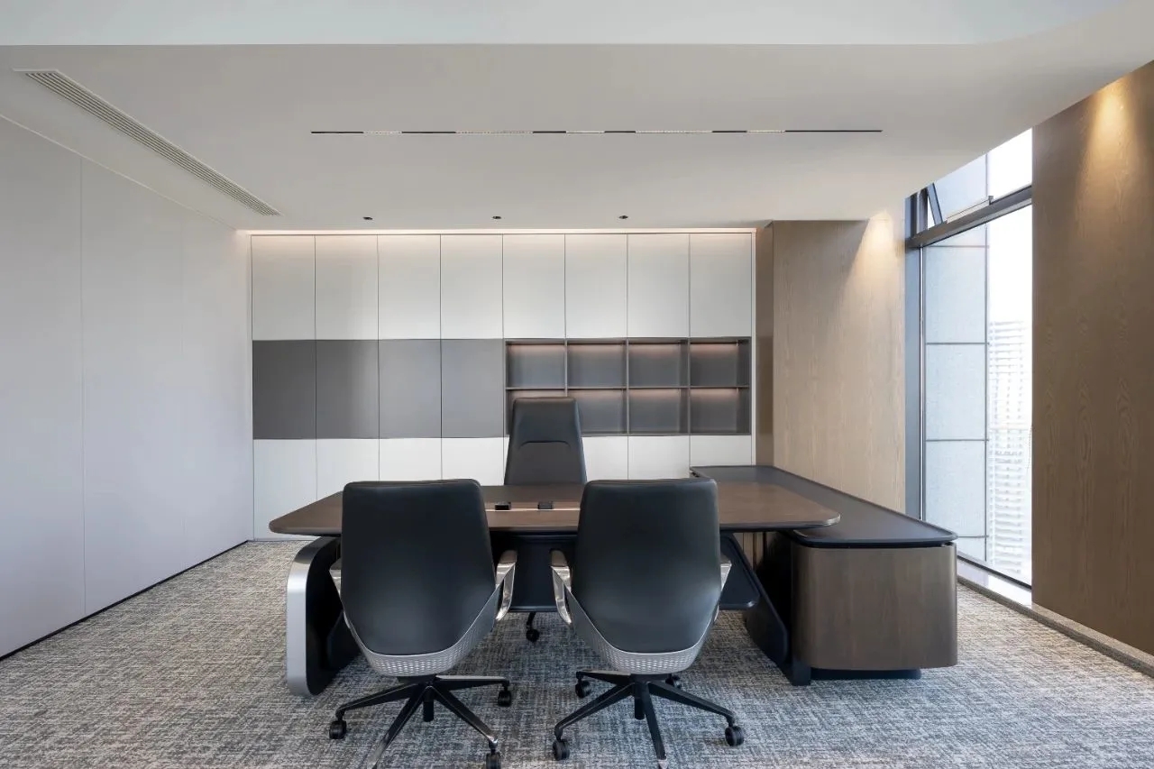 科技办公桌椅与沉稳气质软装构成满足高级管理会议、高层对外待客、个人工作站等一体的办公空间,从实际需求出发,平衡空间整体效果,把握办公痛点,将设计理念贯彻在方案与服务中。