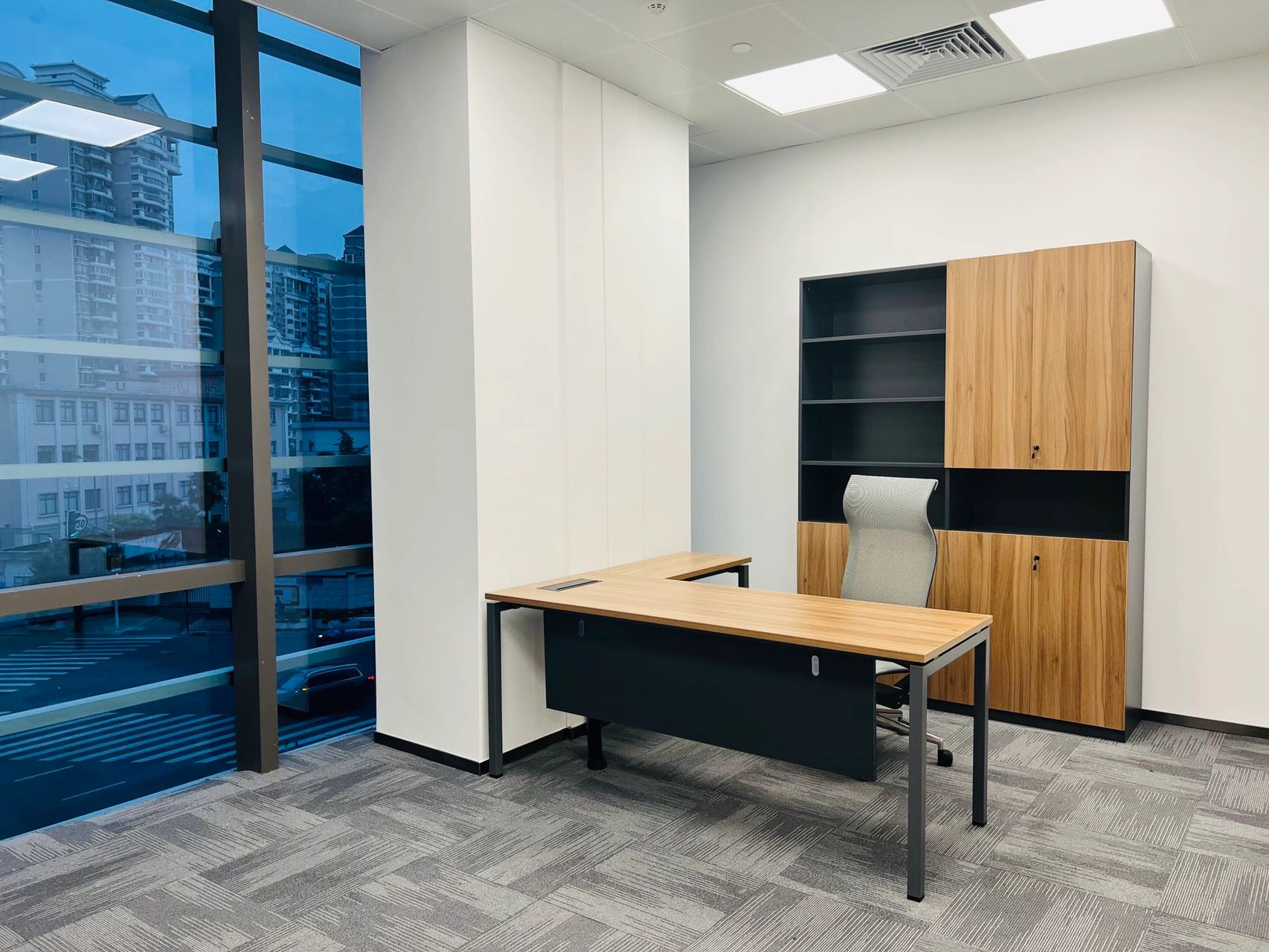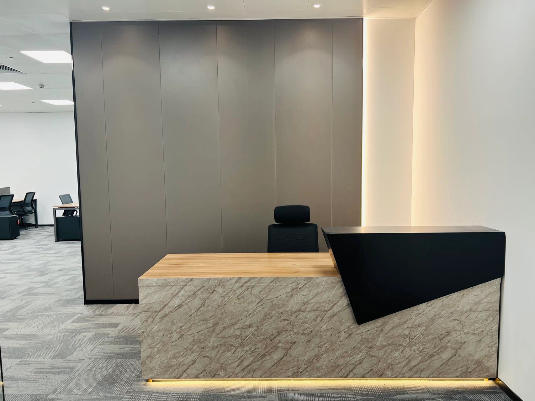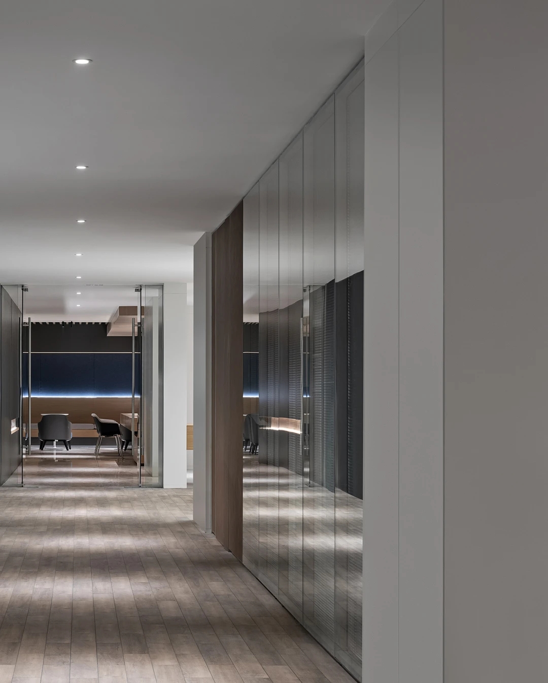 科技办公桌椅与沉稳气质软装构成满足高级管理会议、高层对外待客、个人工作站等一体的办公空间,从实际需求出发,平衡空间整体效果,把握办公痛点,将设计理念贯彻在方案与服务中。