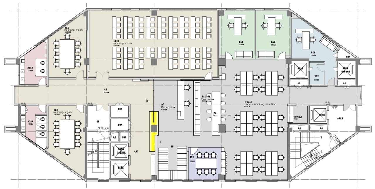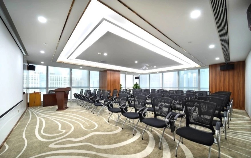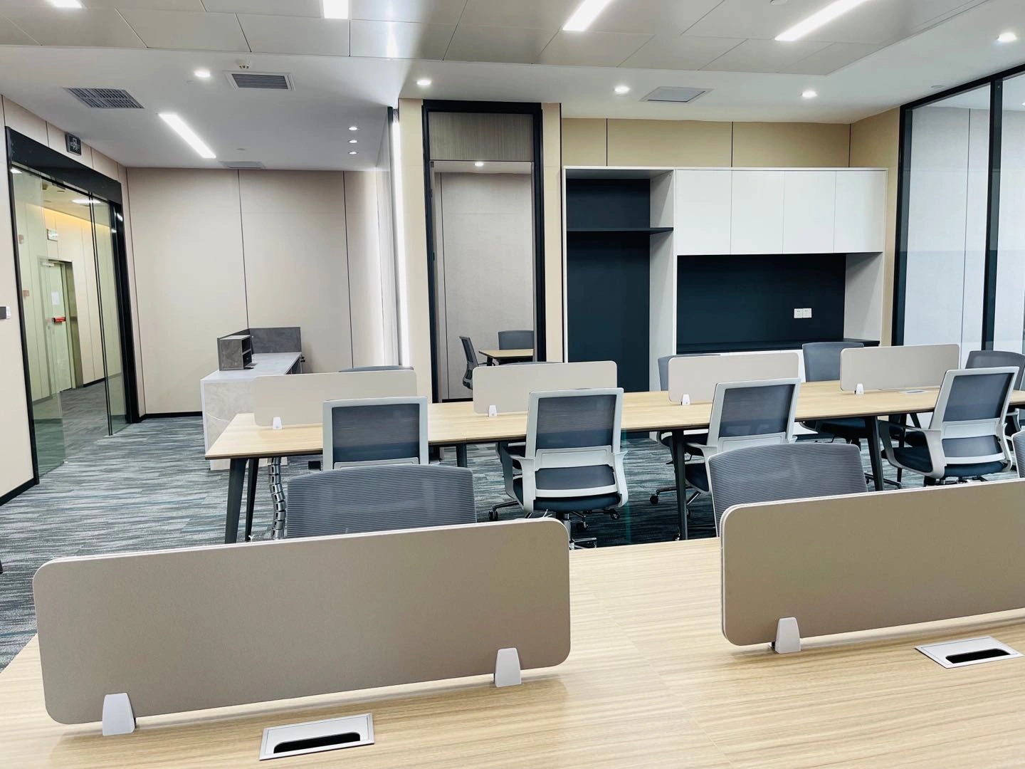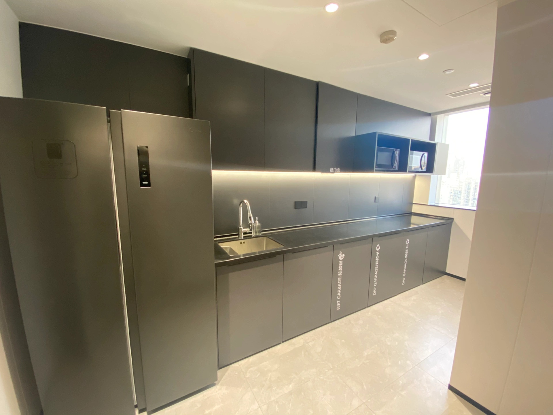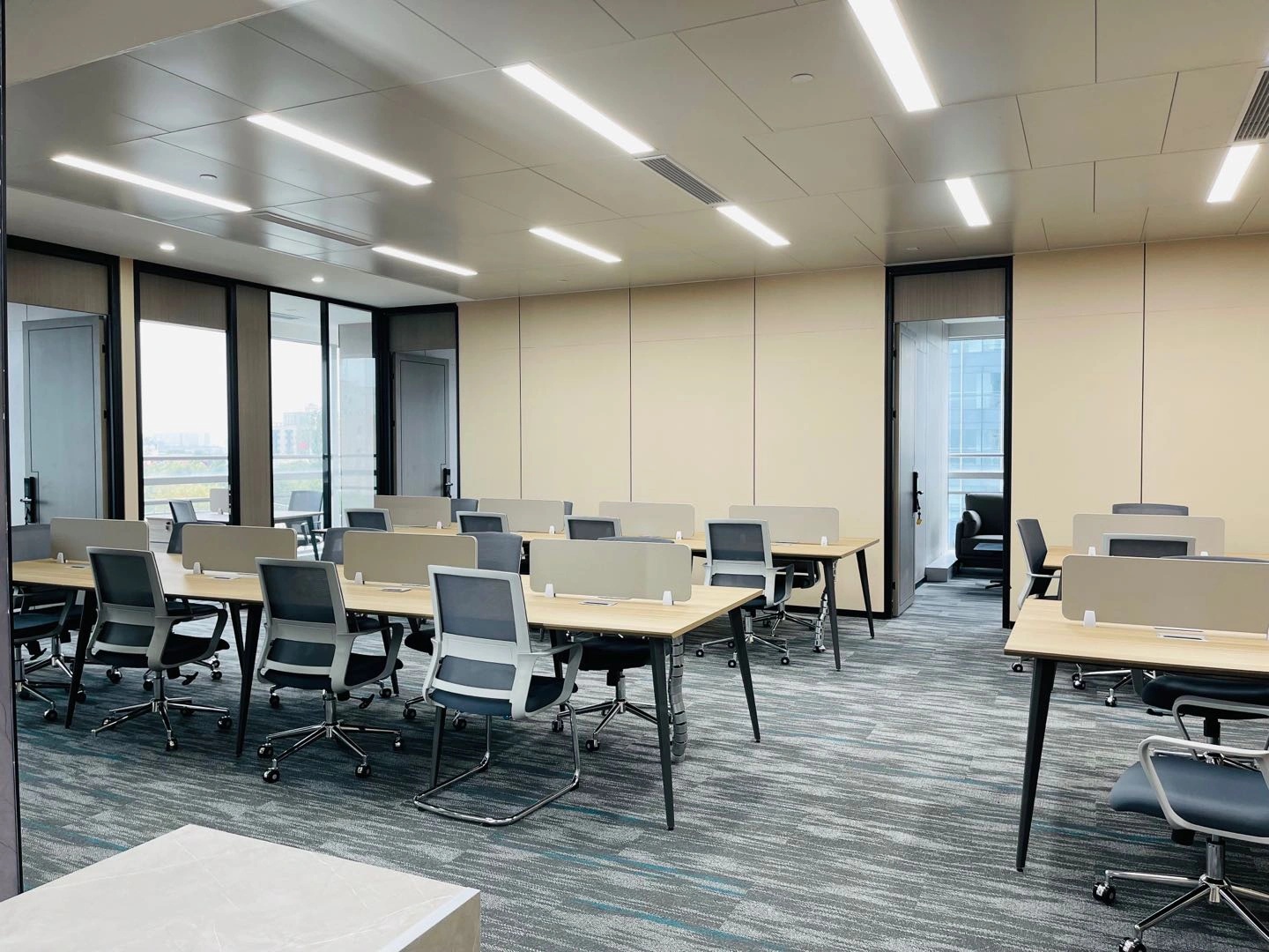 空间的流转如同一瞬转场特效光点矩阵的数列分布一线天地分割办公休闲彼此交接而隔断灰度空间与温柔木色的拼接中和坚硬与柔软打造舒适办公体验