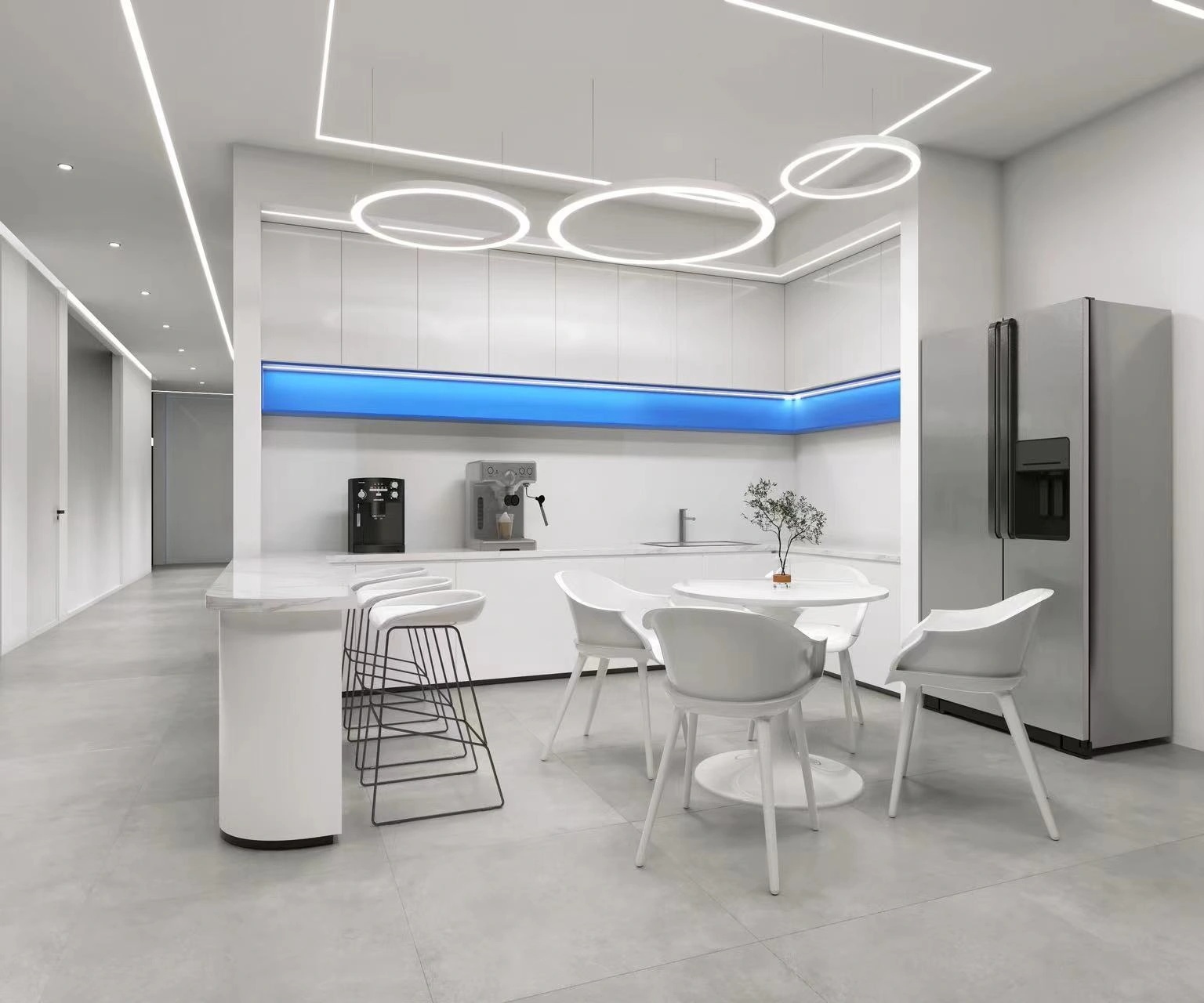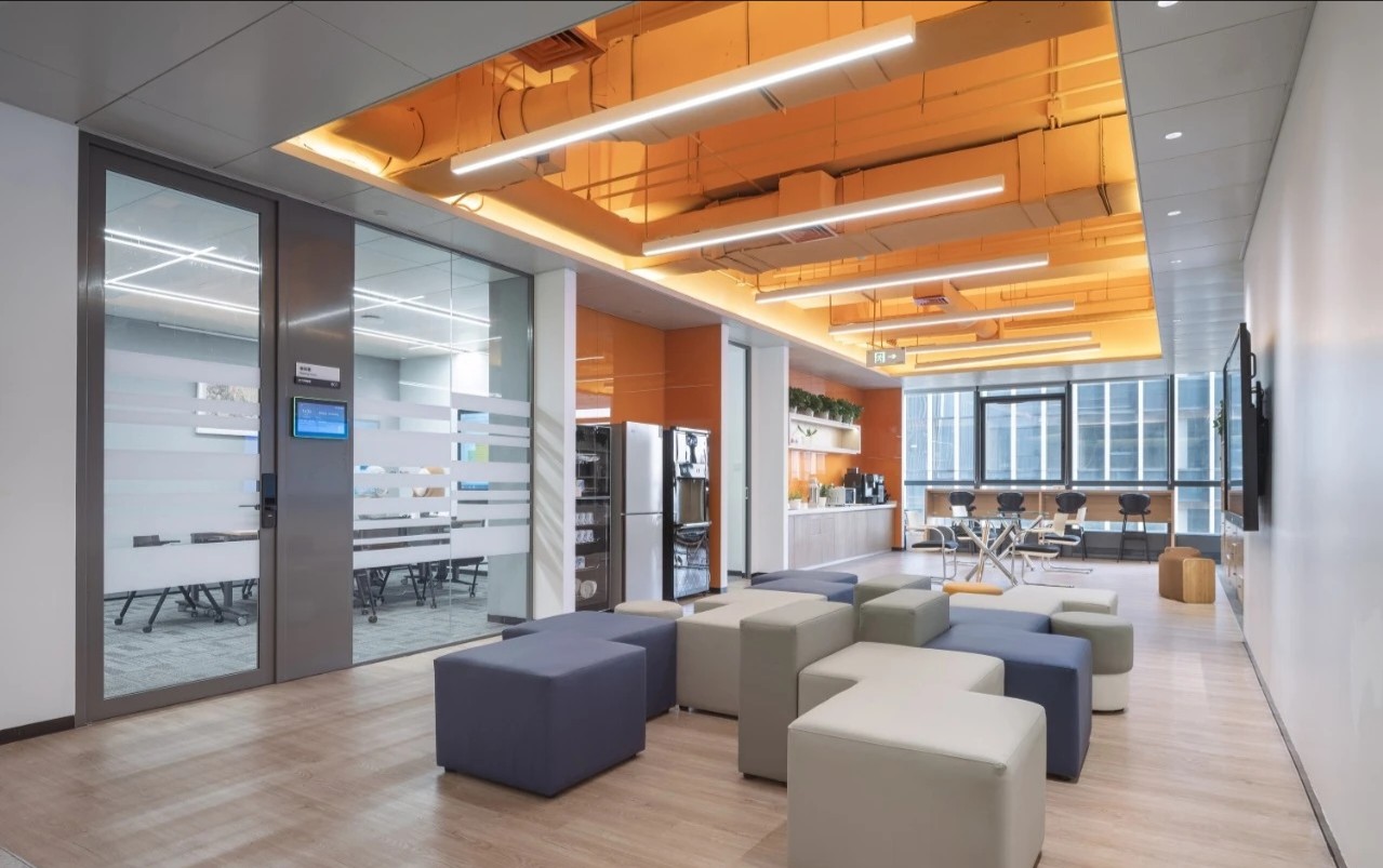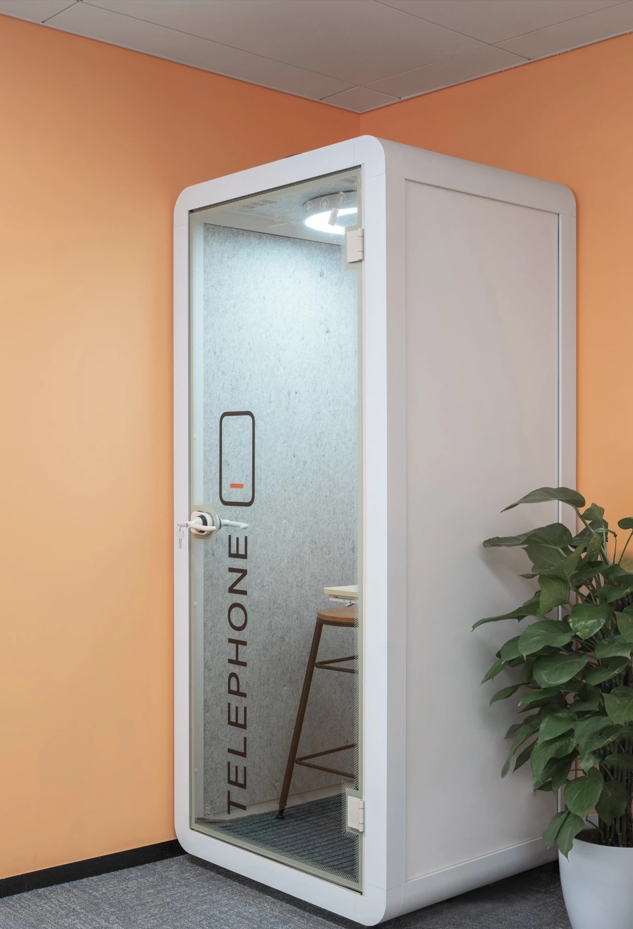 电话亭,隔音降噪,便捷可移动,是营造安静的开放式办公环境的灵活驿站,也是专属个人办公的静谧思考空间。不同规模的会议空间满足不同的需求。大会议室配备智能化设备,满足远程会议,或内部员工培训等需求,小会议室满足小型讨论会或者站立办公需求。