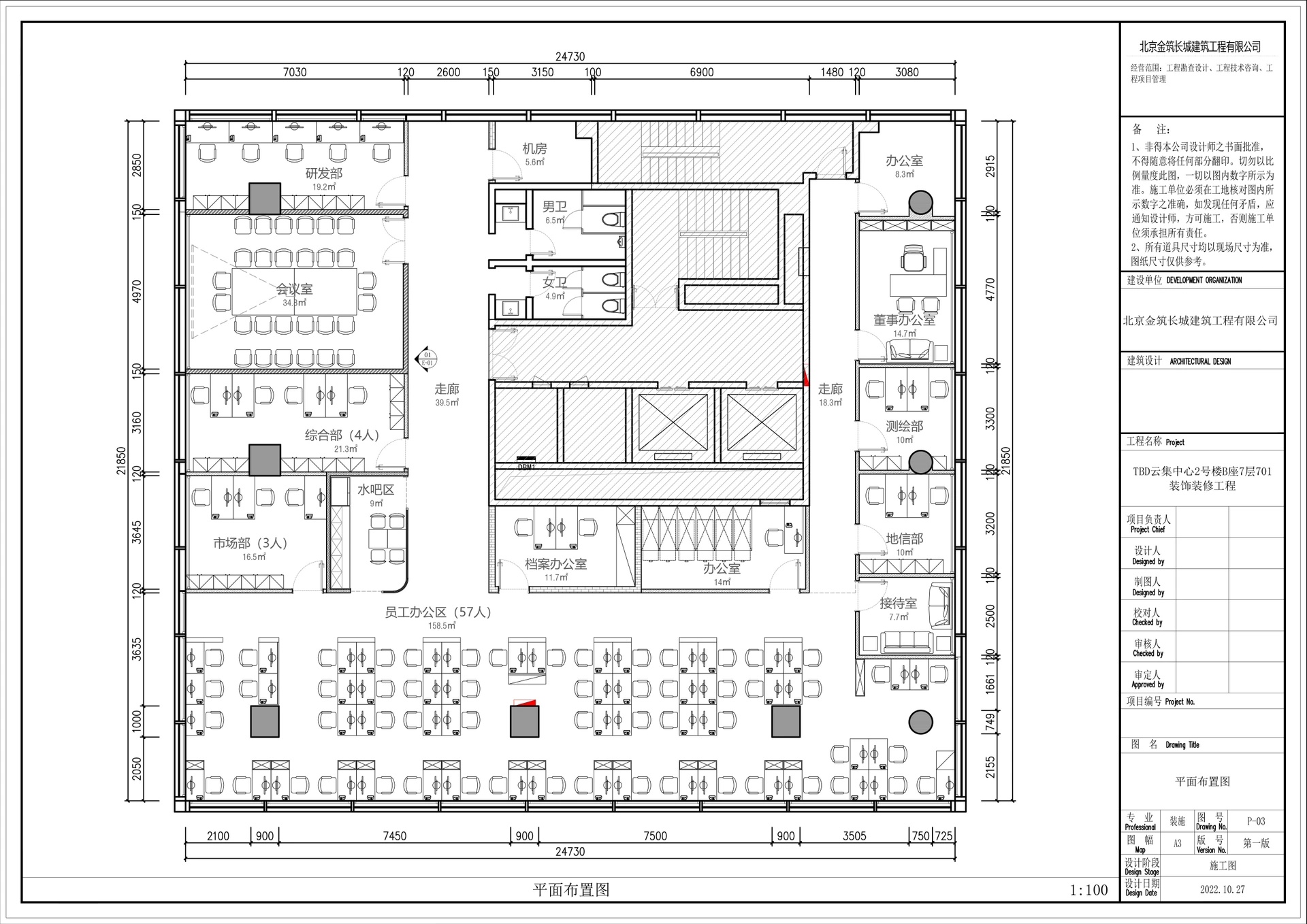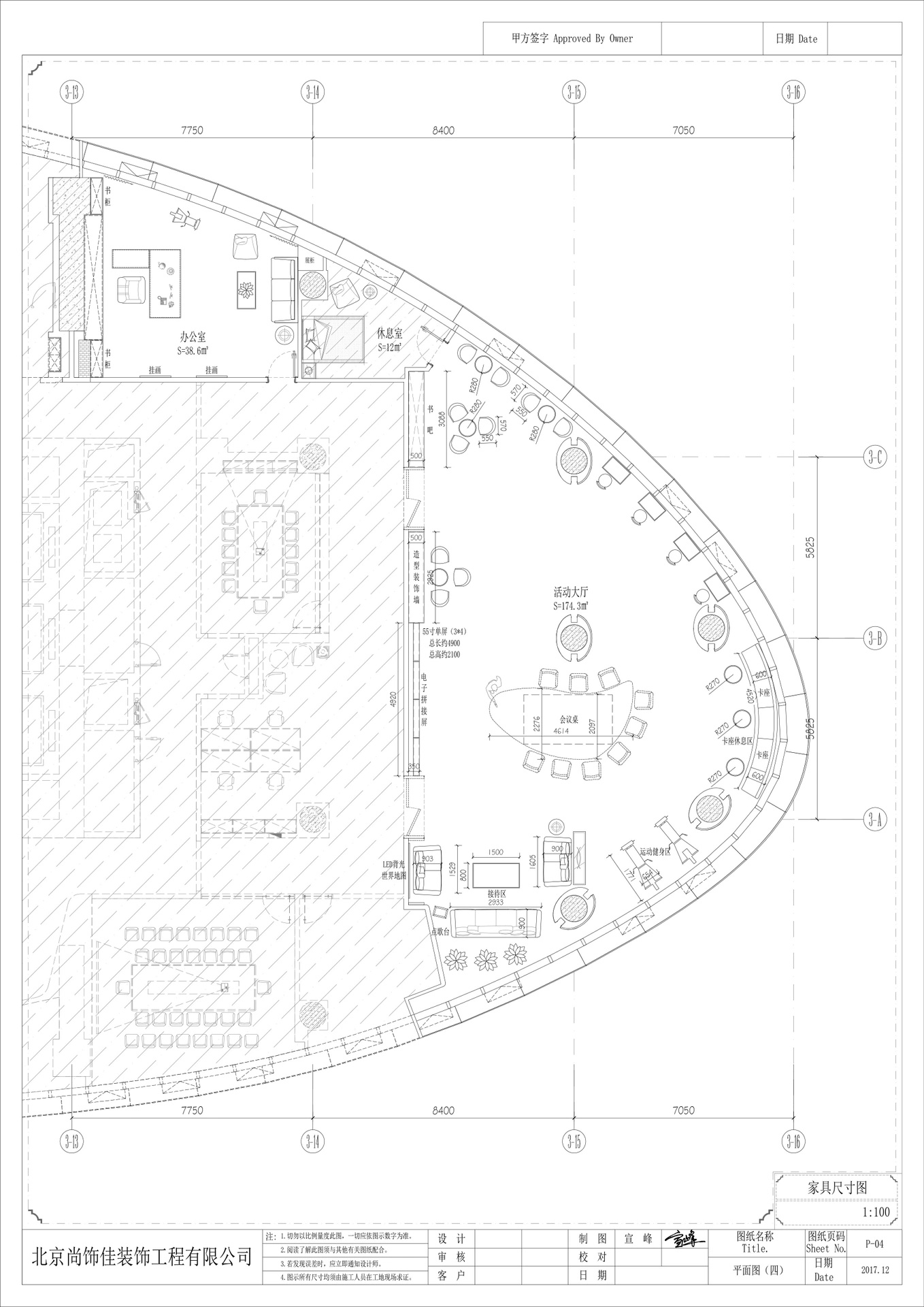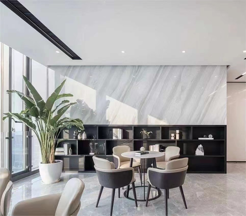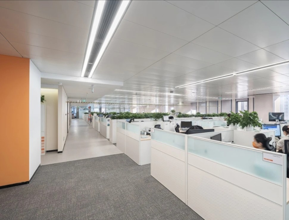 开放式办公区域,采用岛台式方式布置桌椅,同时考虑人体工程学及办公空间的生态环境,计算出一定的距离,设置节点空间。