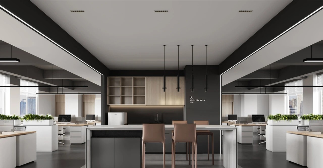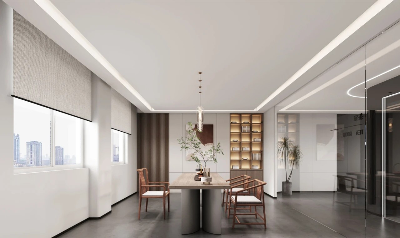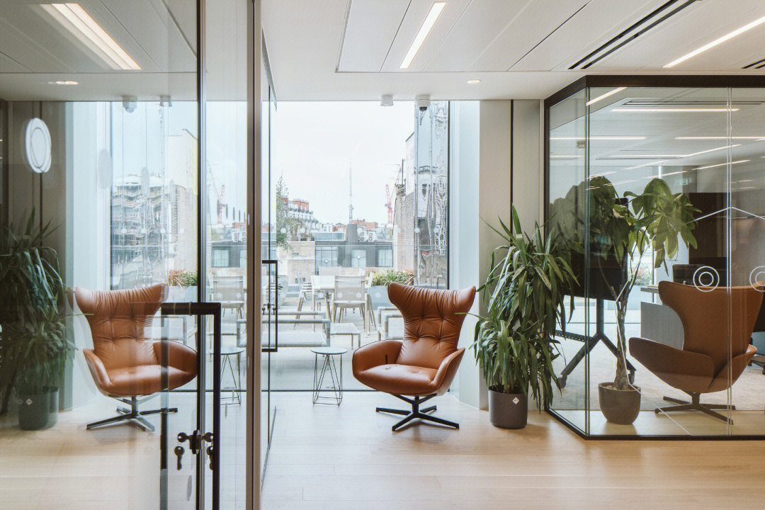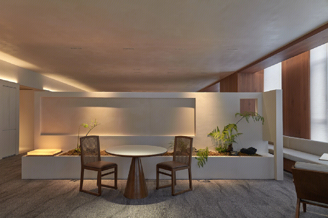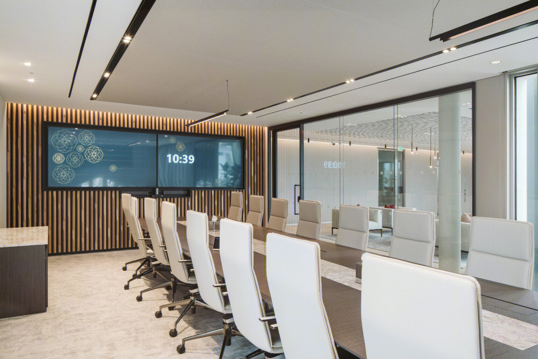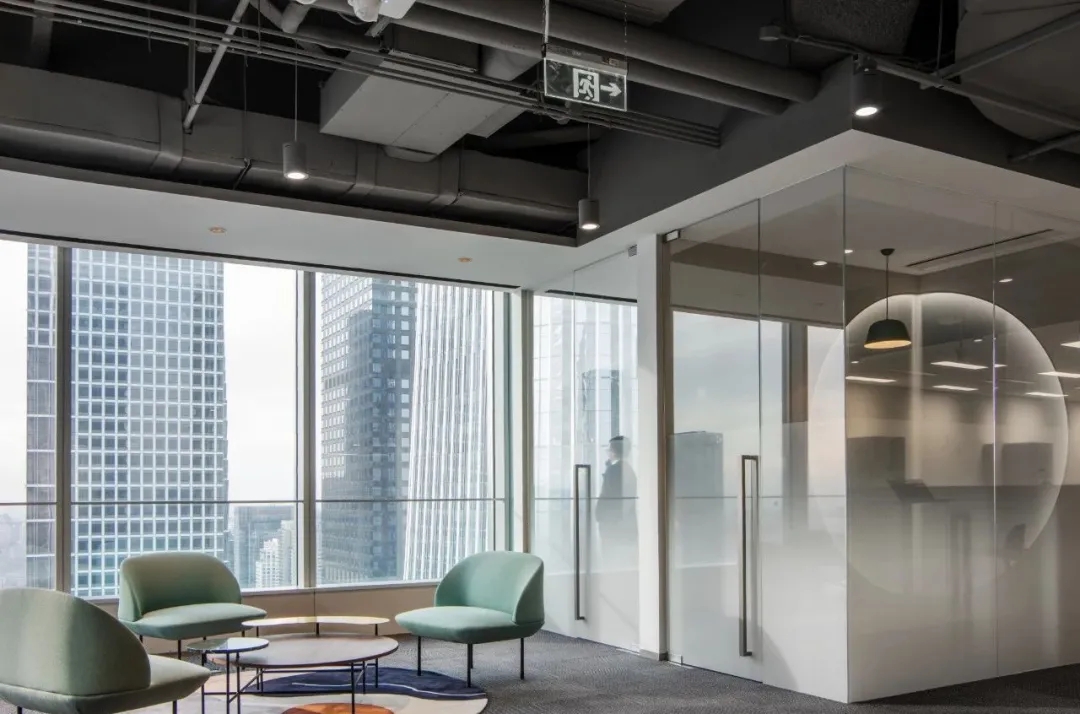 单独的茶室当然也是必要的,位于高管办公室、公区和创意中心交汇之处,并采用了智能雾化玻璃。