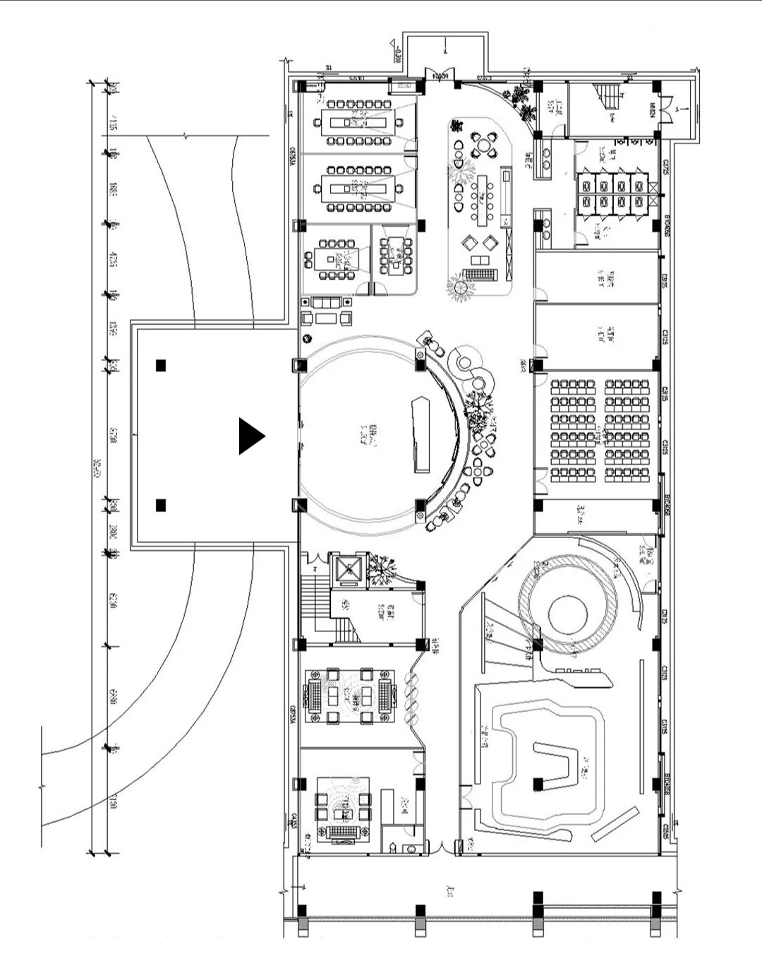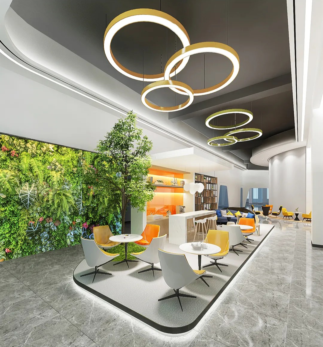 空间的中庭位置根据市场发展,规划成了三个区域,分别是直播间、休闲区与会议室,这里构成了整个空间的创意中心。