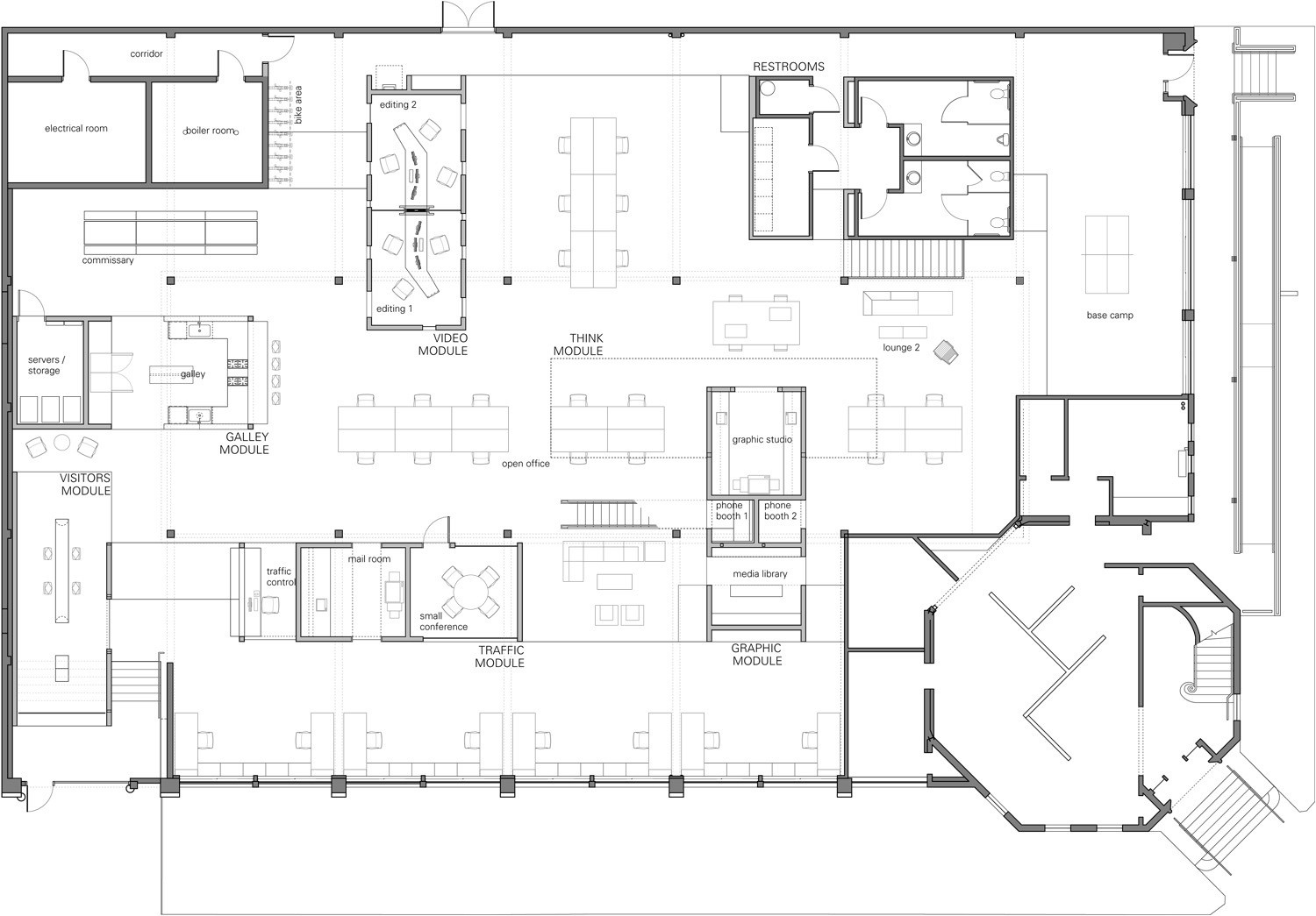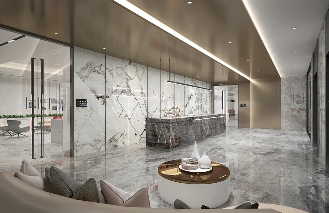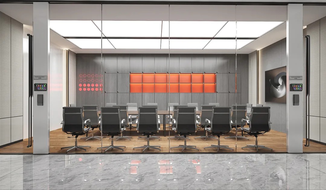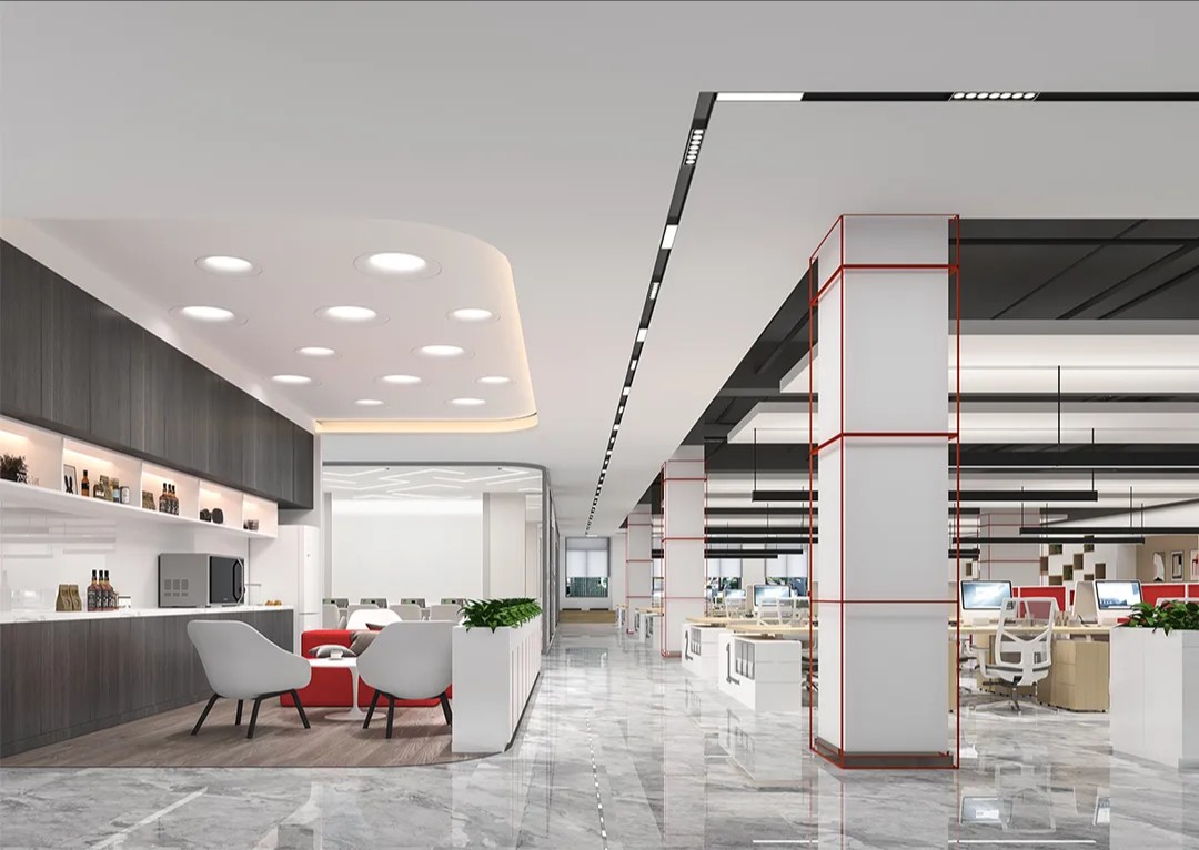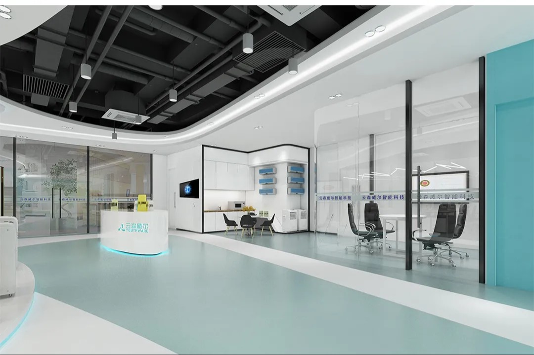 在可以容纳380人的礼堂,木质墙壁犹如台基一般环绕着房间,并与同样是木质的台阶融为一体,为走下楼梯的人带来被温暖包围的感觉。与木材形成对比的是浮动在天花板上的白色“波浪”,它呈现出像织物一般的飘动效果,伴随着光线和声音,它将为公司内的各种大型活动提供生动的背景。