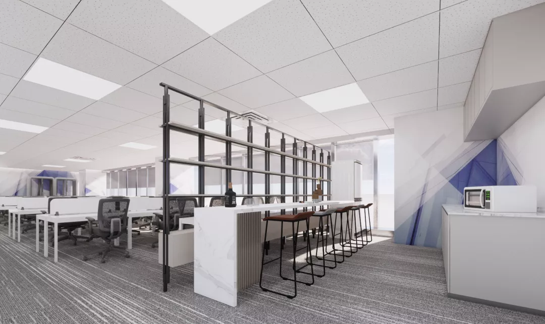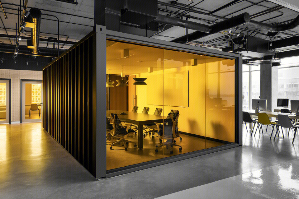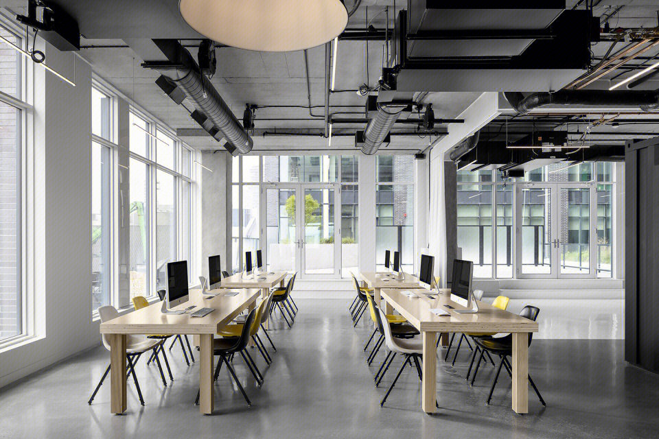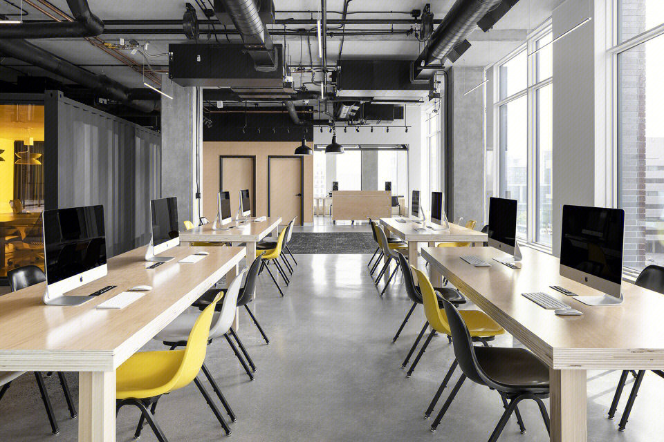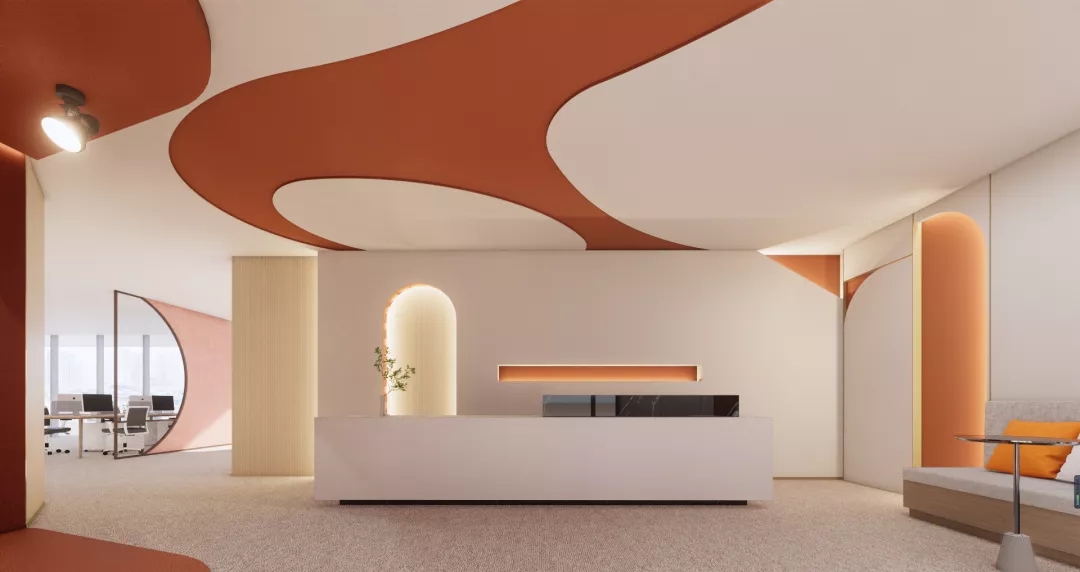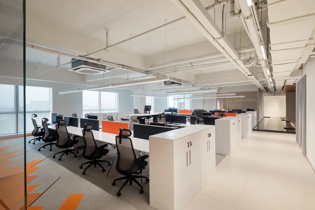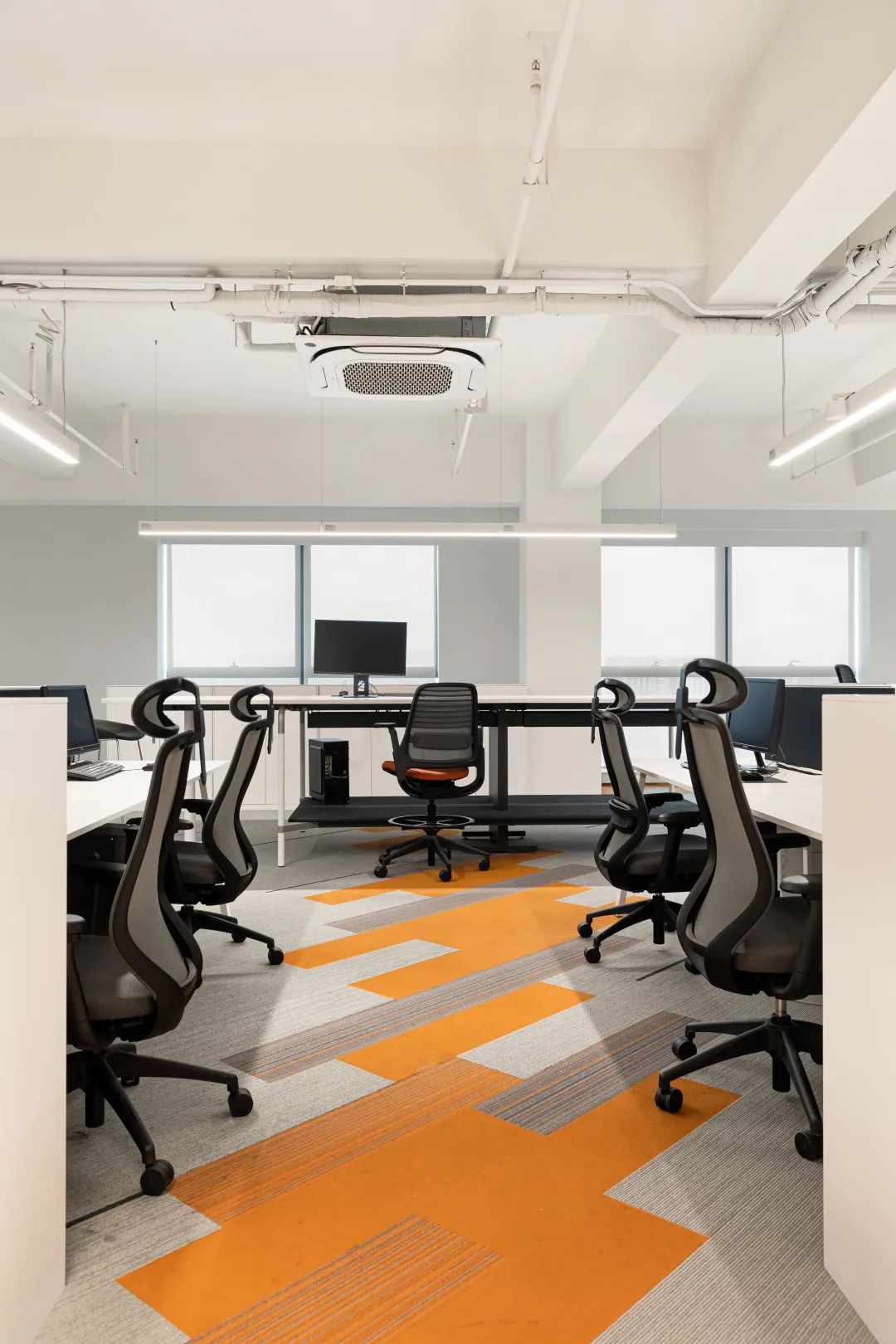在1500平方米新办公场地的设计上,设计中提取了金工建设logo的颜色与形象元素,营造出创造力、吸引力、开放共享的空间。
