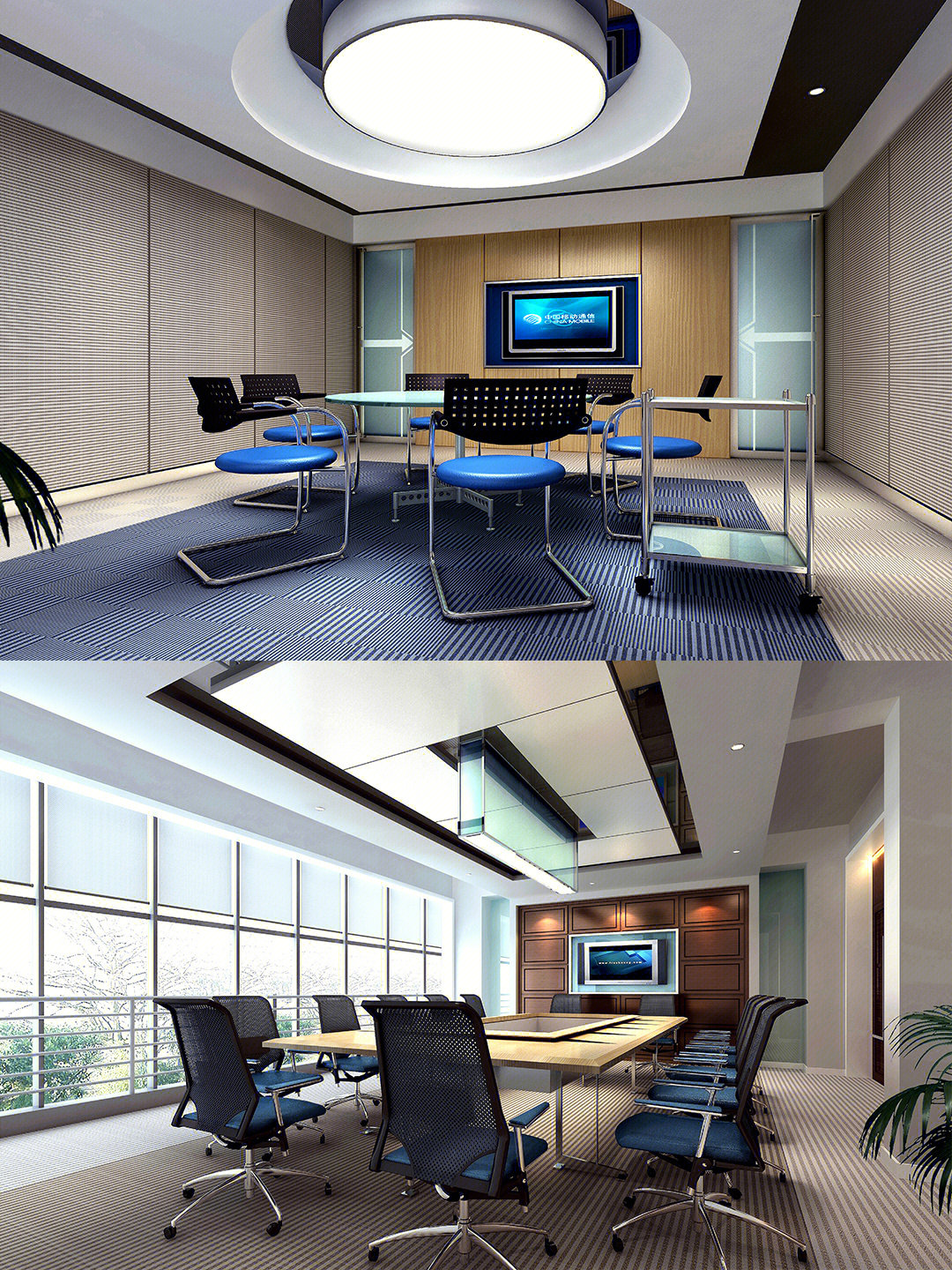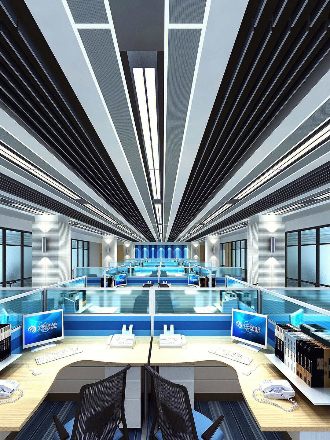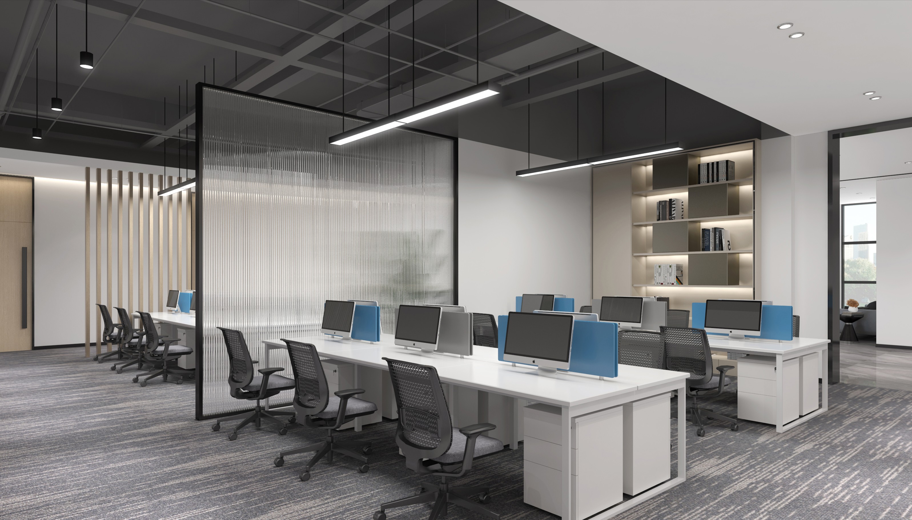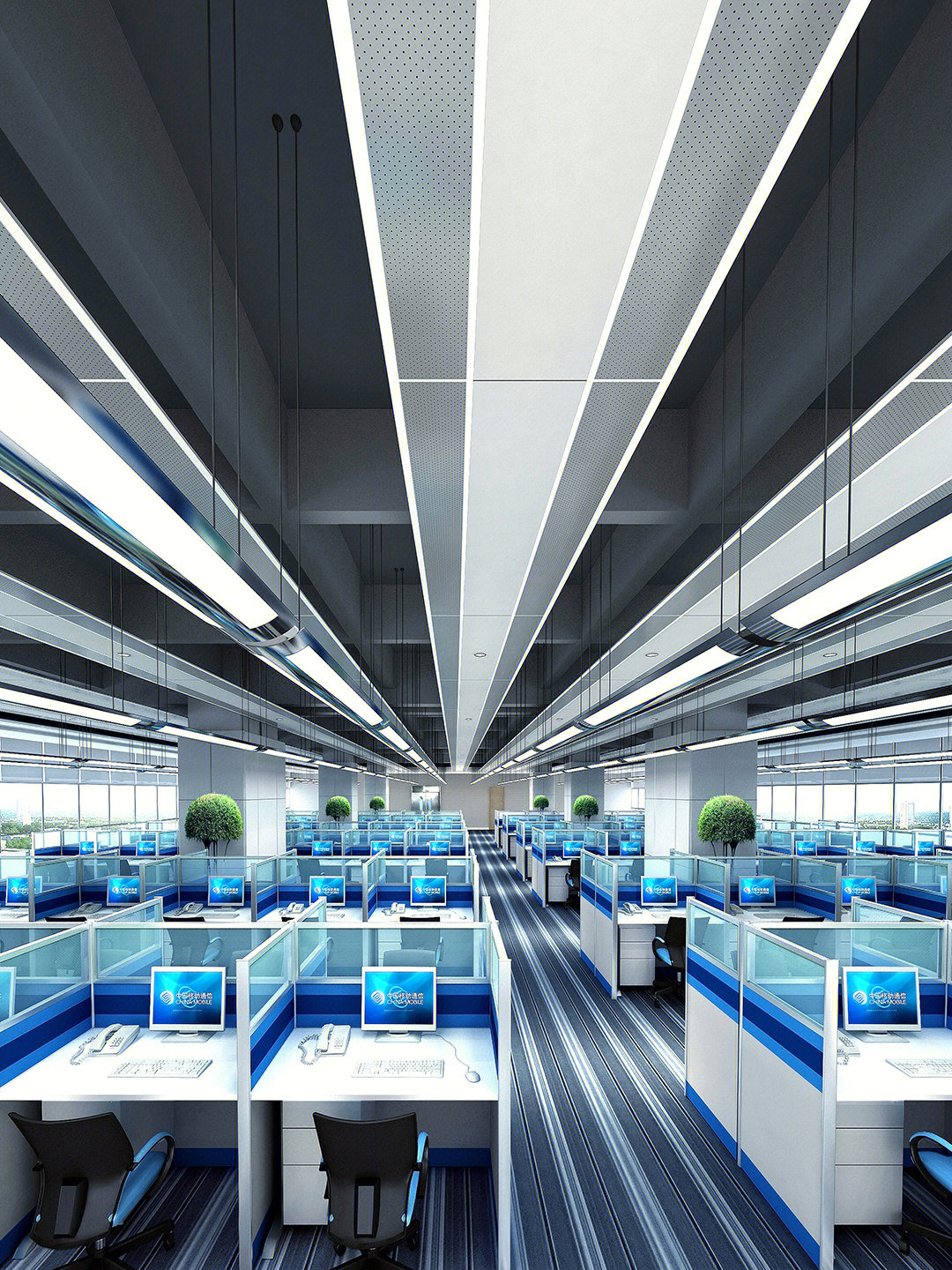 办公区域设计主要以简洁为主,让空间看起来更大气通透,简约的灯饰、科技感色彩明快,让空间表现出灵动的气质。