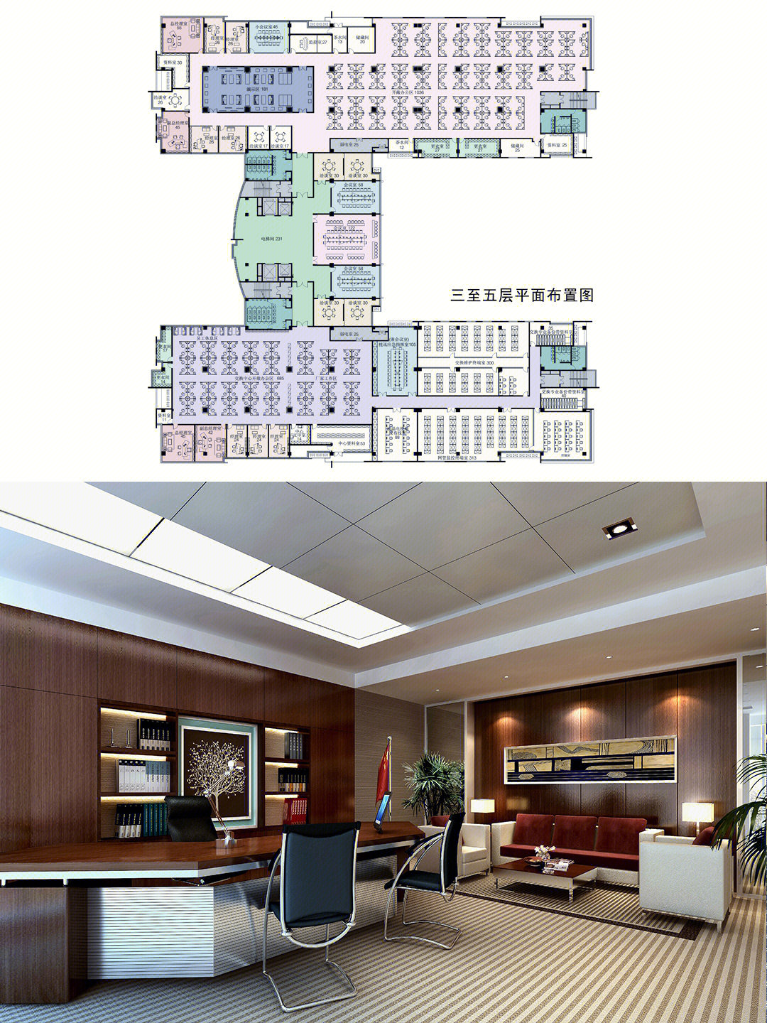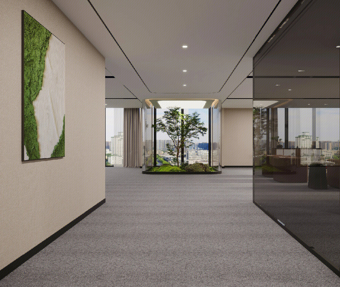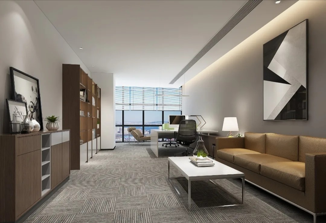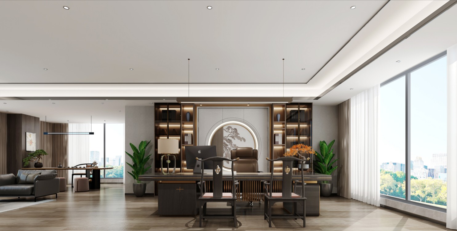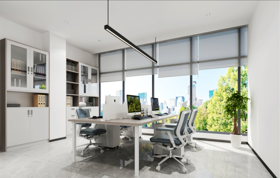 办公区域设计主要以简洁为主,让空间看起来更大气通透,简约的灯饰、科技感色彩明快,让空间表现出灵动的气质。