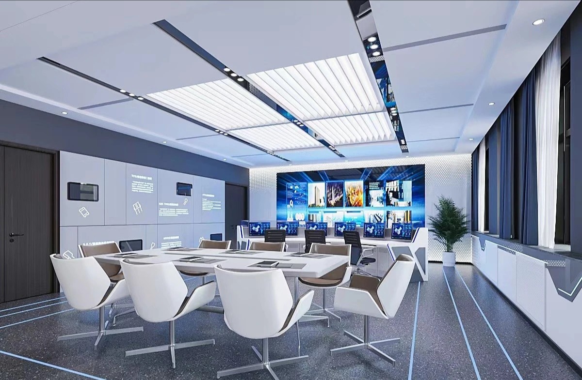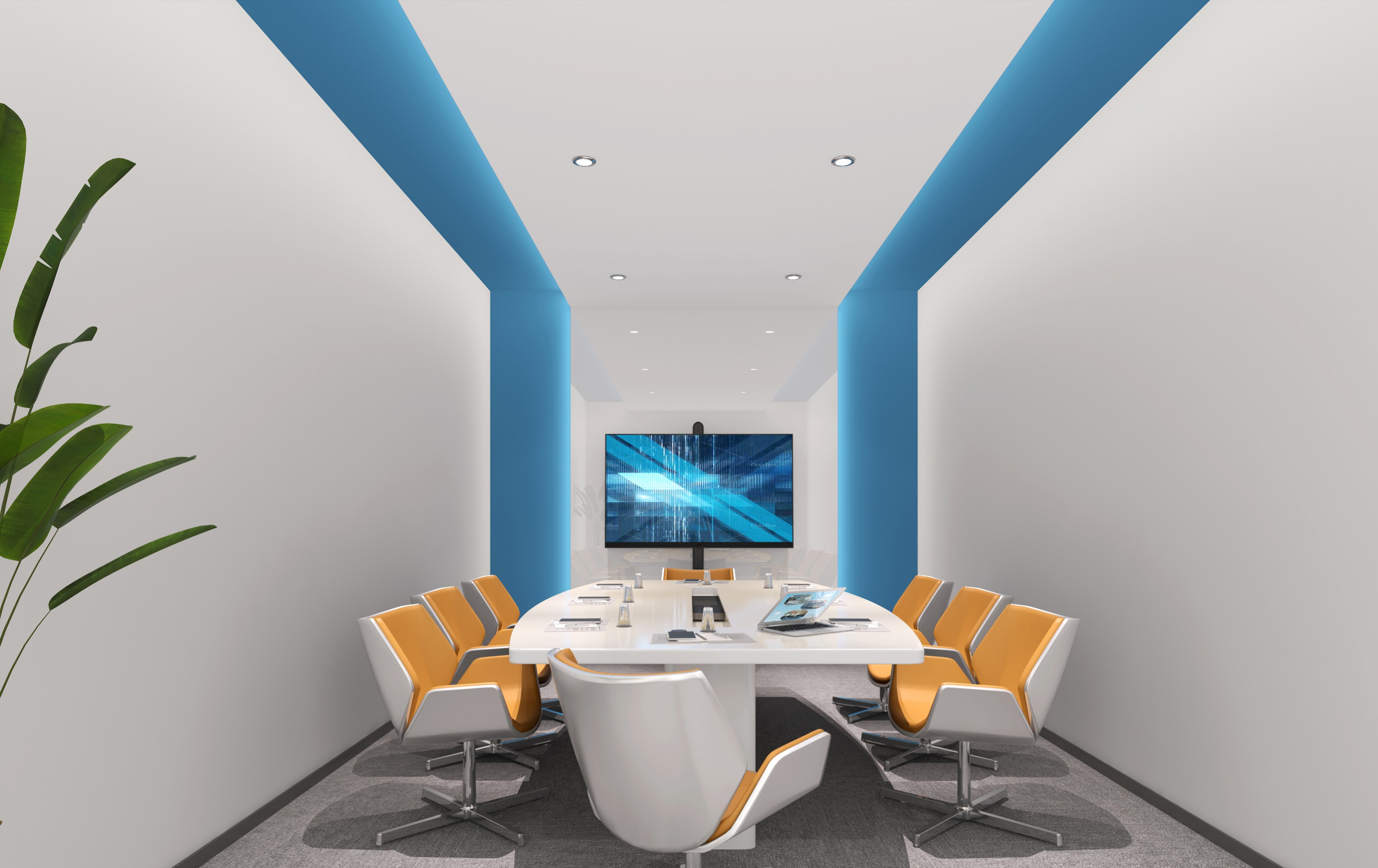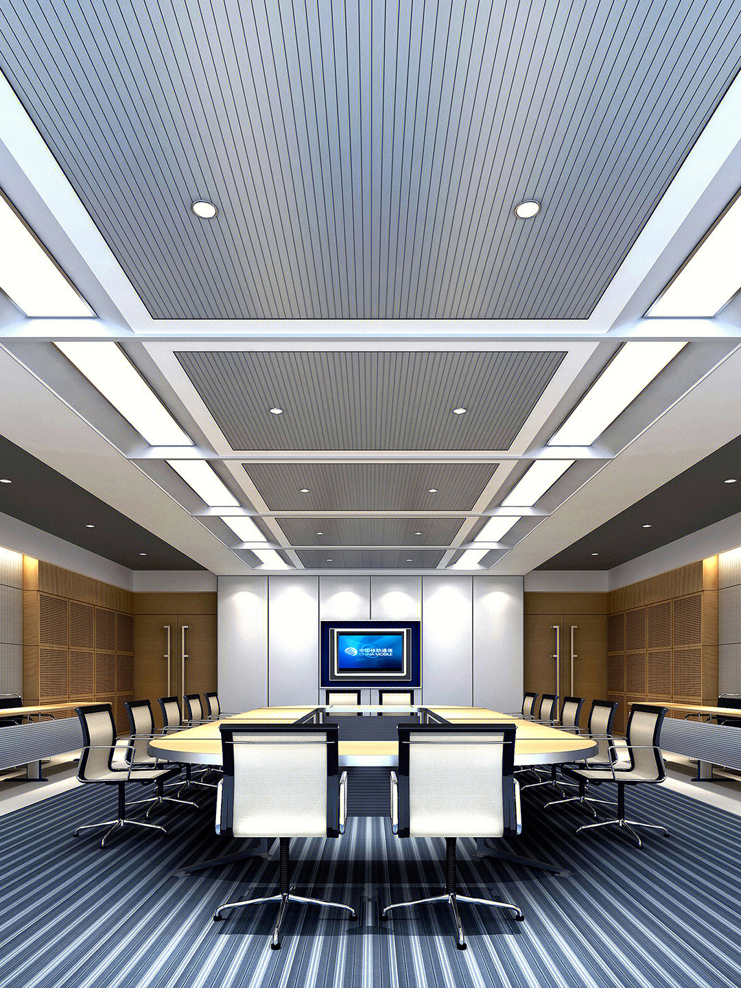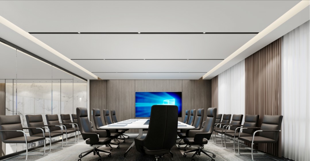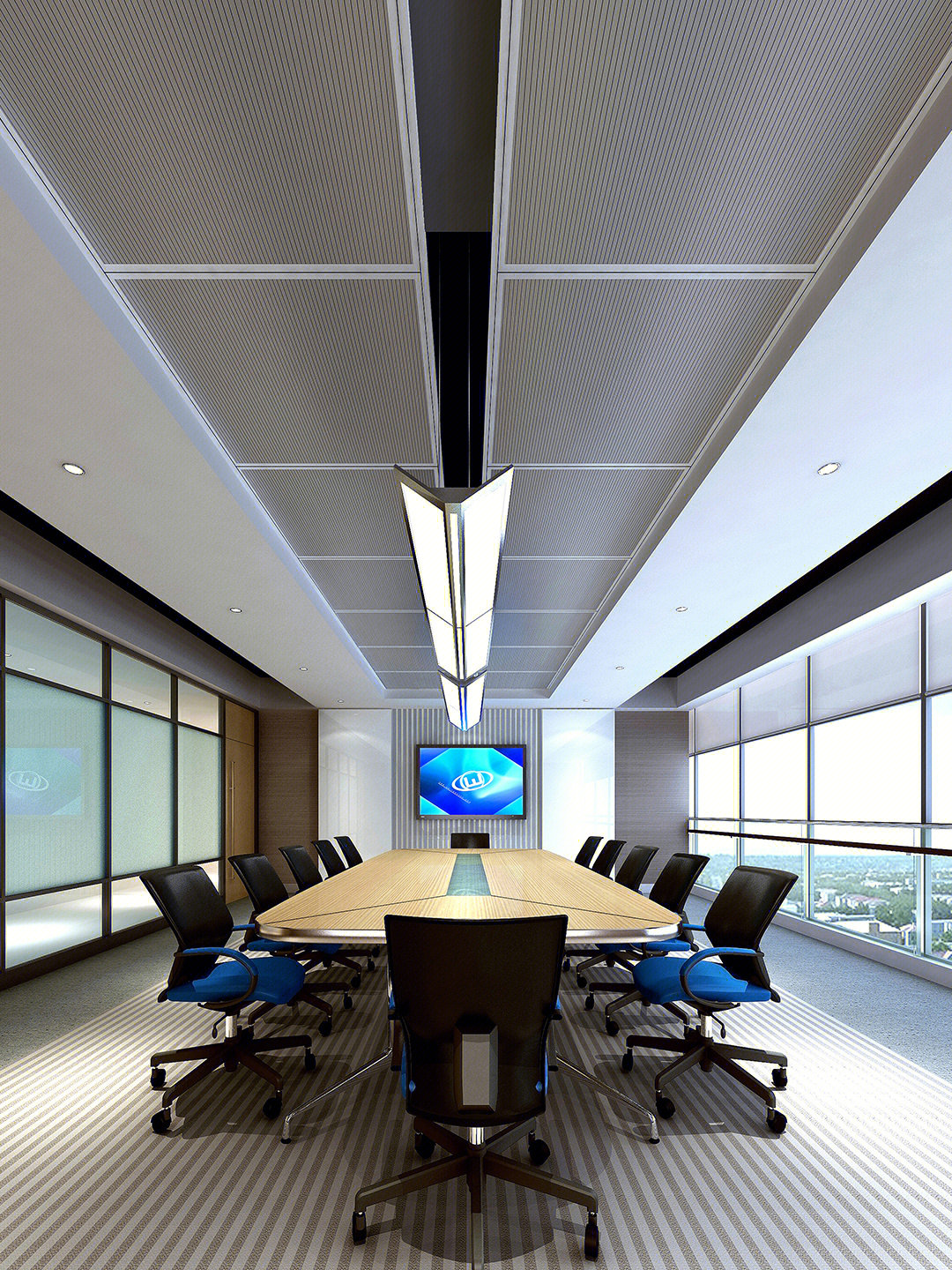 会议室是公司内商议事情的主要场所,大气稳重凸显空间氛围,大型LED灯带配合筒灯、吊顶灯,即便是加班很晚,依旧能保持明朗舒适的环境。