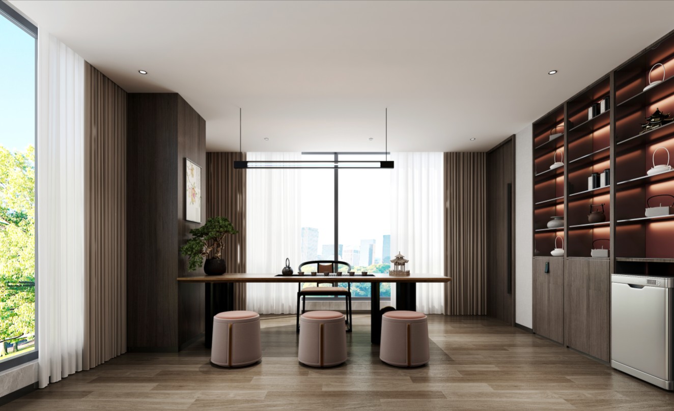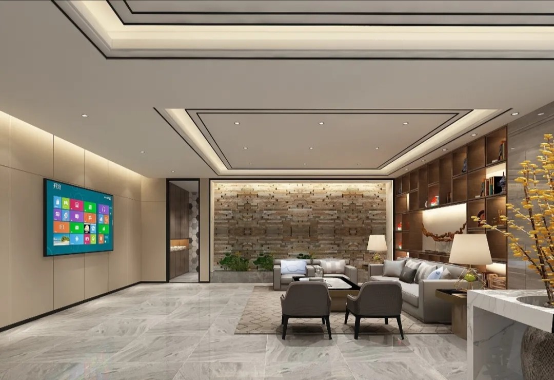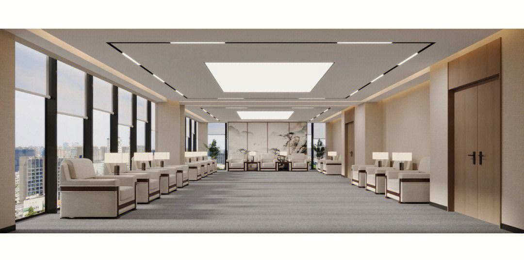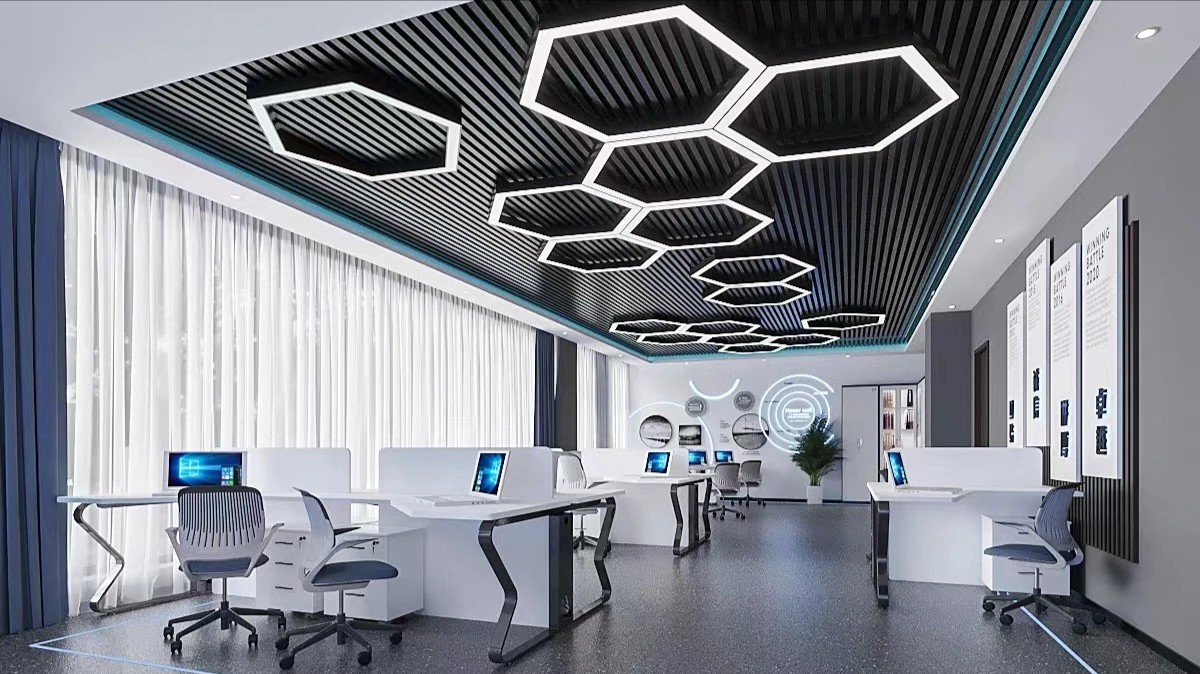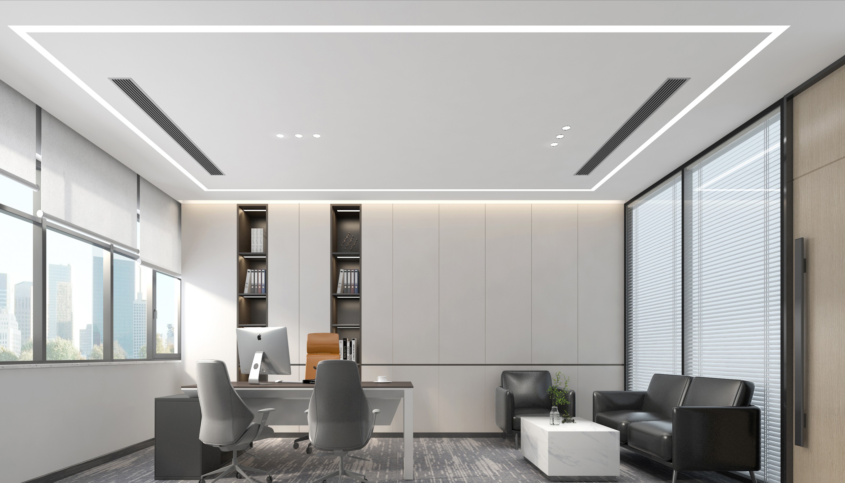 会议室是公司内商议事情的主要场所,大气稳重凸显空间氛围,大型LED灯带配合筒灯、吊顶灯,即便是加班很晚,依旧能保持明朗舒适的环境。