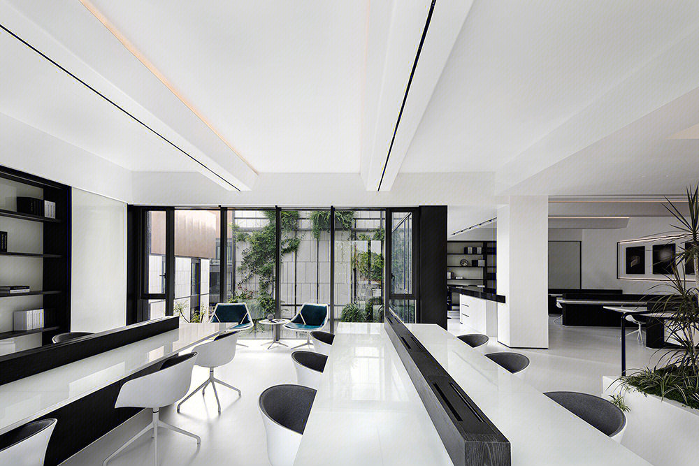 自由无拘的沟通对于团队的创新至关重要。开放的办公区是有效获取信息和激发灵感的地方。同时为了保证隐私和透明,总监室都采用玻璃门隔断设计,与开放办公区保持彼此的通透与链接,提升了场所的张力。玻璃墙面为会议室和独立办公室提供了隐私性,同时不牺牲办公区的透明度。