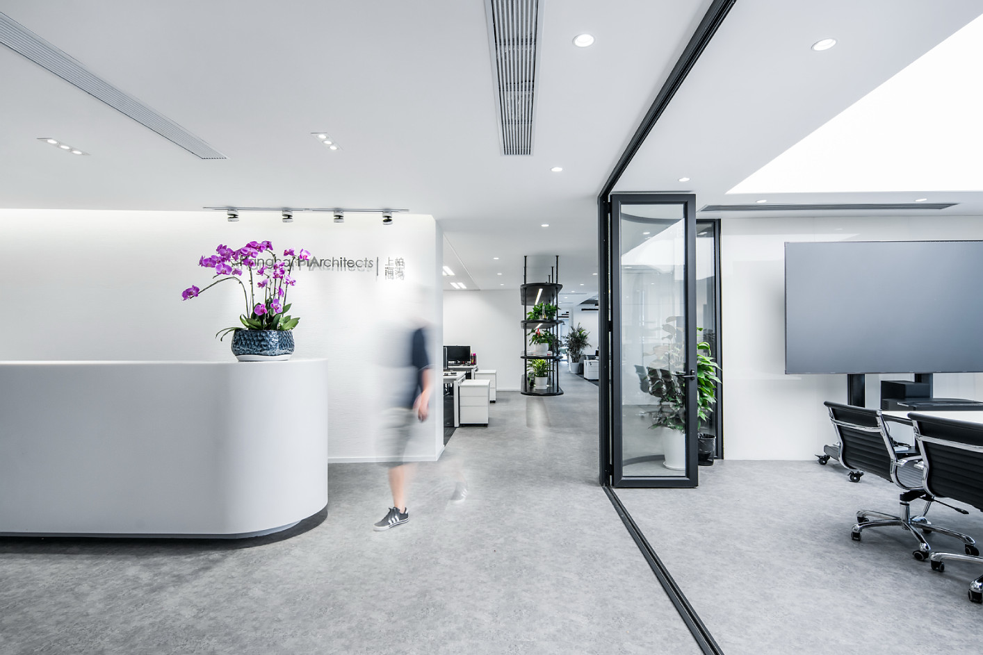 满足门厅、办公、会议、会客、茶水等基础功能需求上,加上讲堂、图书室、休闲讨论区、头脑风暴区、材料模型间等功能空间。